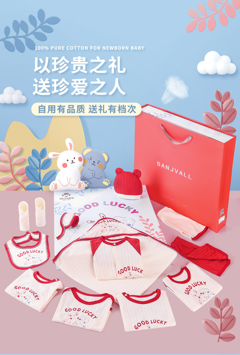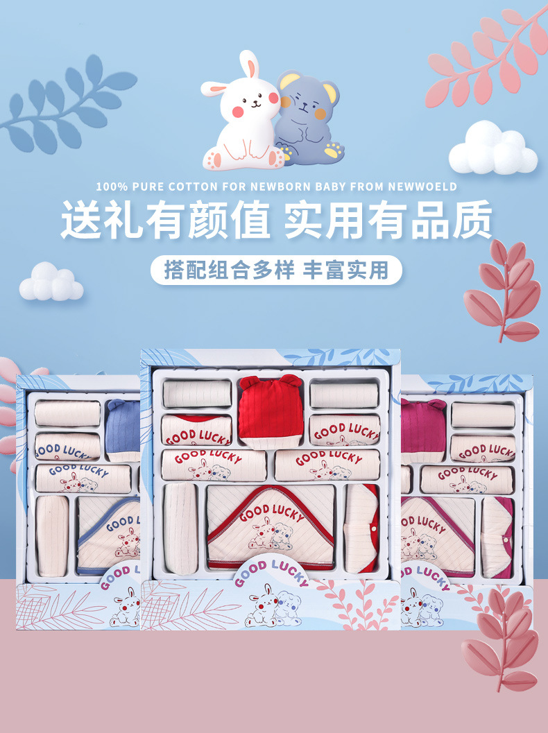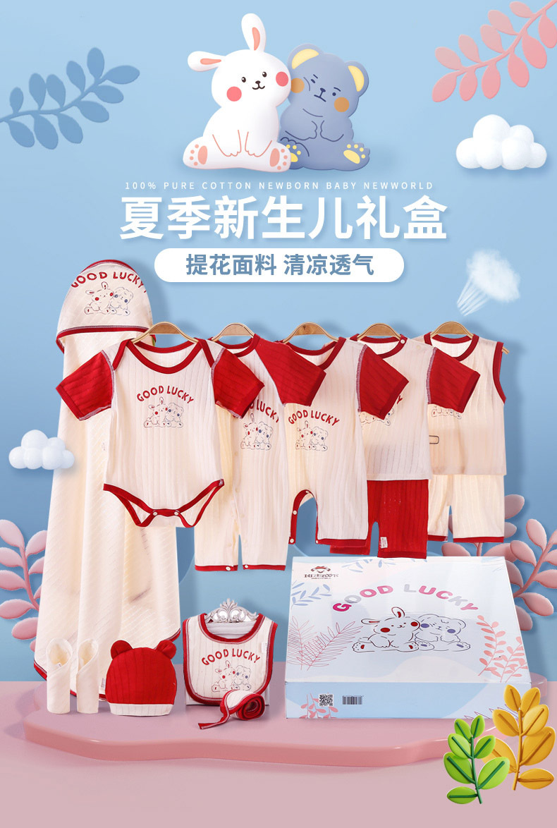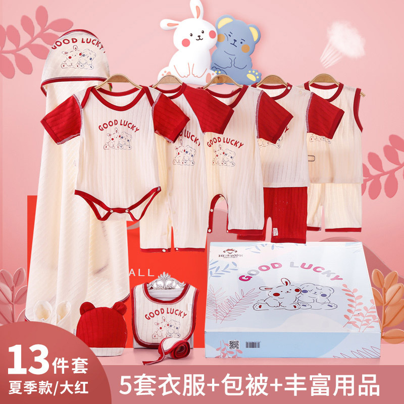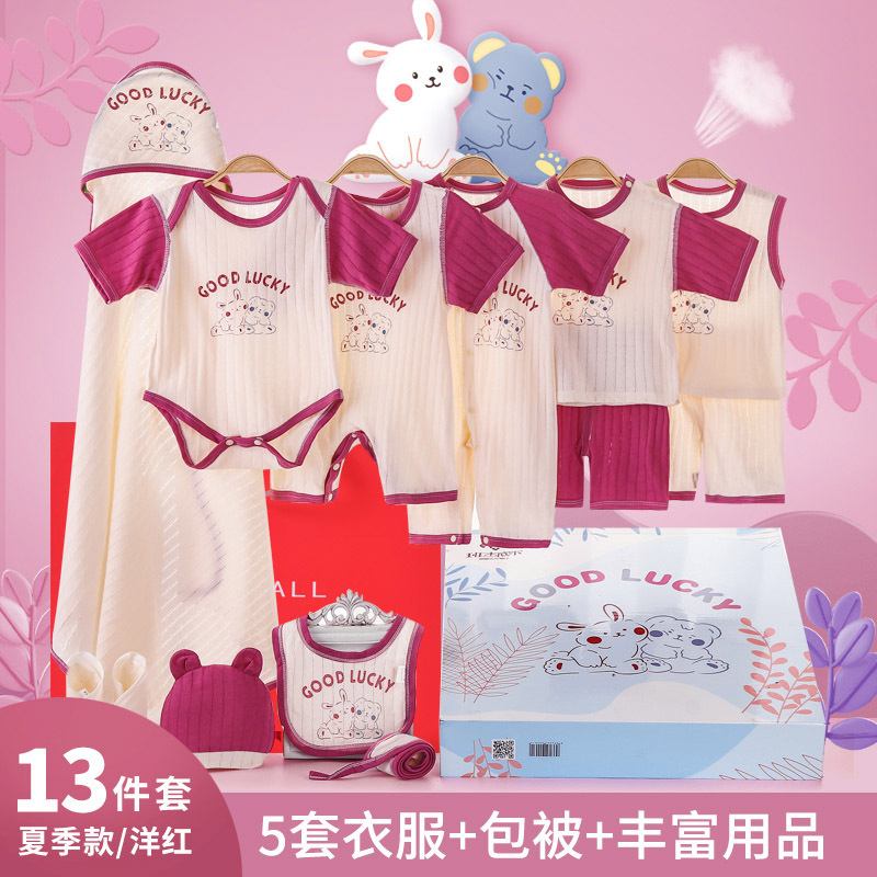 夏季新生儿礼盒婴儿纯棉四套衣服套装春秋刚出生宝宝满月见面礼物