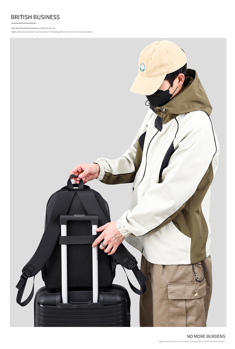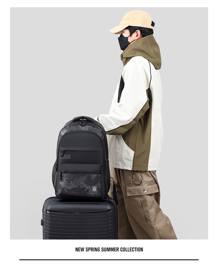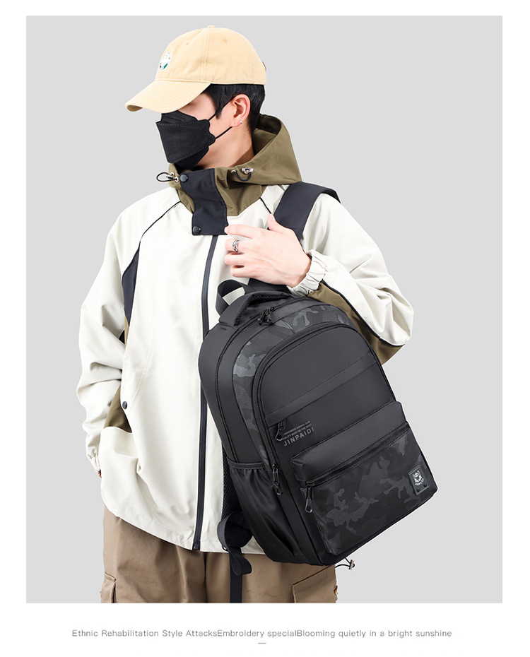 新款潮流时尚户外休闲商务简约透气牛津布男士双肩包