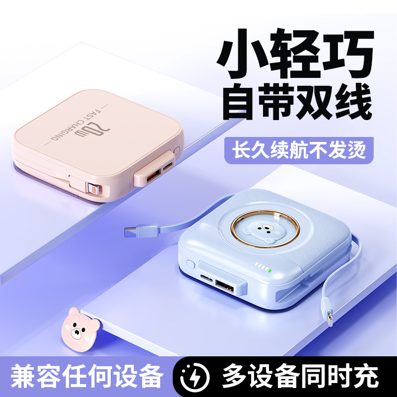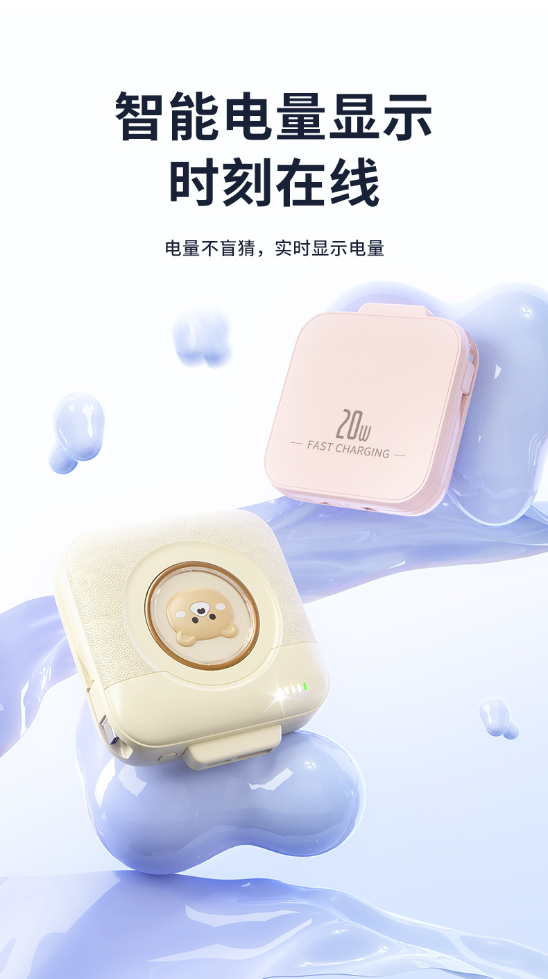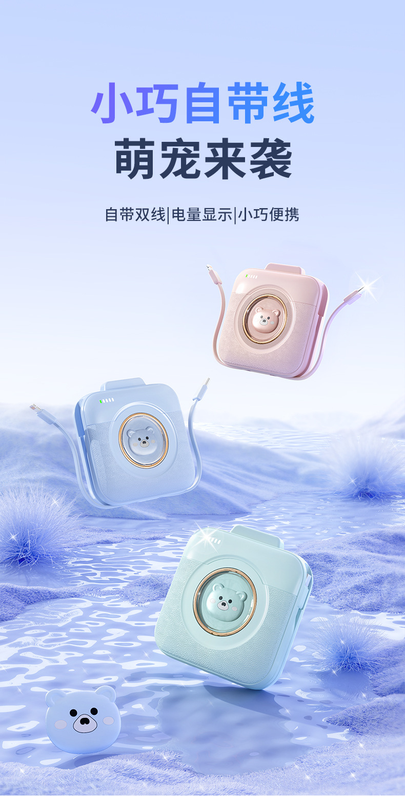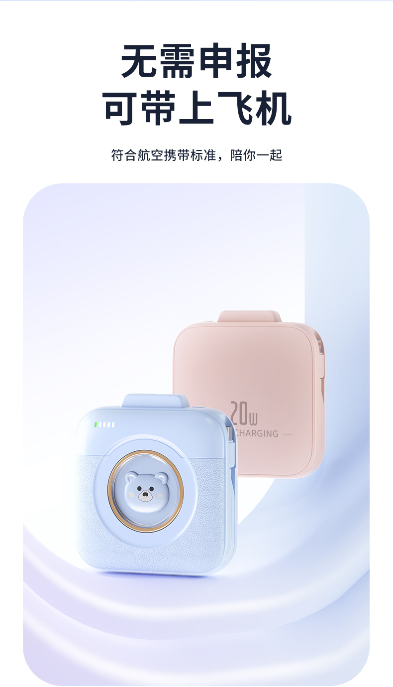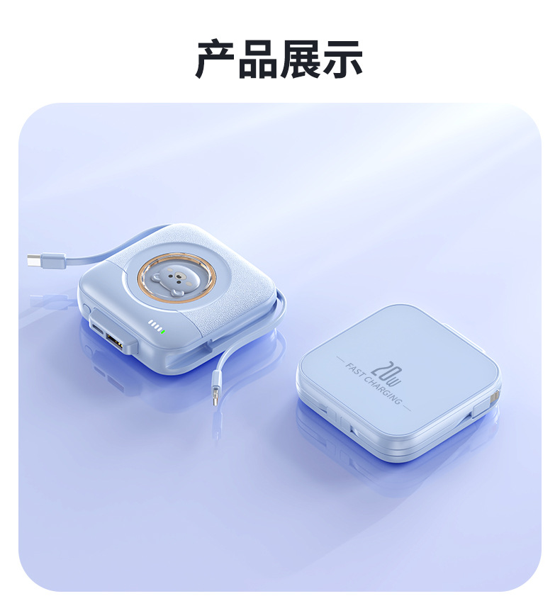 YM-778S卡通充电宝快充带线小巧便捷20000毫安大容量迷你移动电源