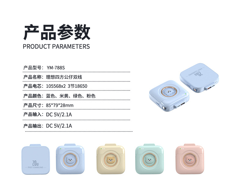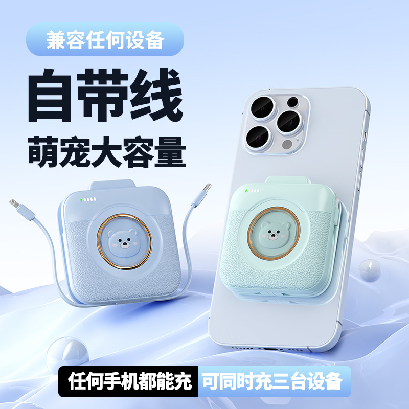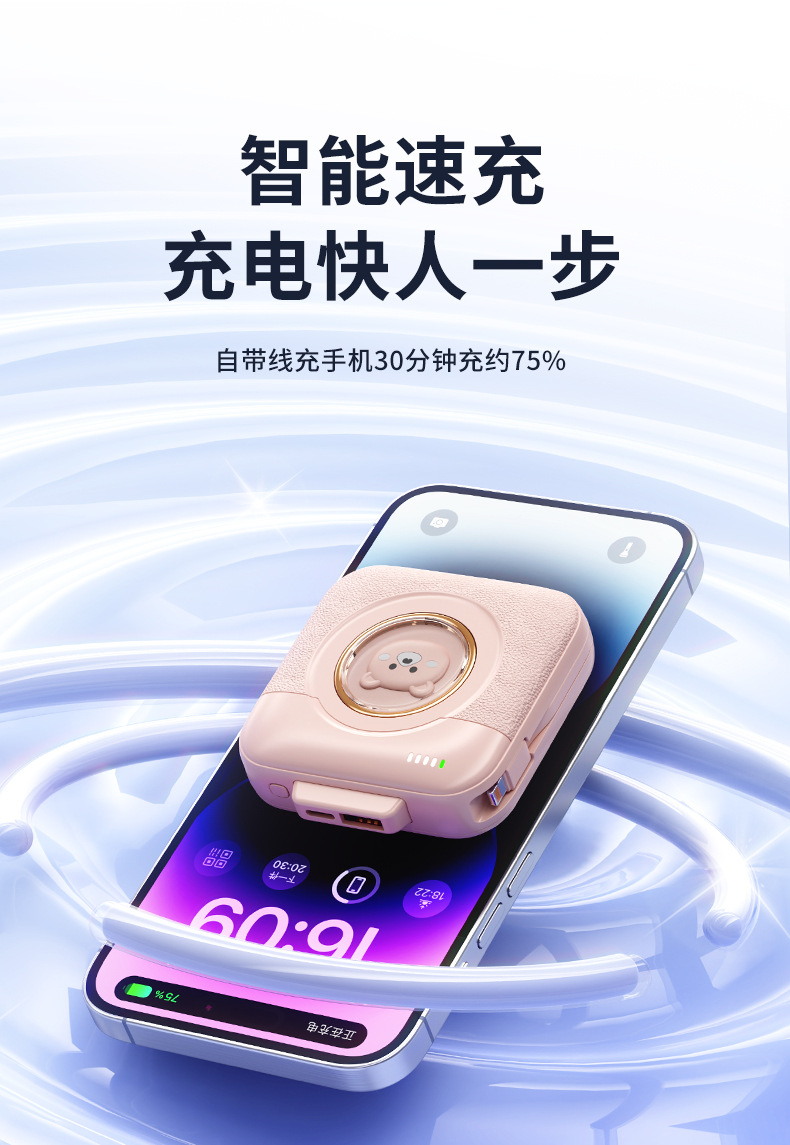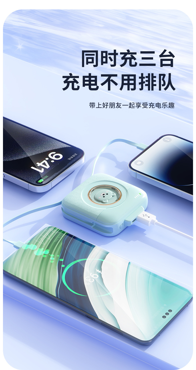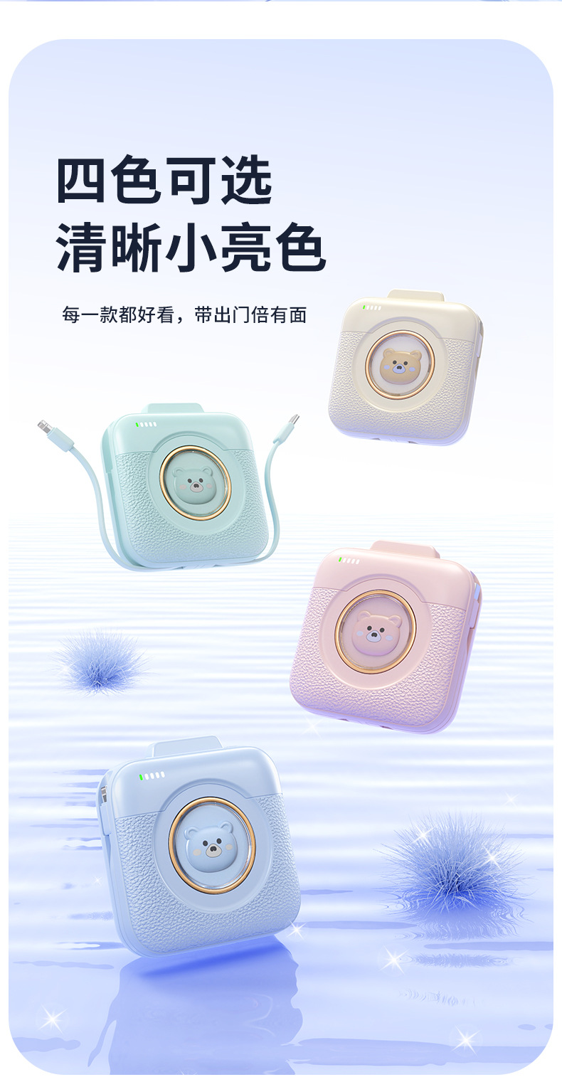 YM-778S卡通充电宝快充带线小巧便捷20000毫安大容量迷你移动电源