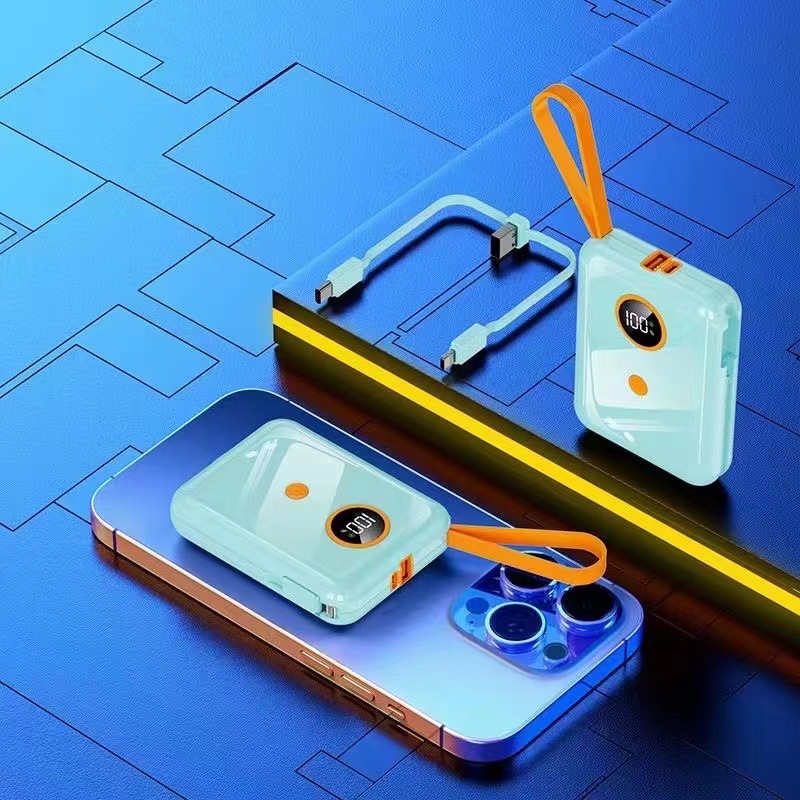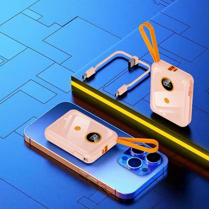 直供自带线大容量2万毫安充电宝订制logo便携式移动电源
