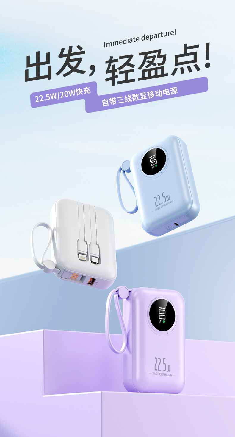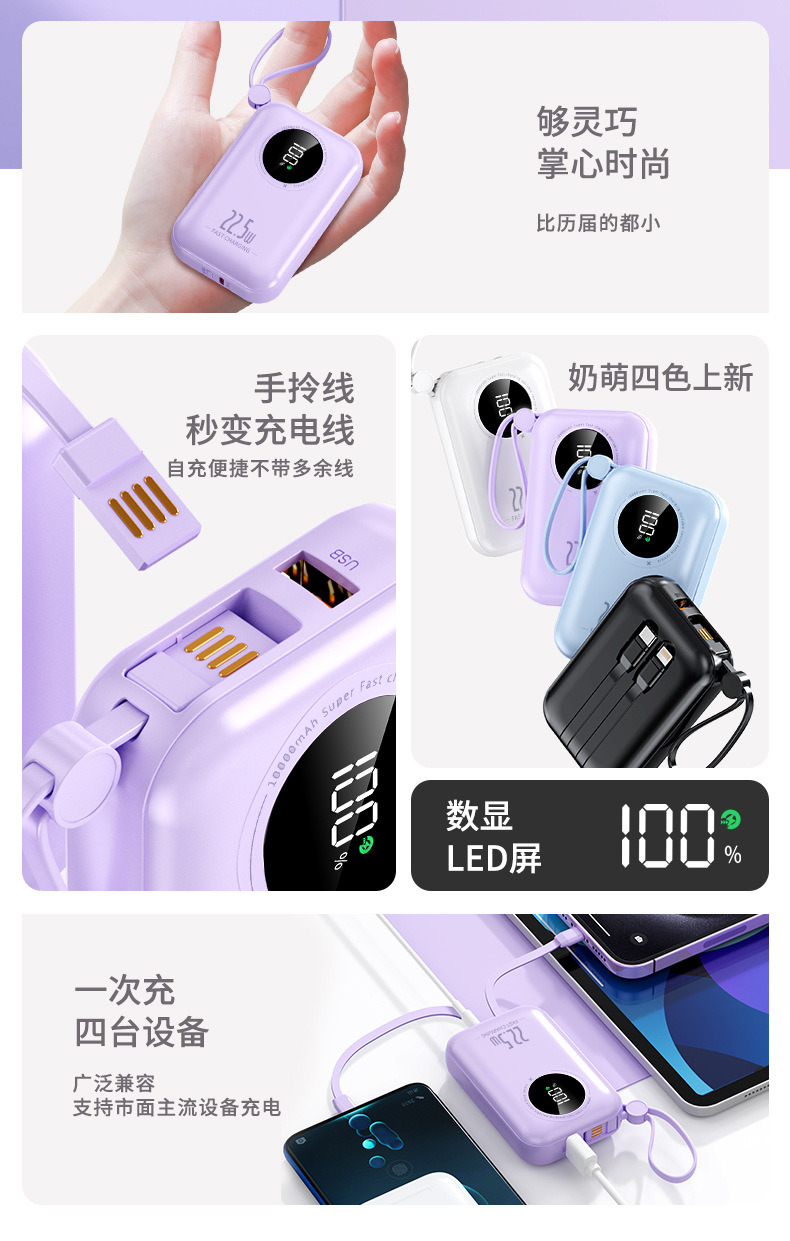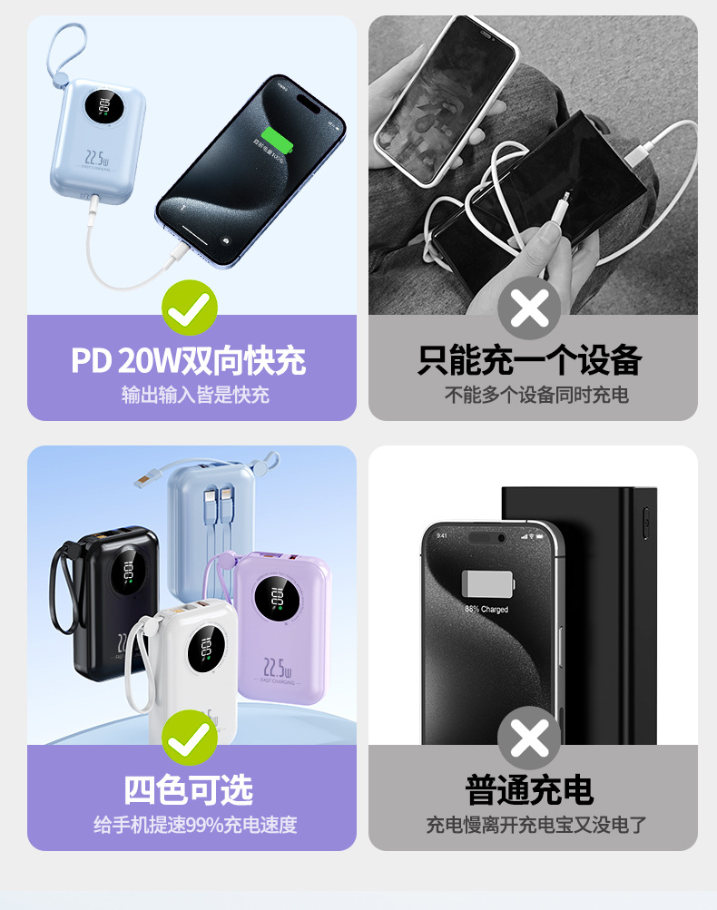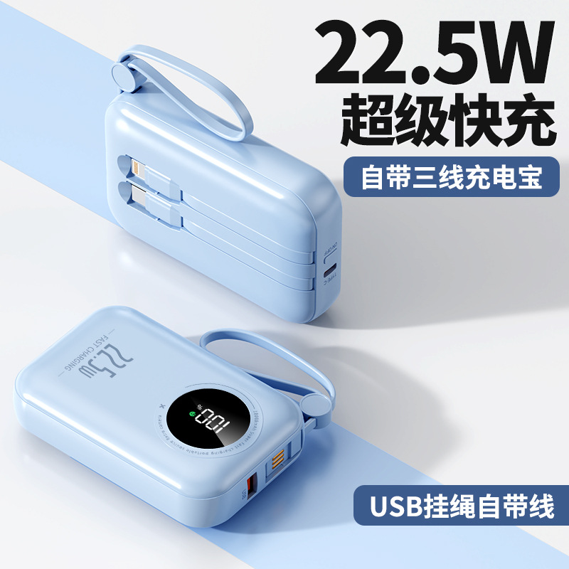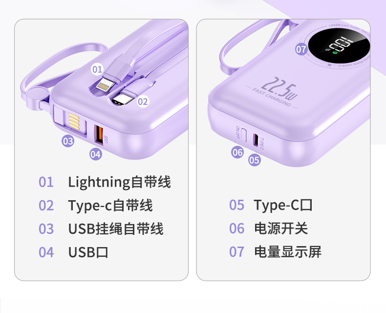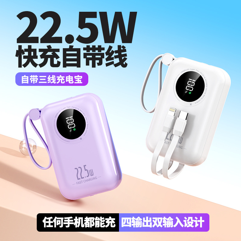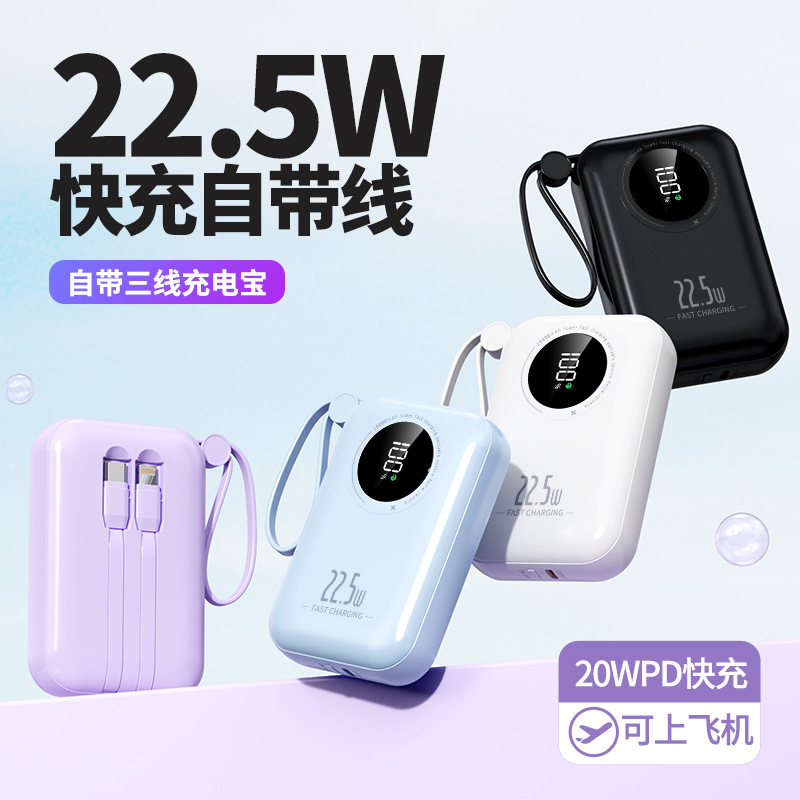 外贸充电宝便携自带线pd20w双向快充20000毫安大容量移动电源批发