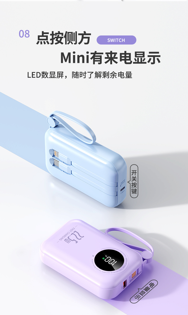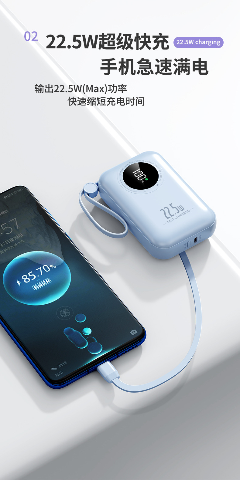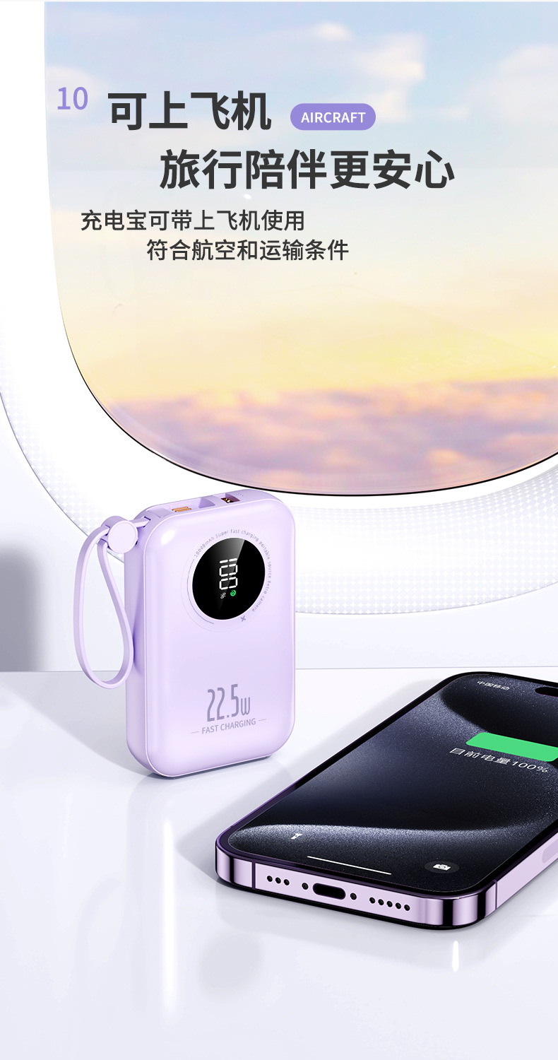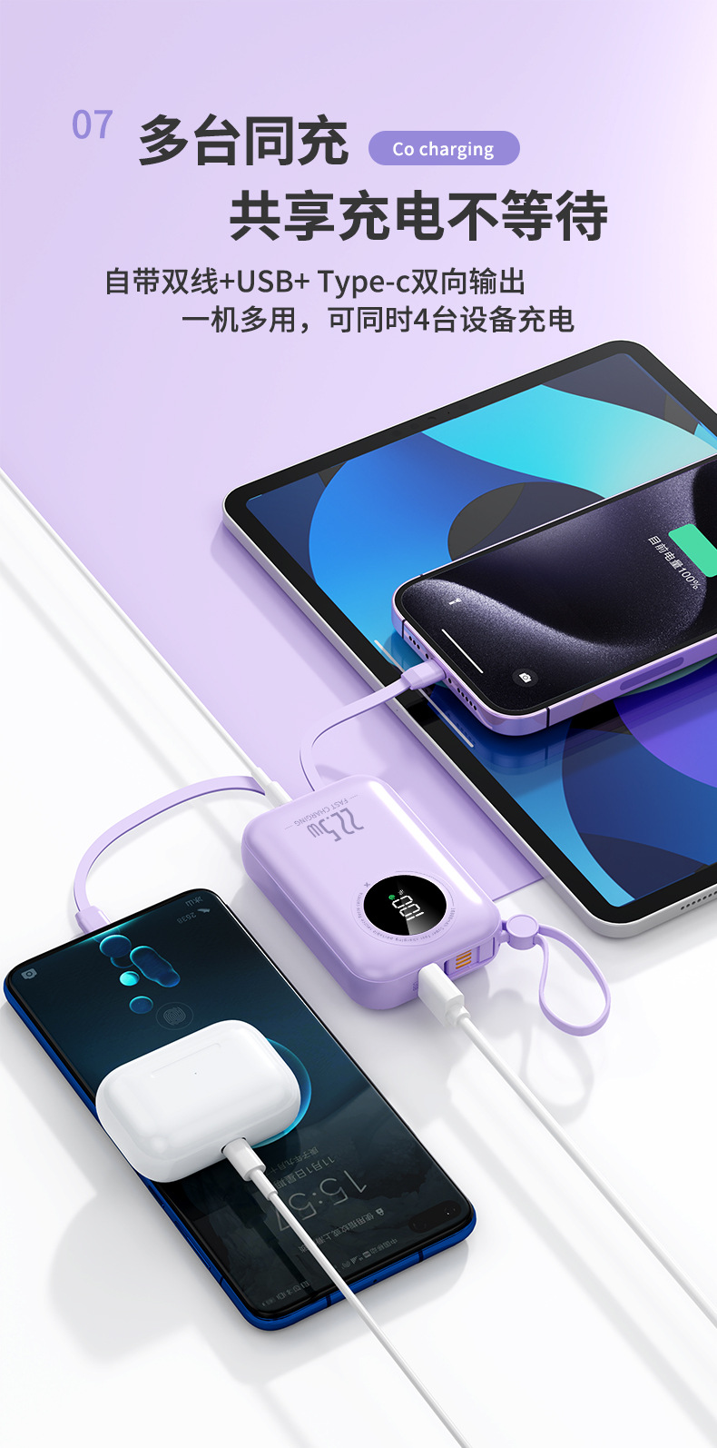 外贸充电宝便携自带线pd20w双向快充20000毫安大容量移动电源批发