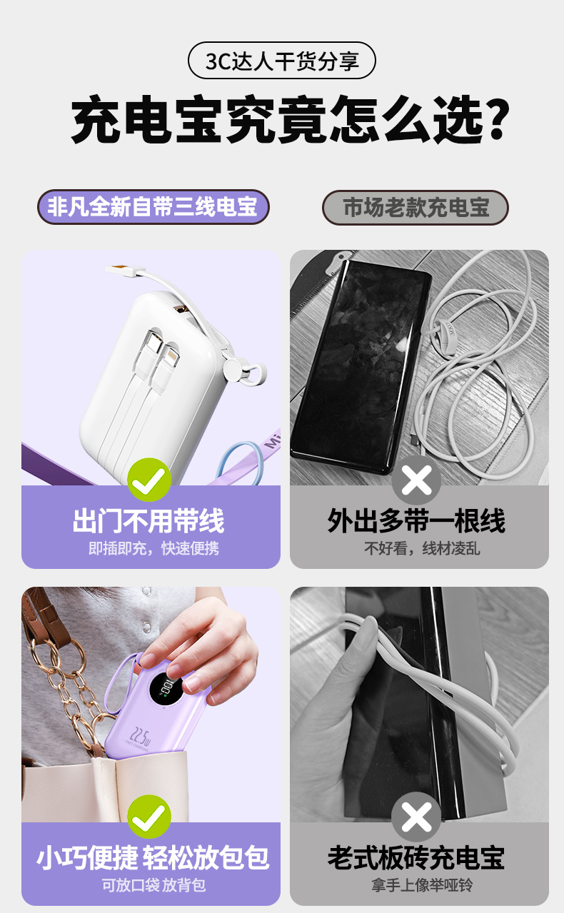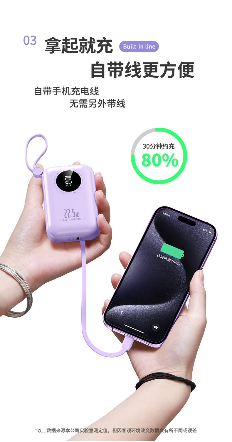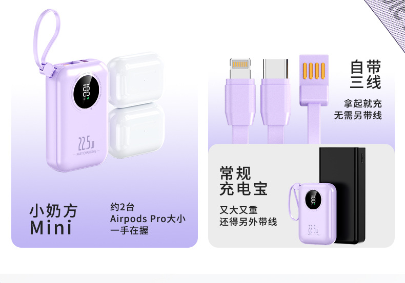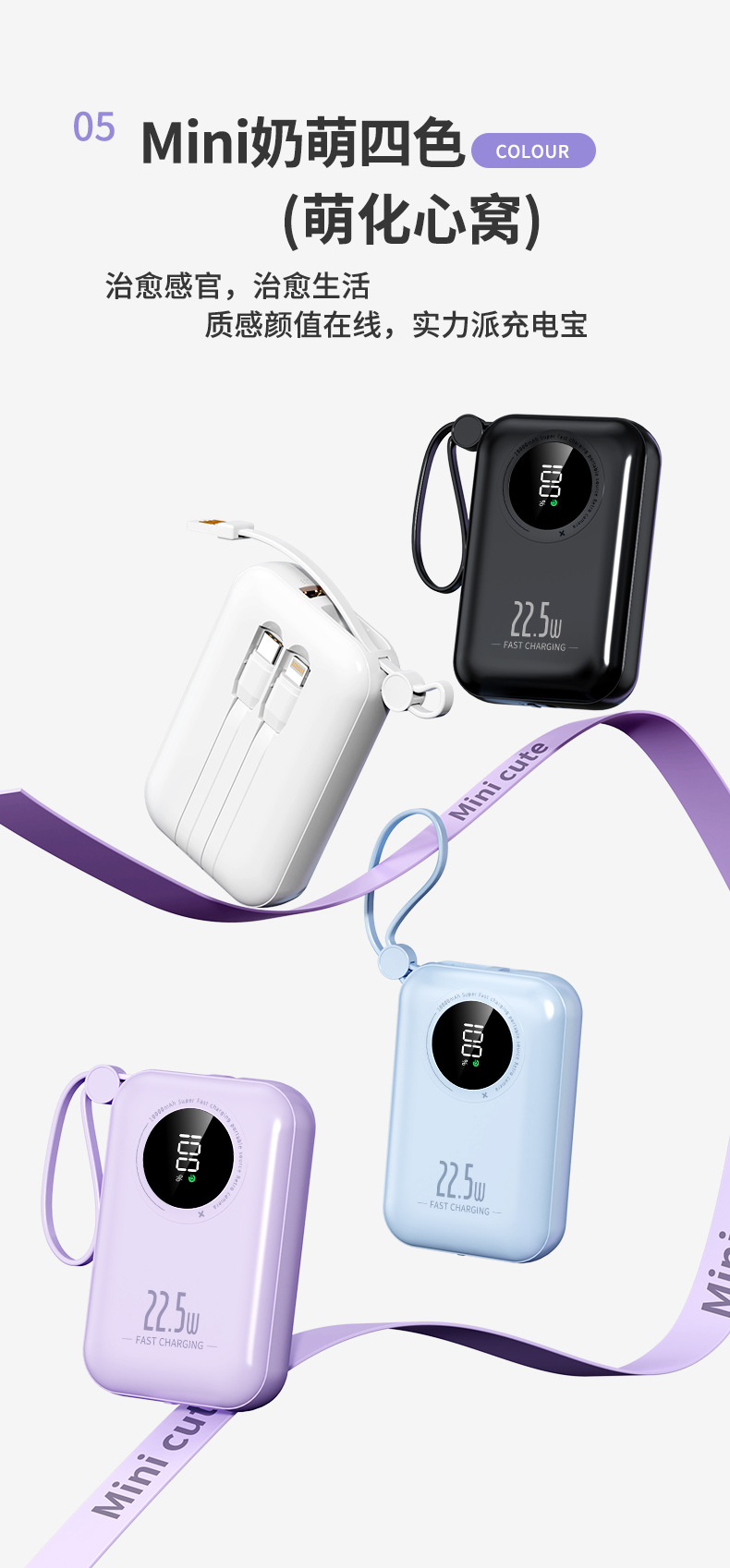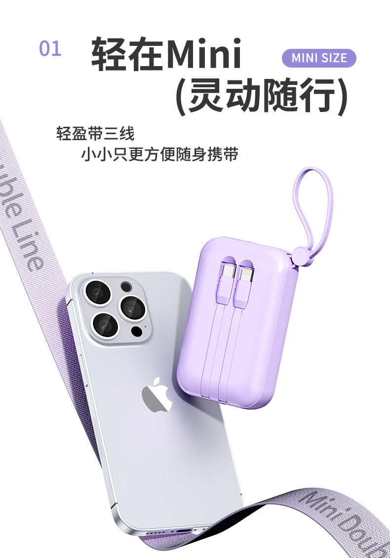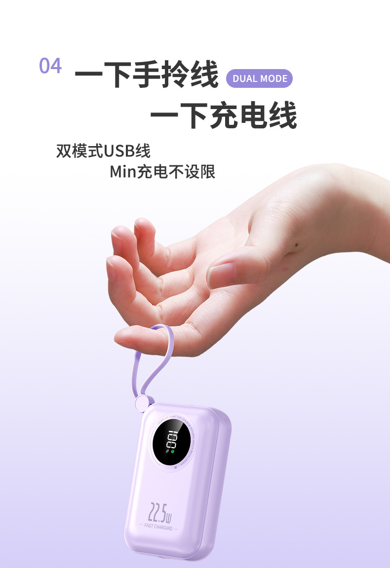 外贸充电宝便携自带线pd20w双向快充20000毫安大容量移动电源批发