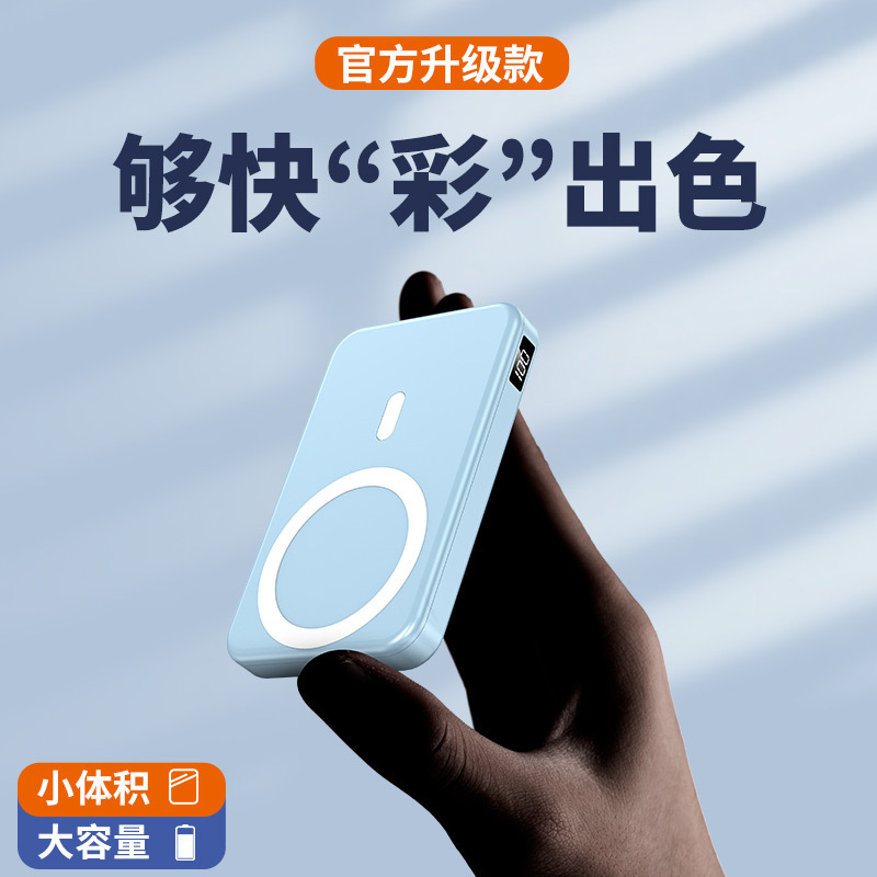 产品名称:跨境Magsafe适用苹果磁吸无线充电宝便携移动电源二合一10000毫安