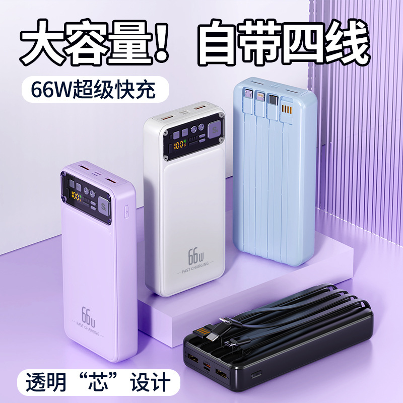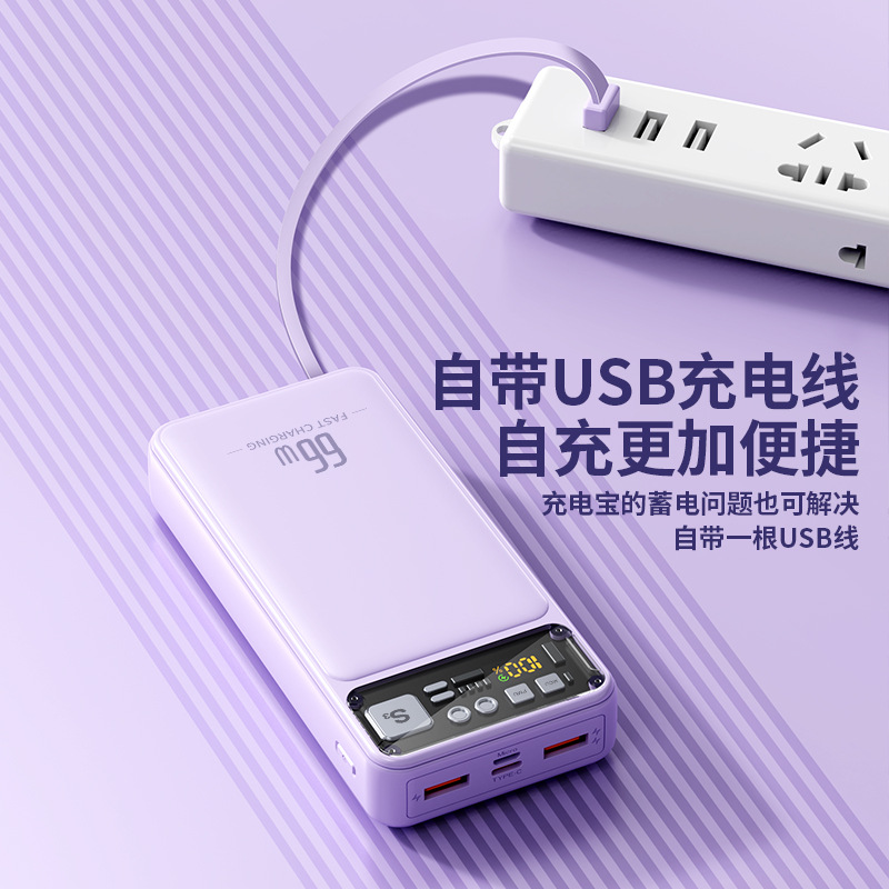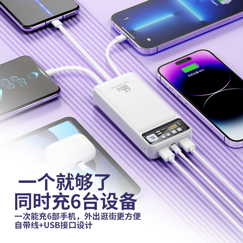 跨境66W超级快充充电宝20000毫安闪充大容量移动电源超薄便携礼品