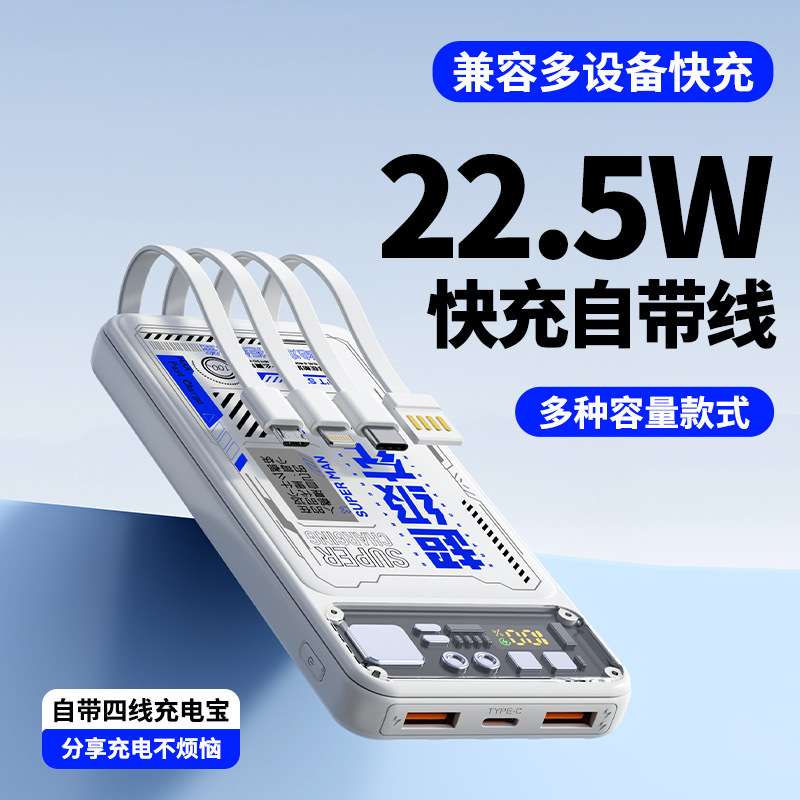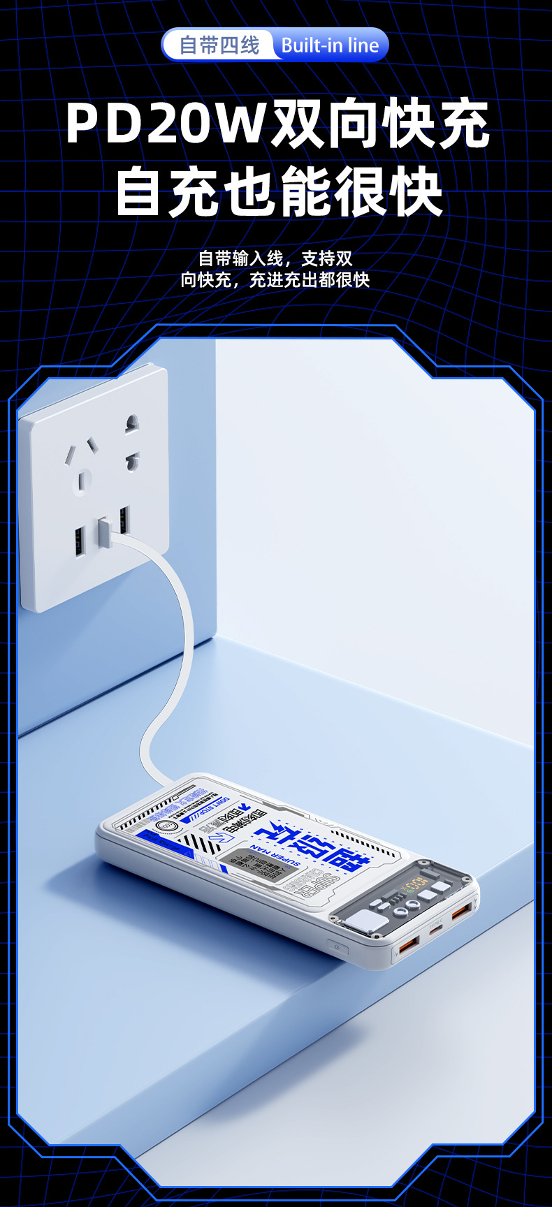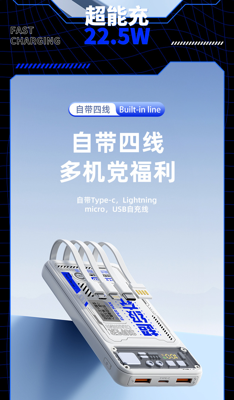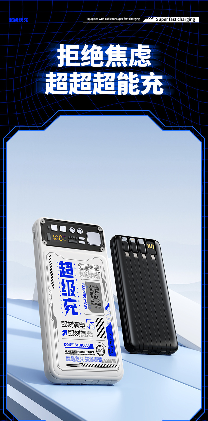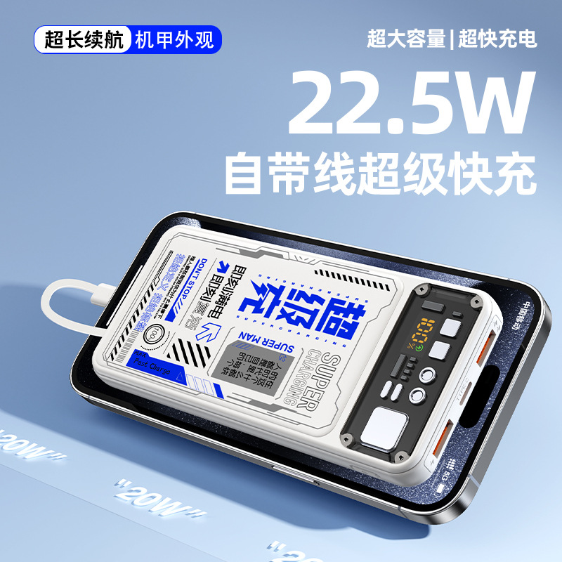 爆款22.5W机甲充电宝20000毫安超级快充带线超大容量移动电源