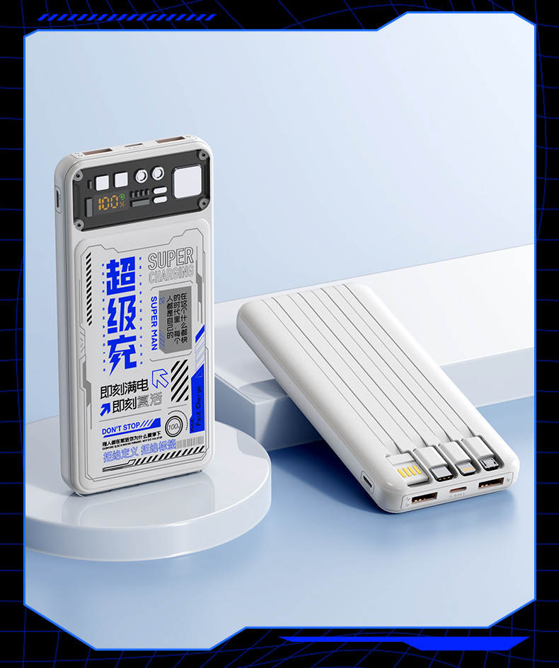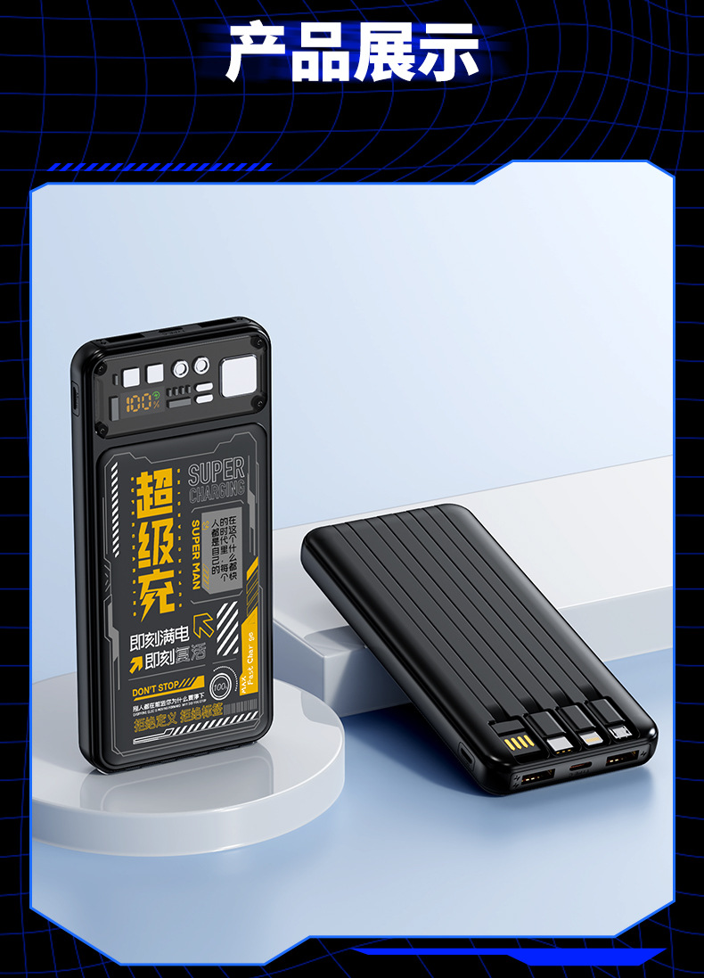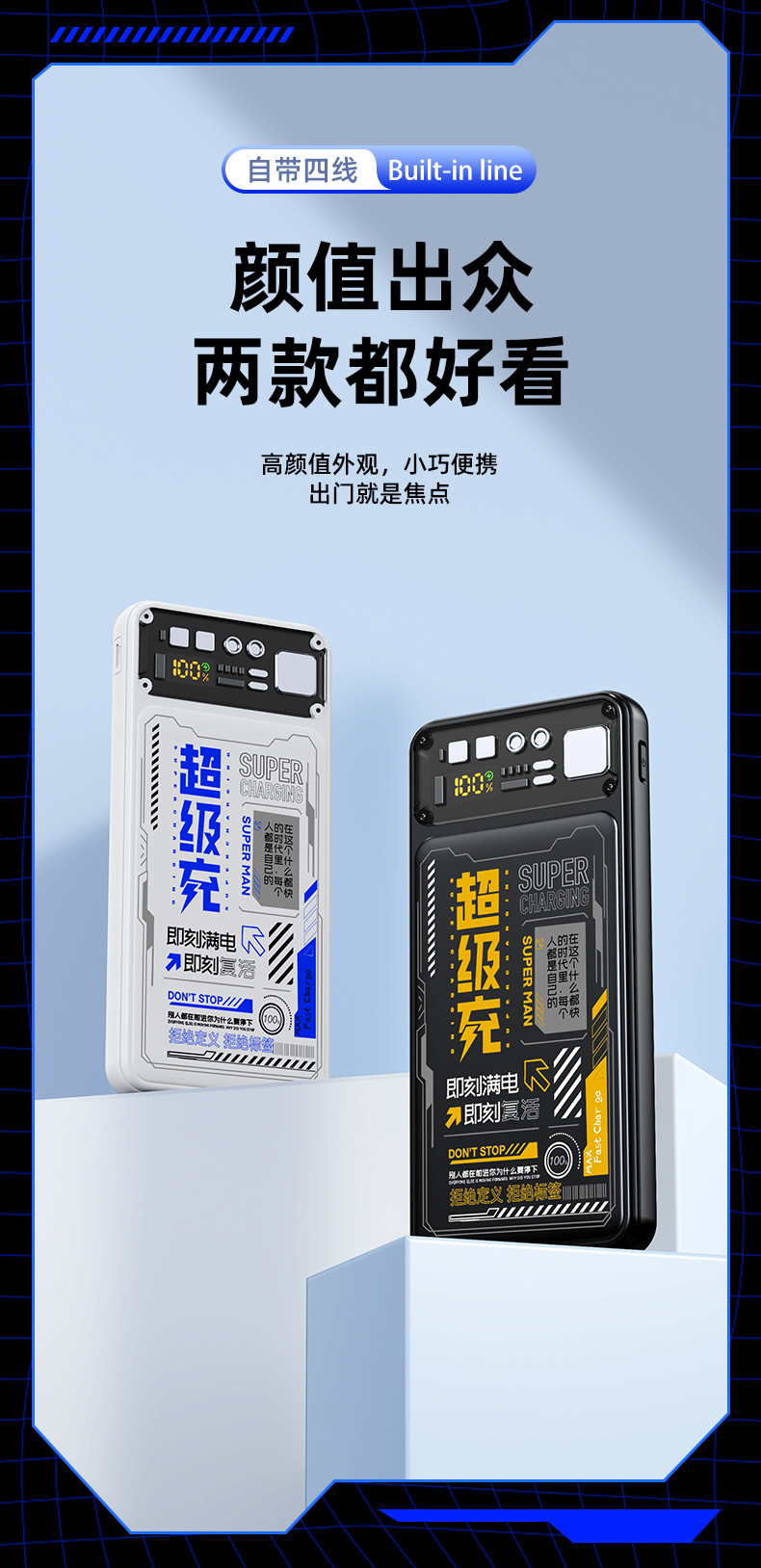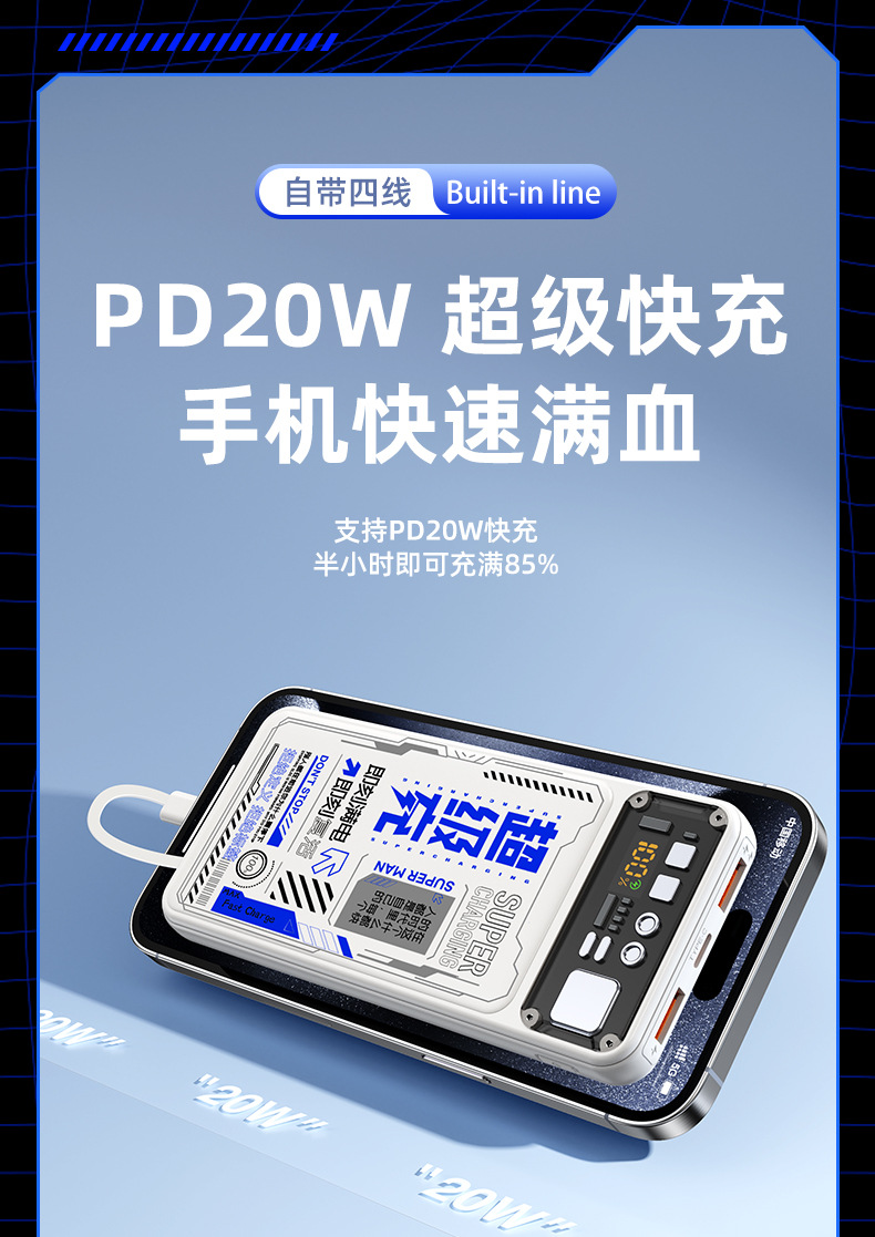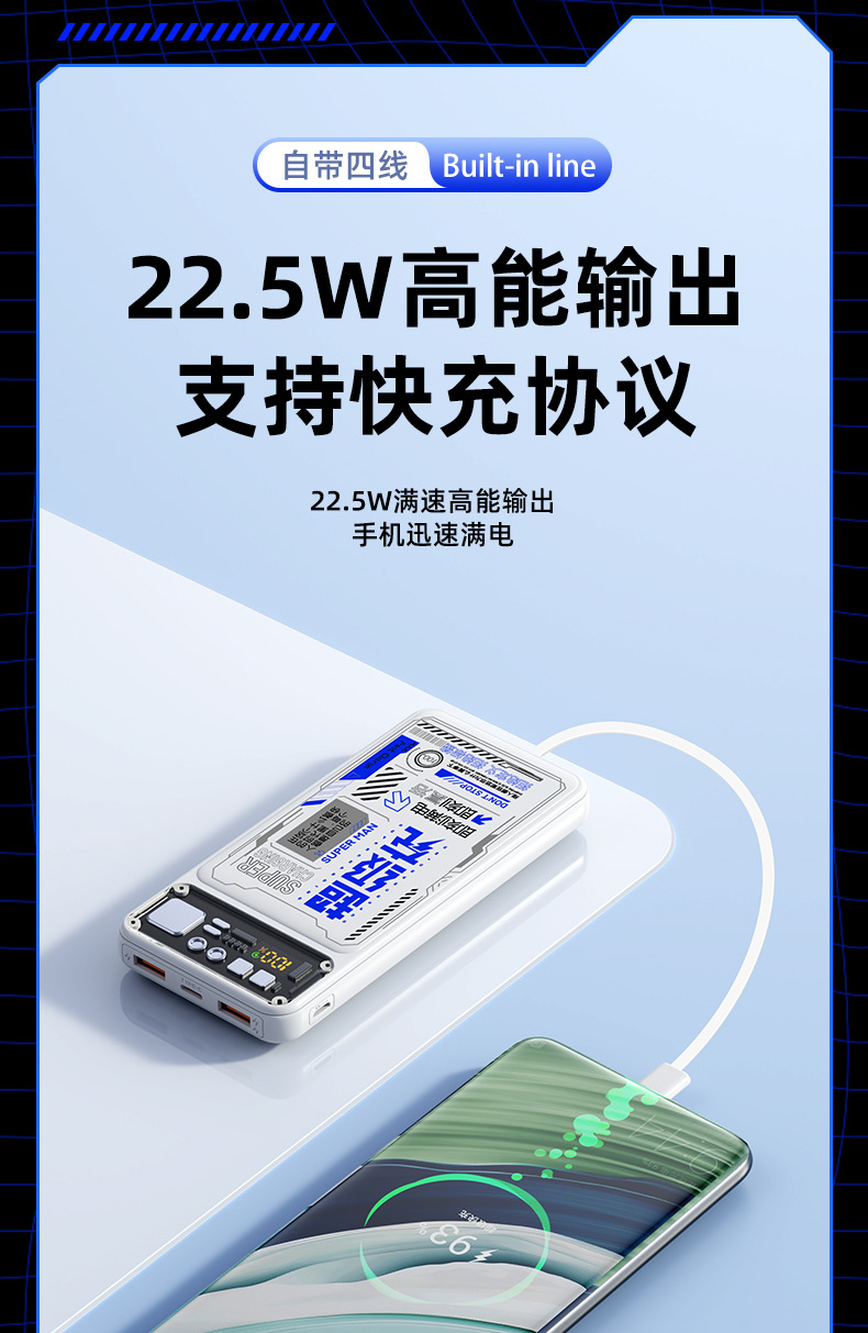 爆款22.5W机甲充电宝20000毫安超级快充带线超大容量移动电源