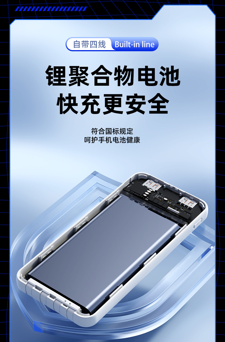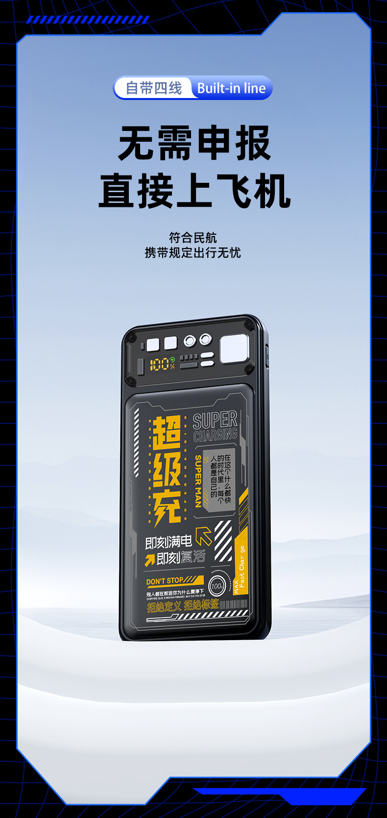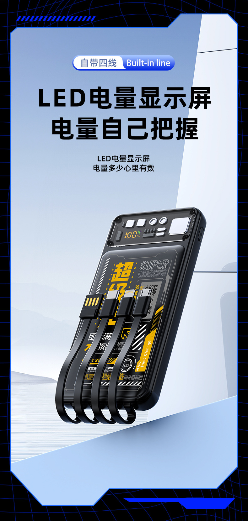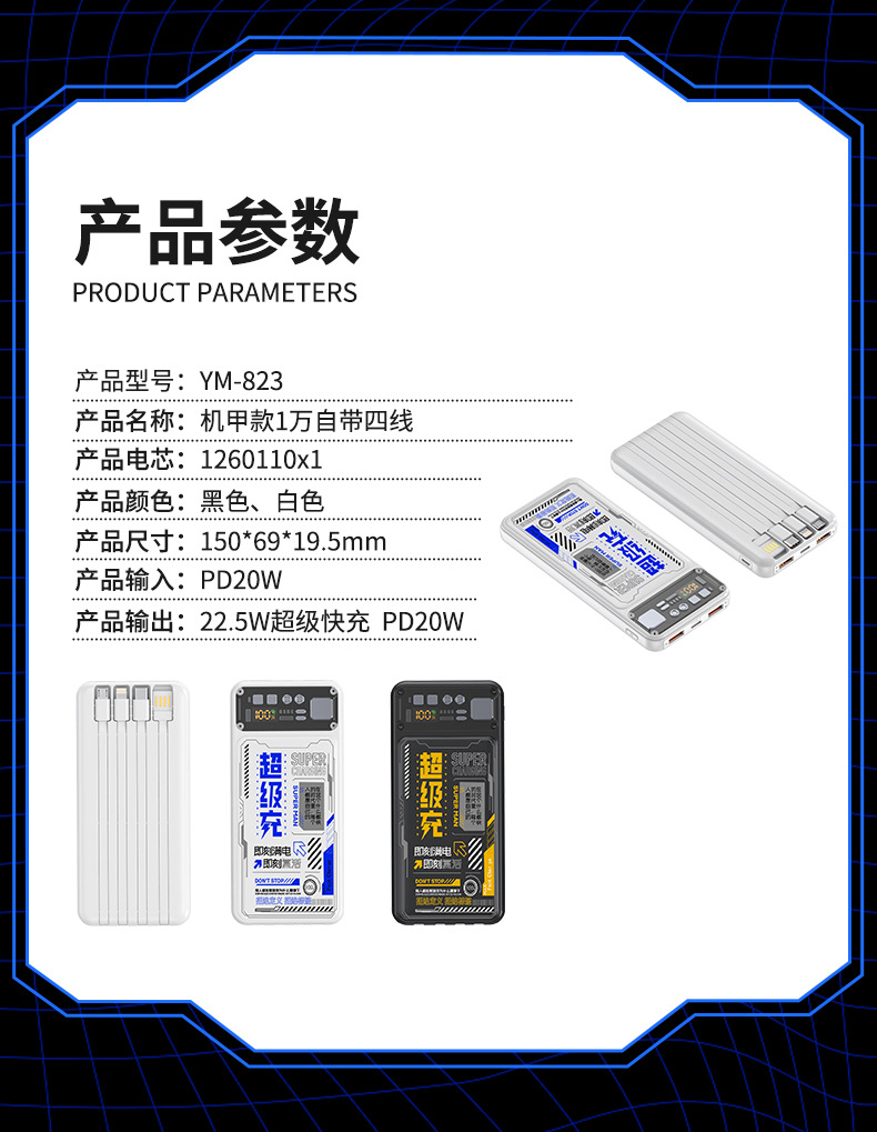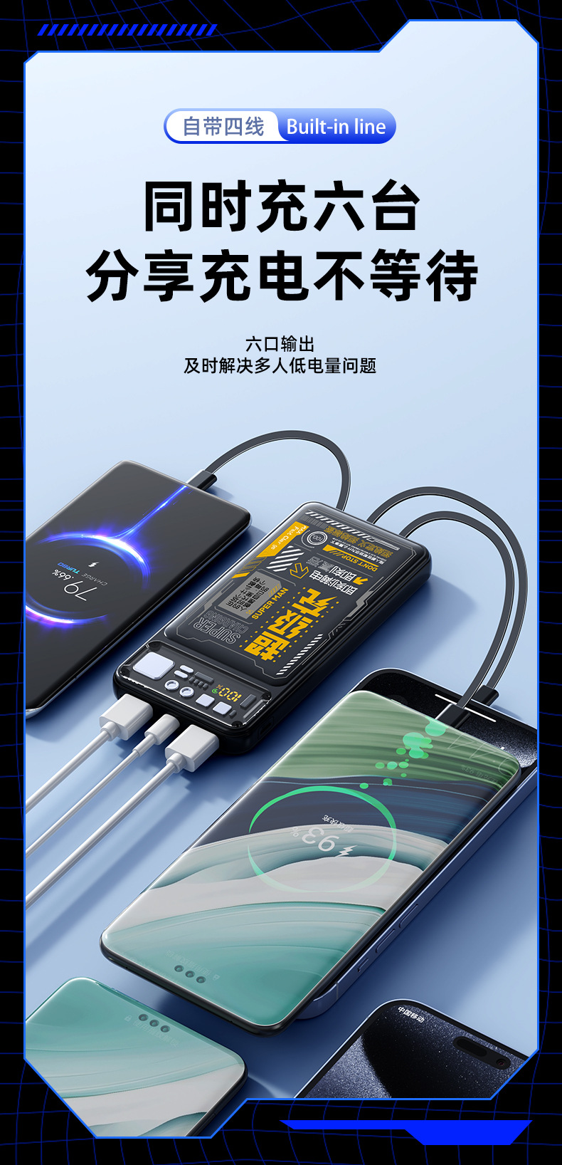 爆款22.5W机甲充电宝20000毫安超级快充带线超大容量移动电源