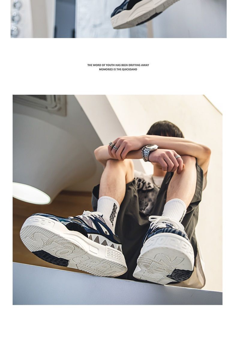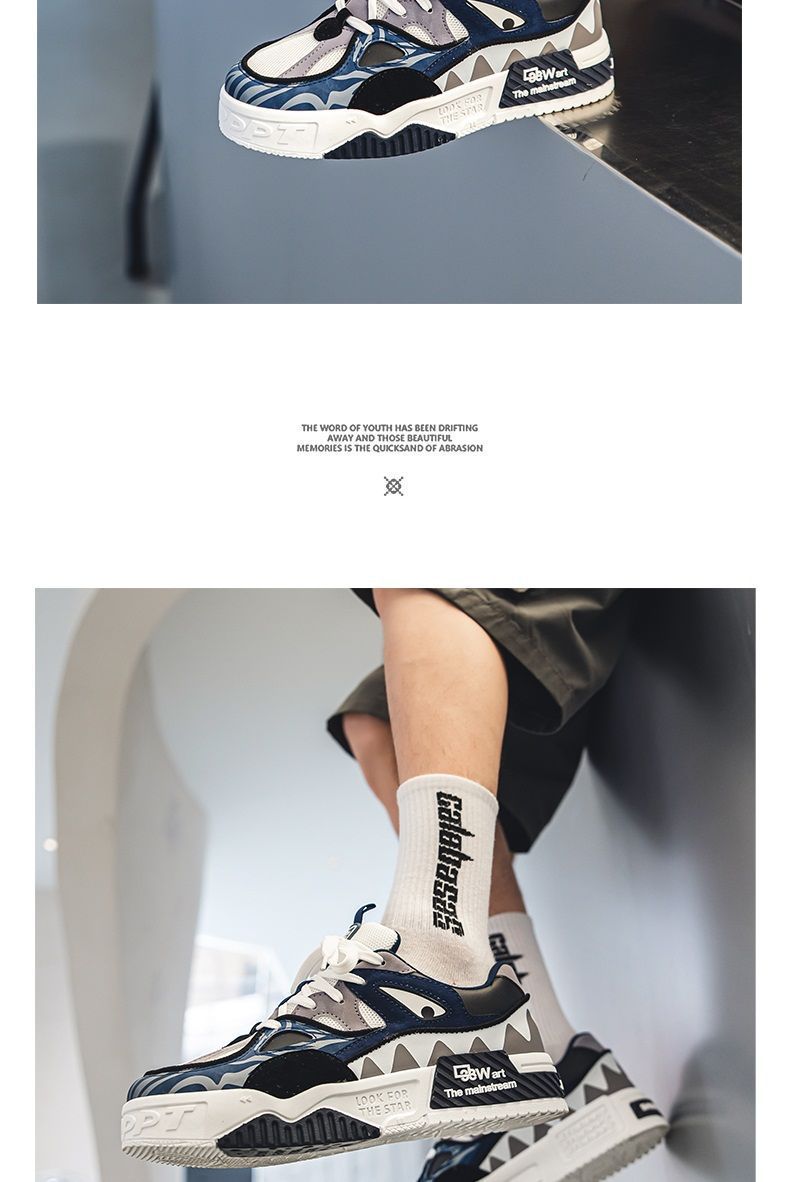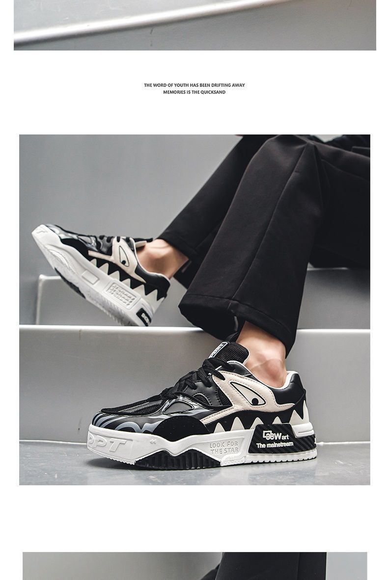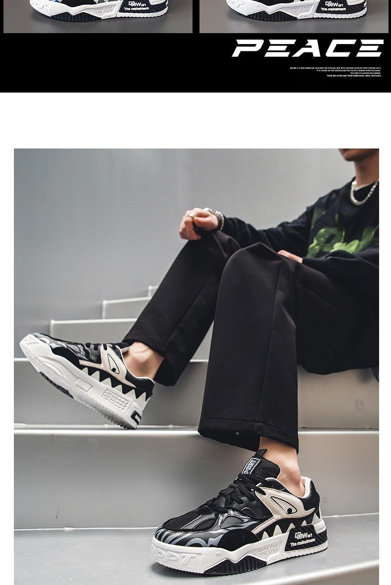 休闲男鞋小众个性运动滑板设计春季厚底春季耐磨面包厚底板鞋