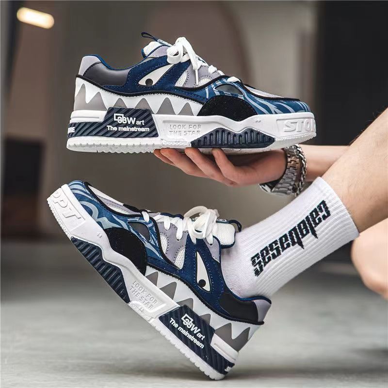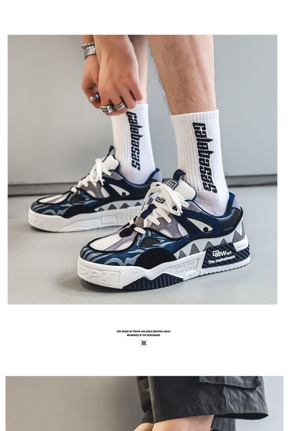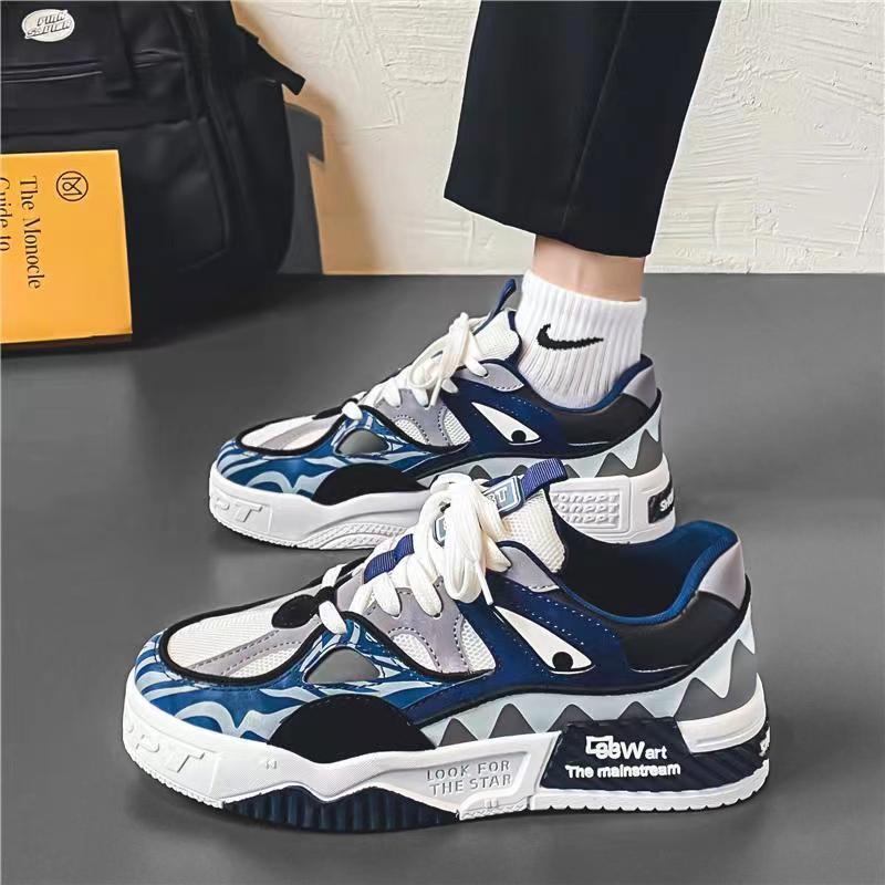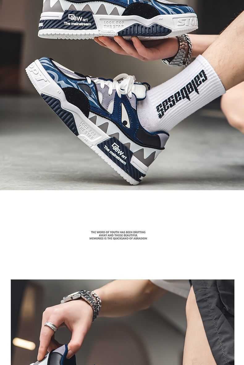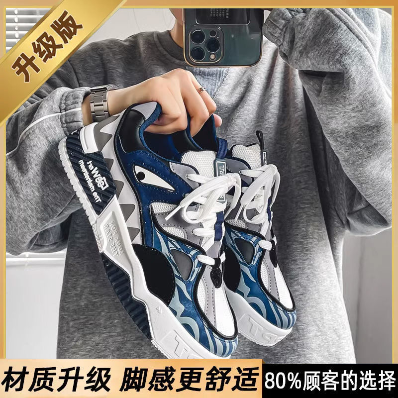 休闲男鞋小众个性运动滑板设计春季厚底春季耐磨面包厚底板鞋