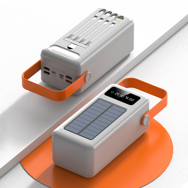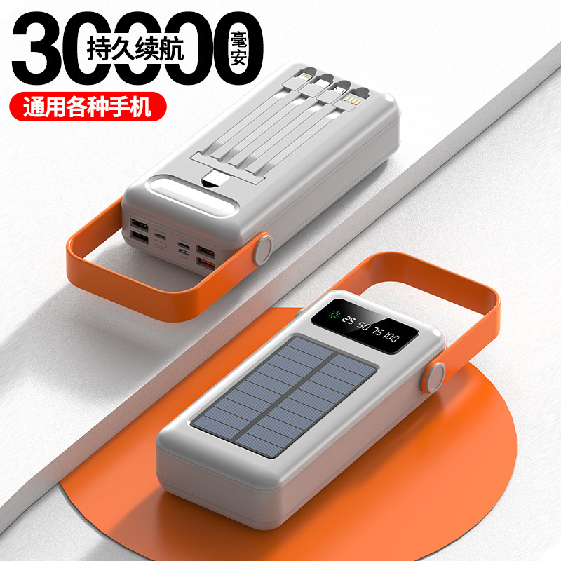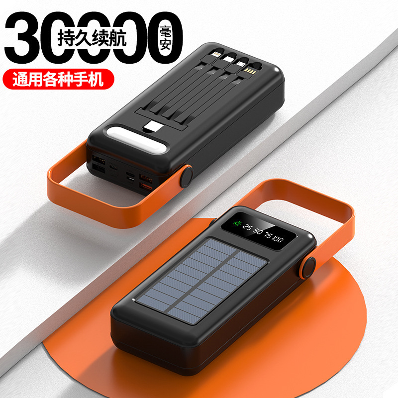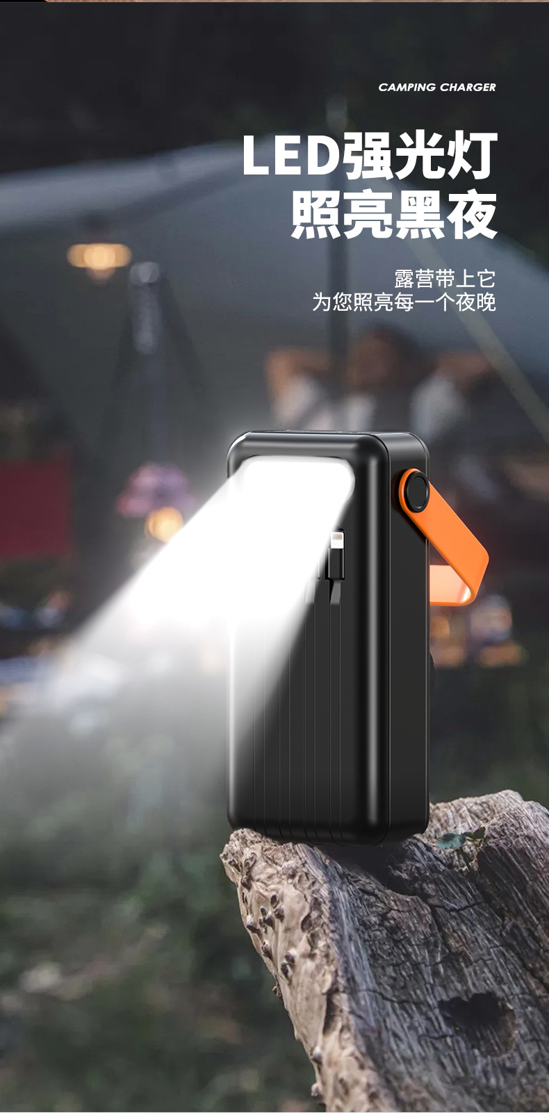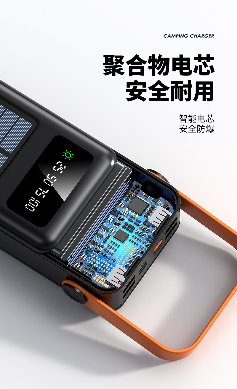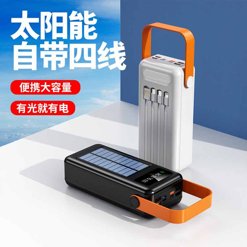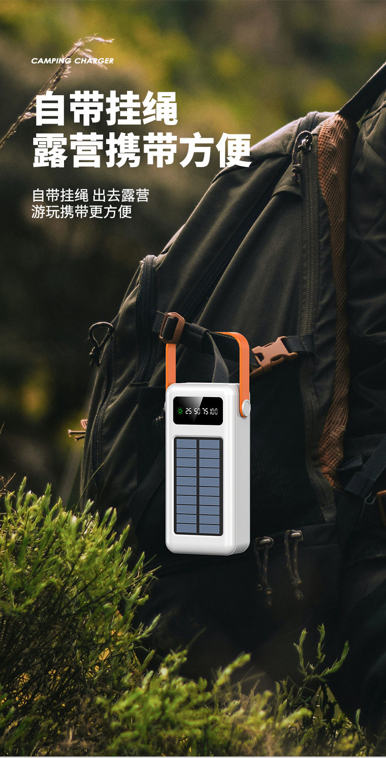 跨境户外大容量自带线太阳能充电宝80000毫安带LED灯移动电源照明