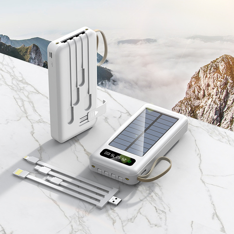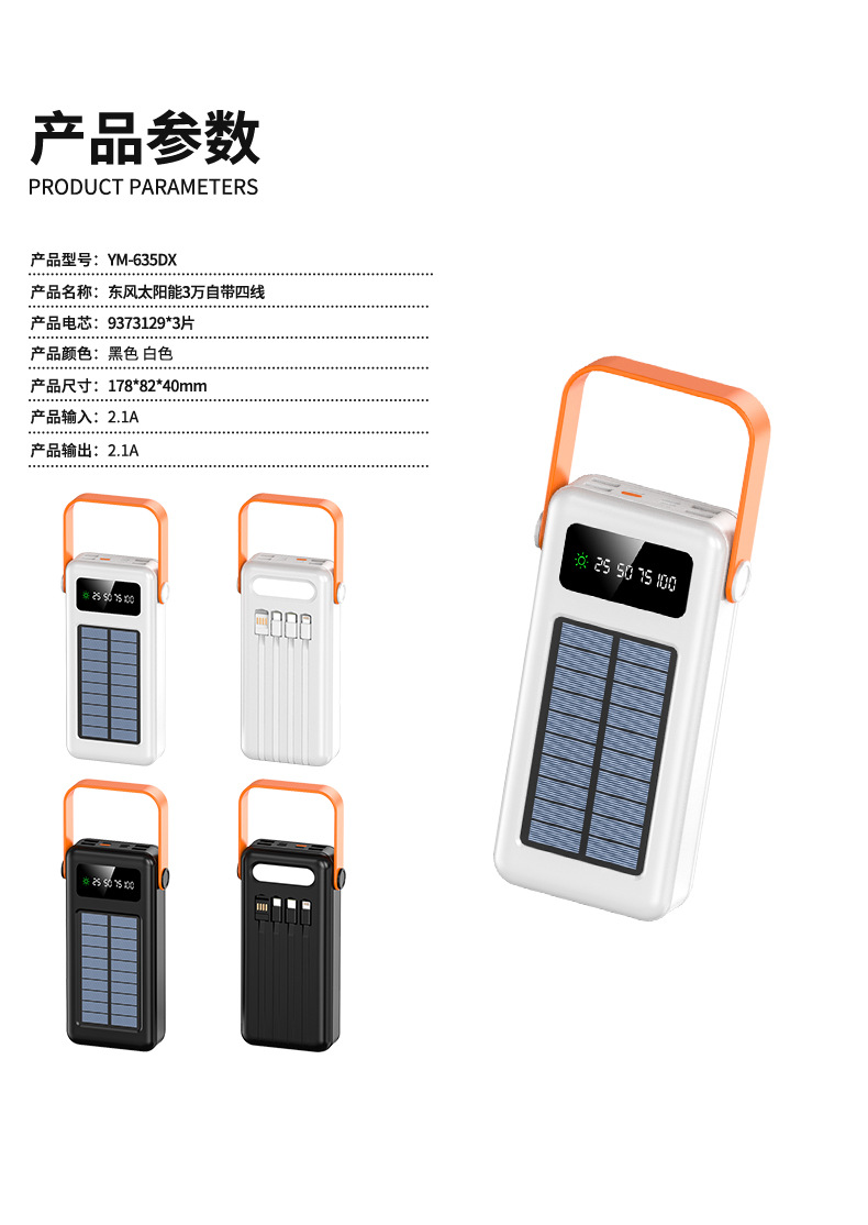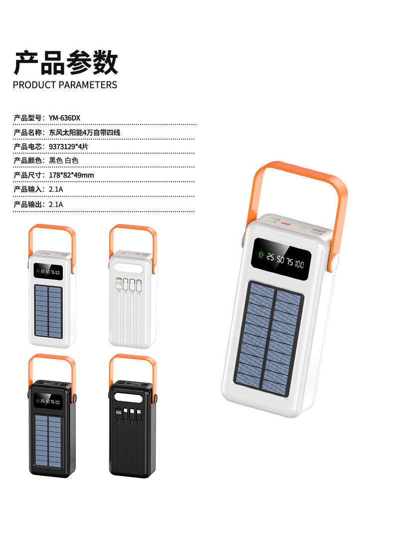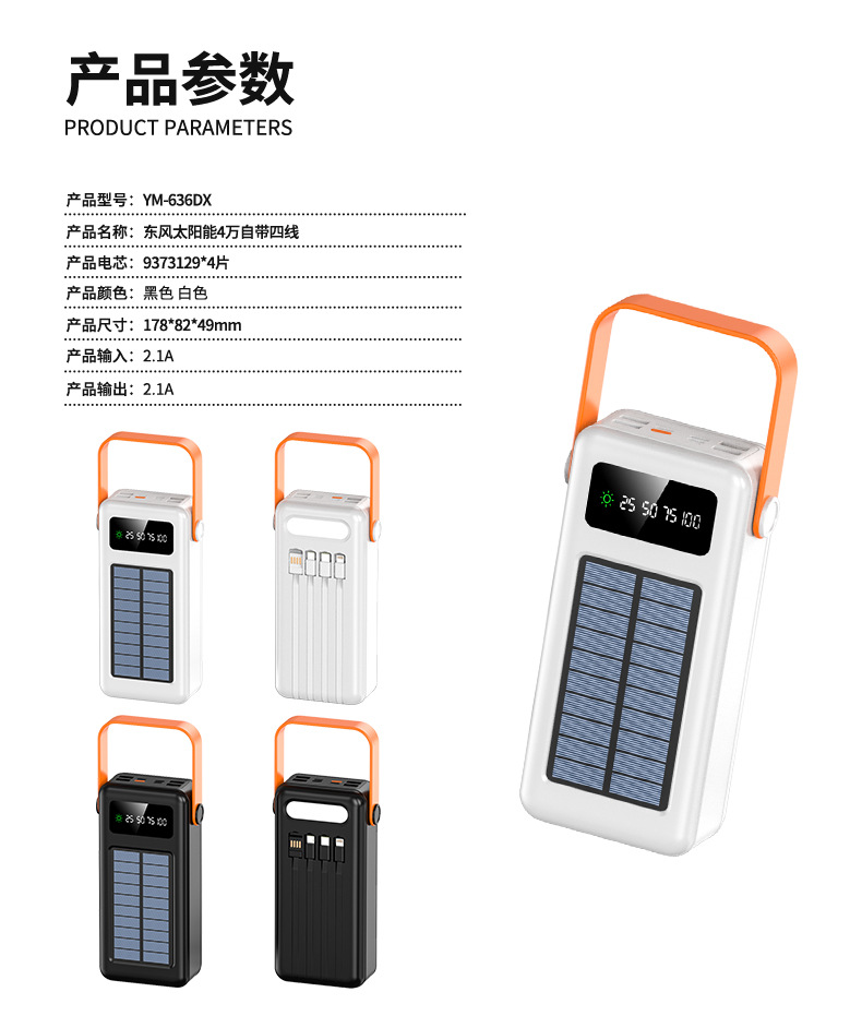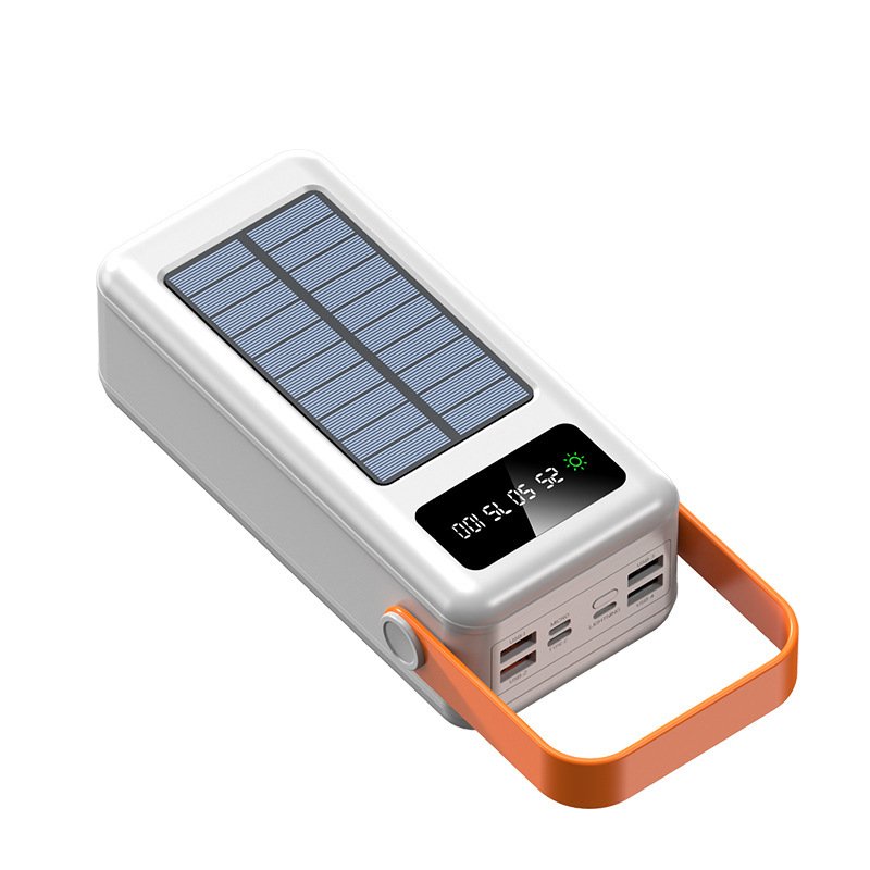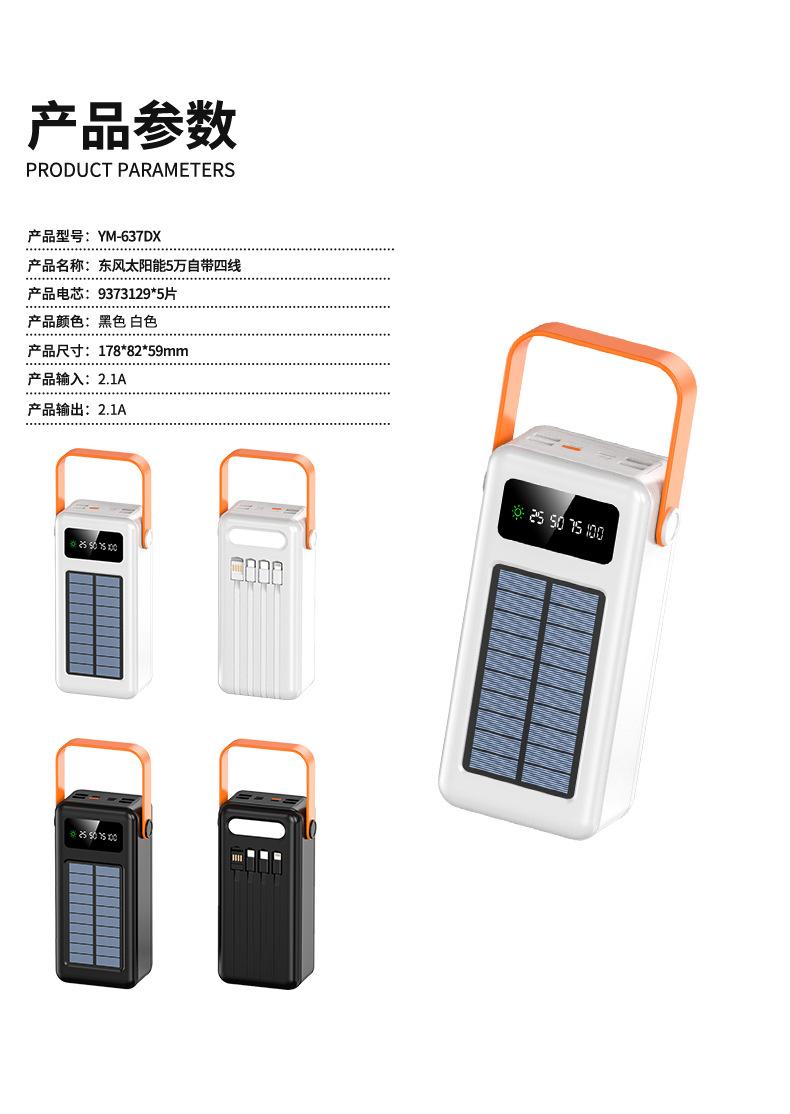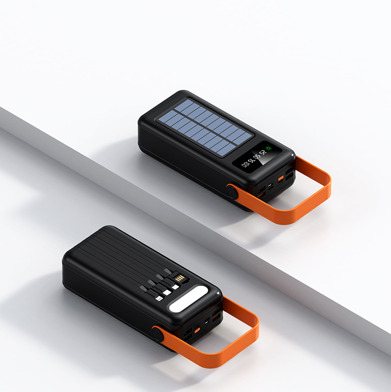 跨境户外大容量自带线太阳能充电宝80000毫安带LED灯移动电源照明