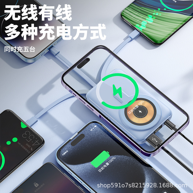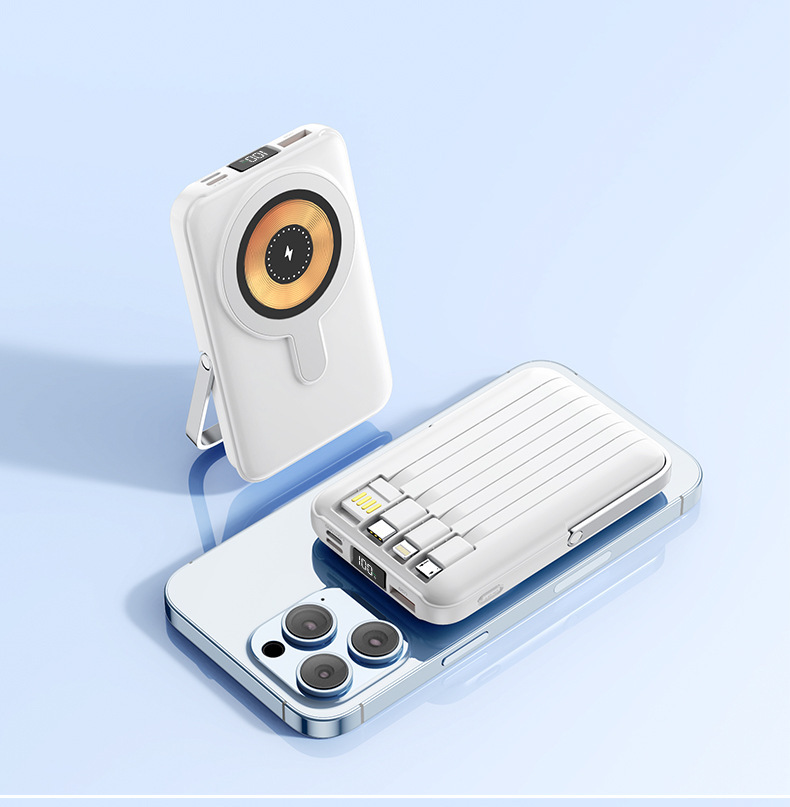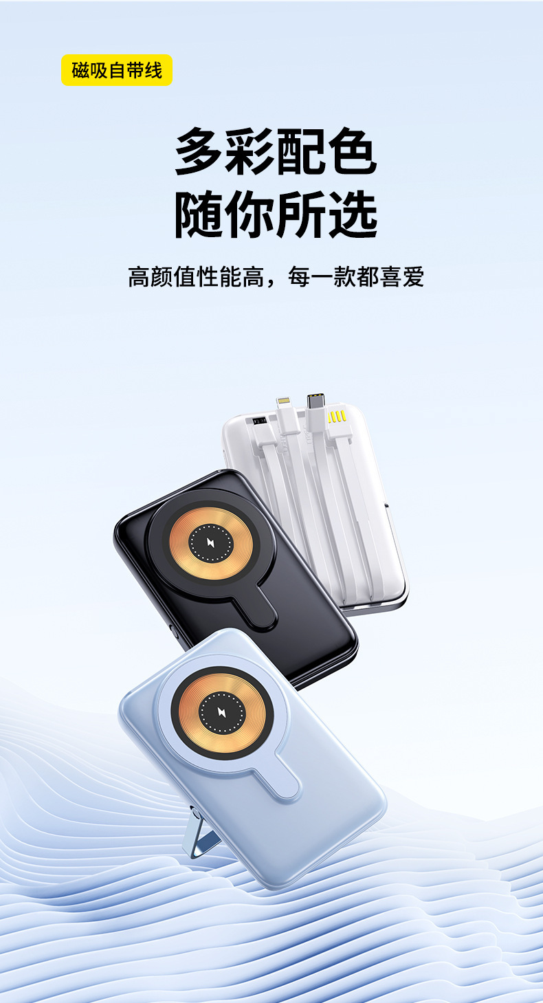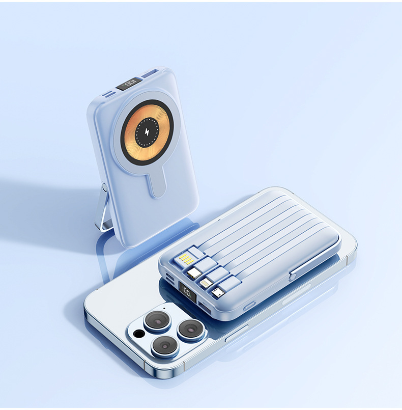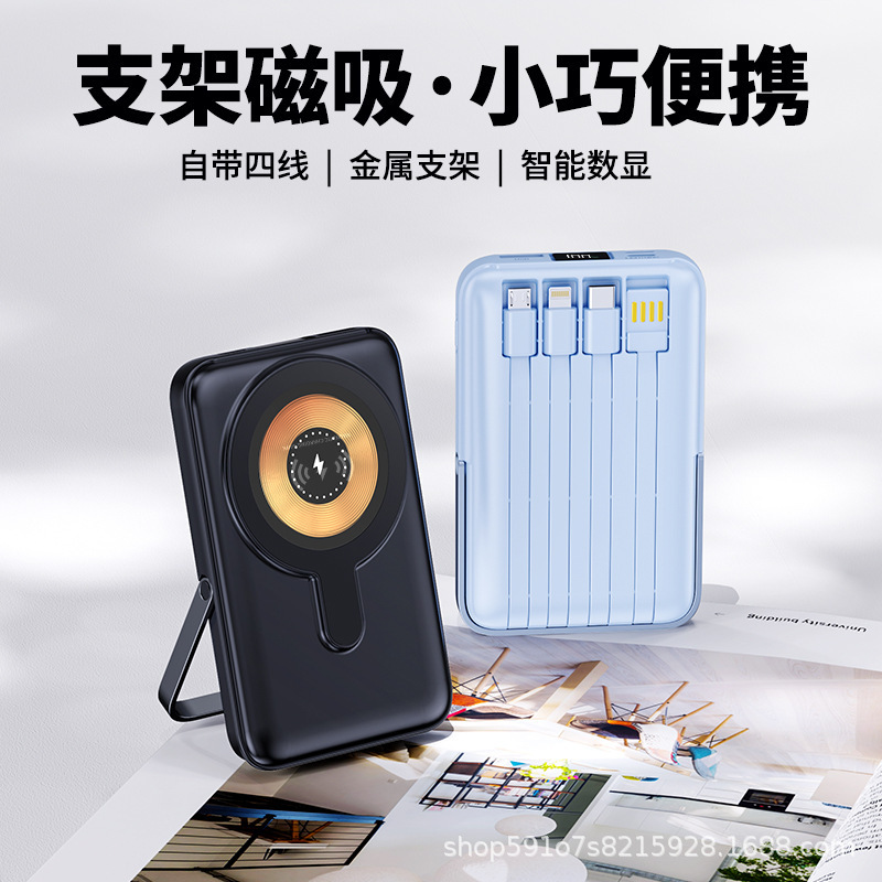 磁吸支架充电宝自带四线10000毫安PD22.5W无线充便携小巧移动电源