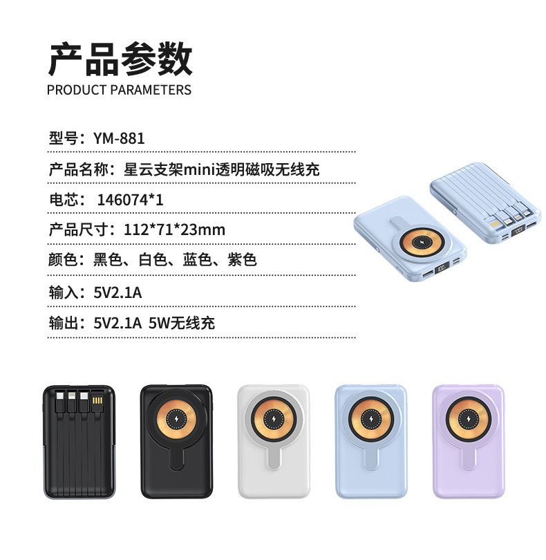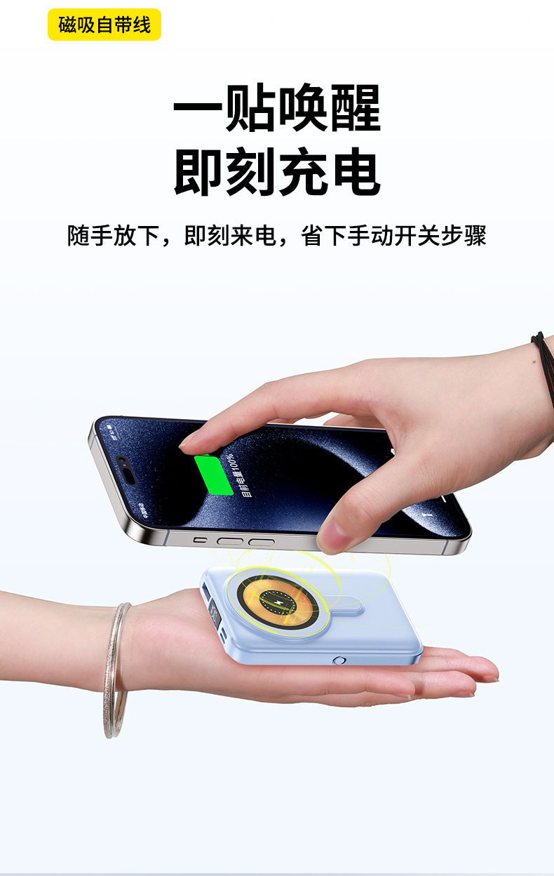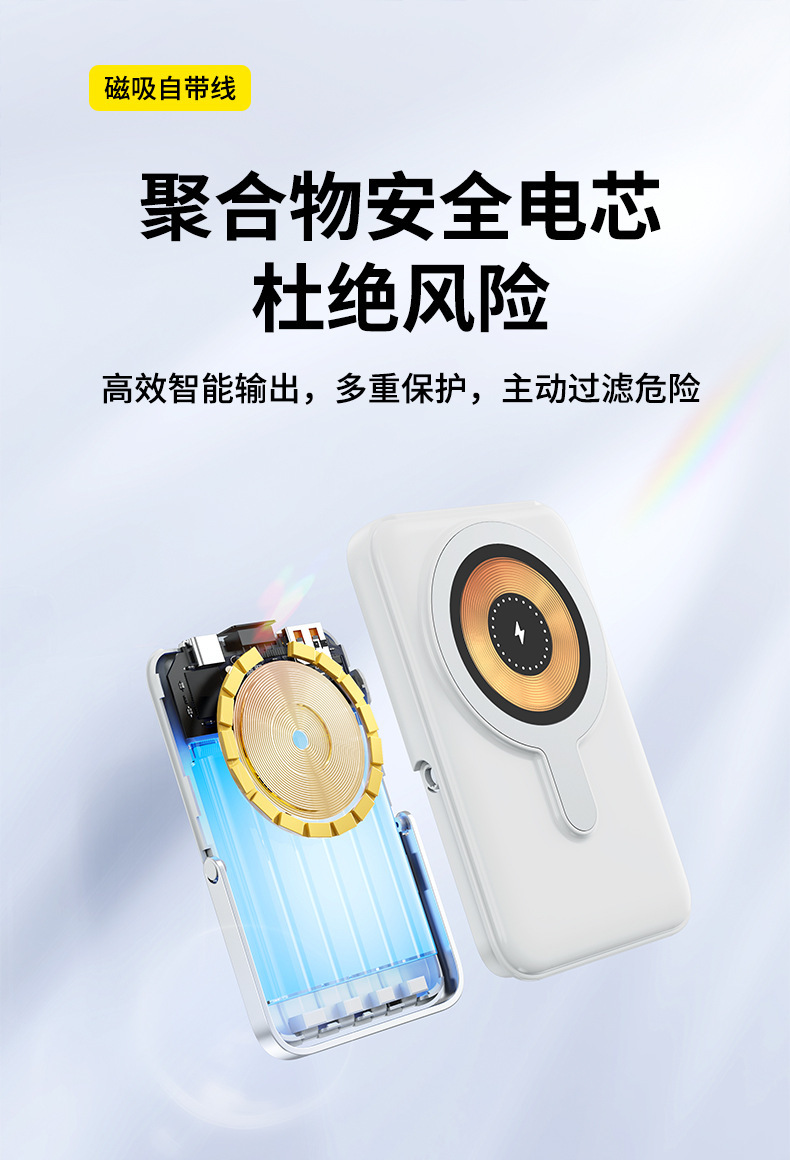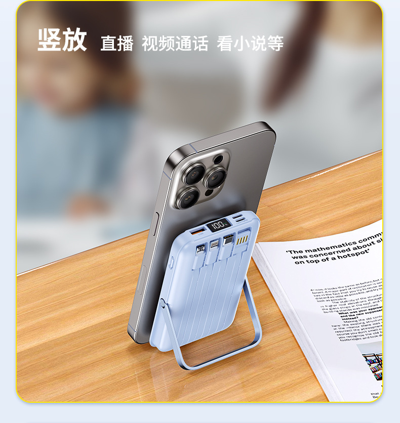 磁吸支架充电宝自带四线10000毫安PD22.5W无线充便携小巧移动电源