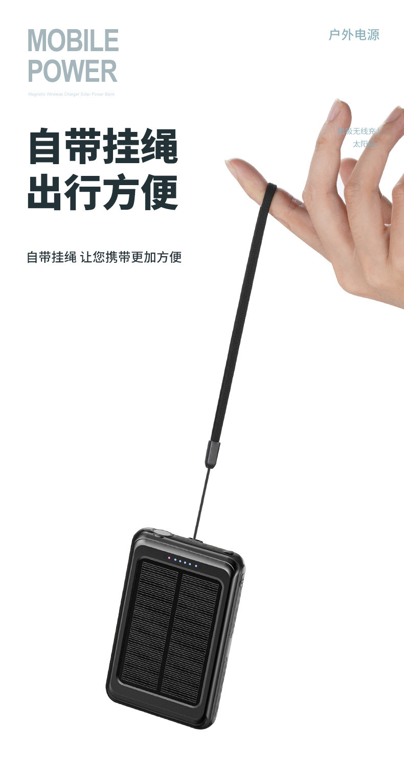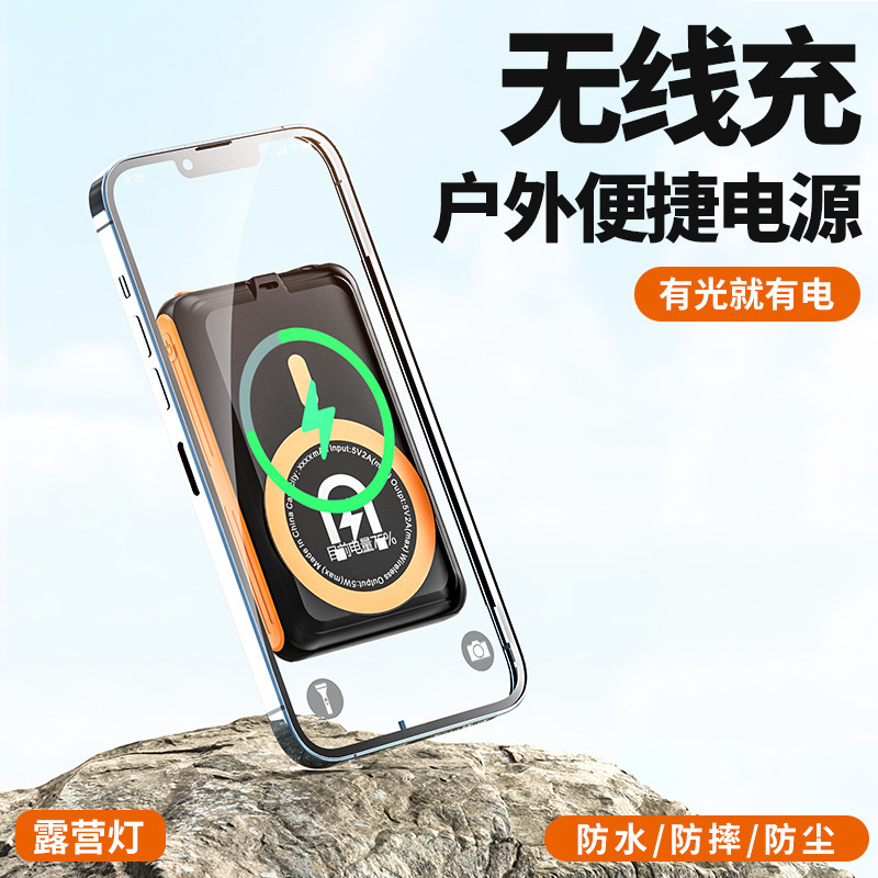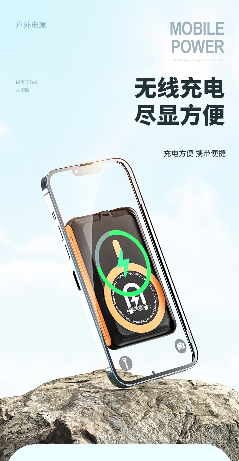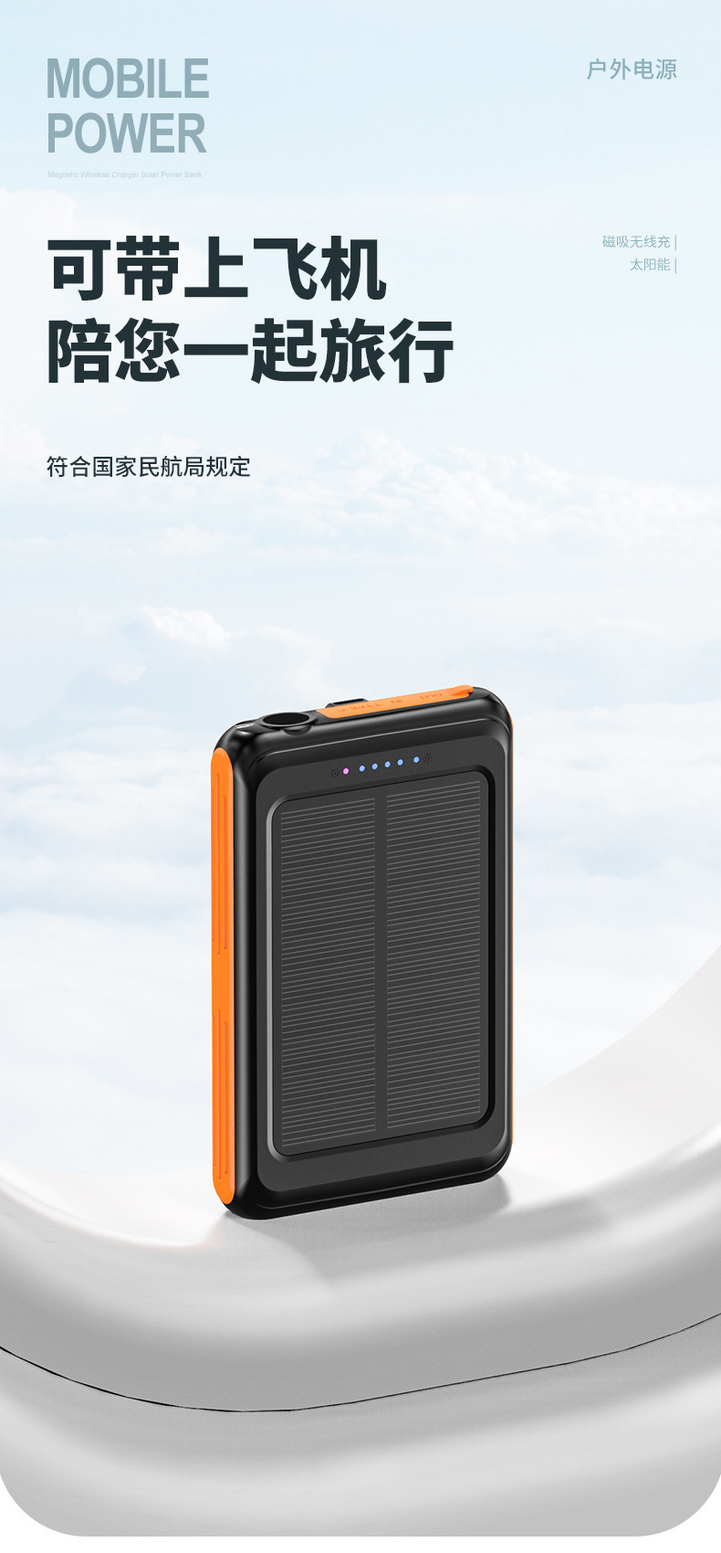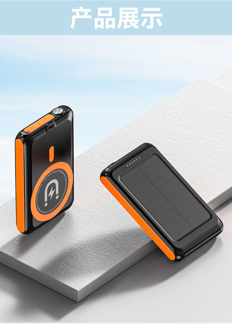 5000毫安磁吸充电宝5w无线快充太阳能移动电源磁吸无线充电宝批发