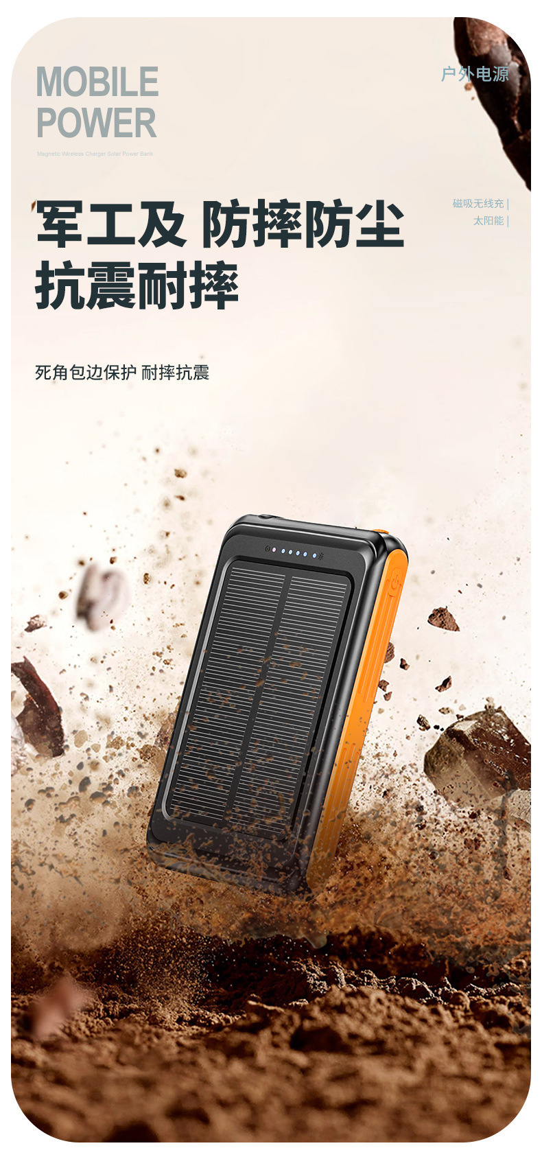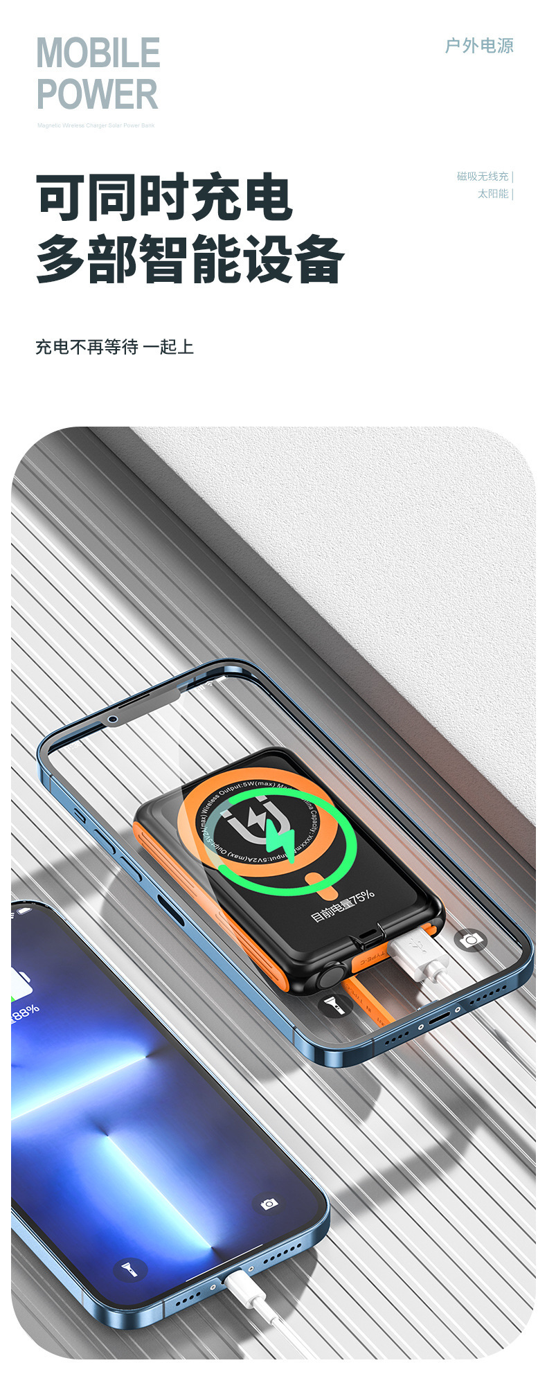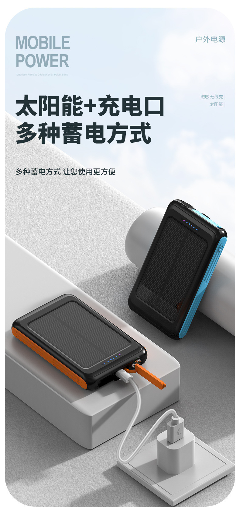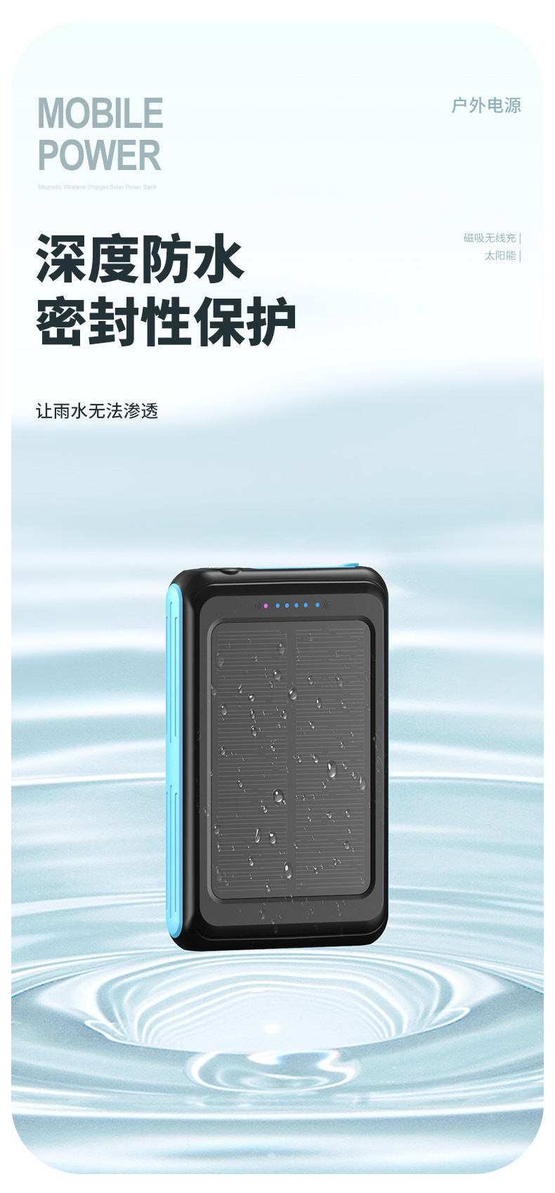 5000毫安磁吸充电宝5w无线快充太阳能移动电源磁吸无线充电宝批发
