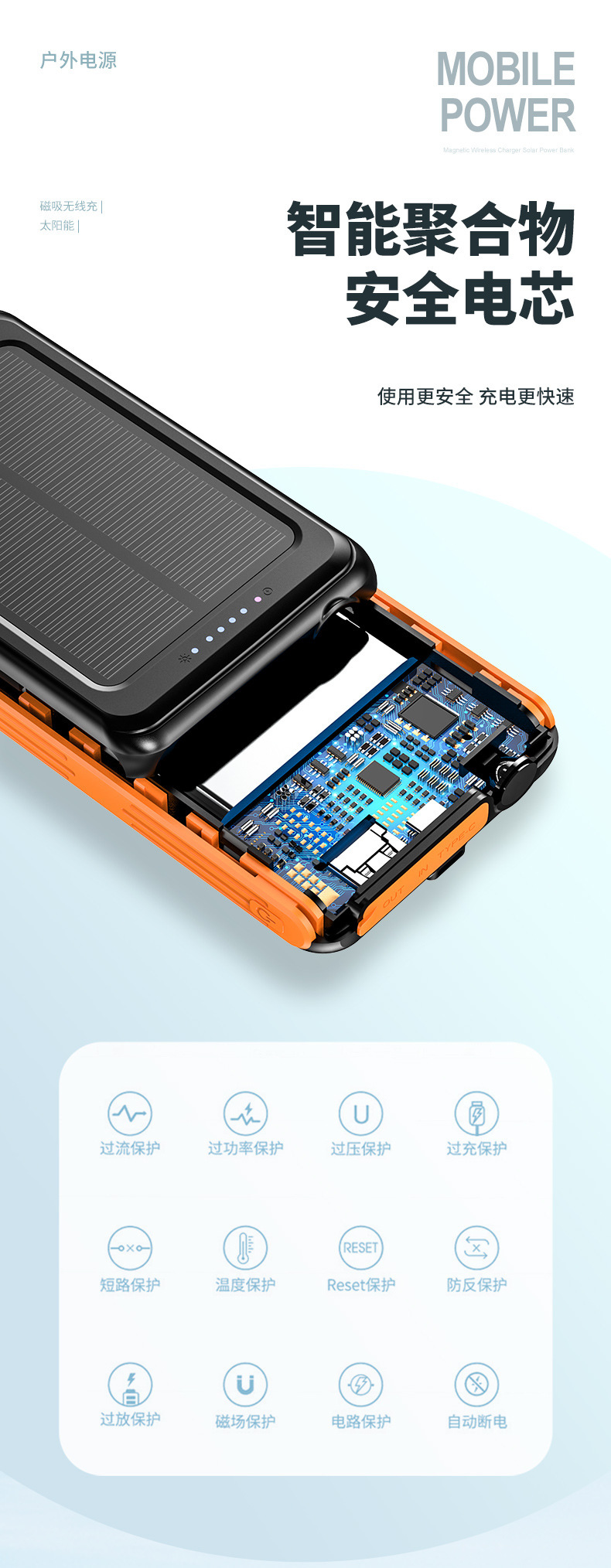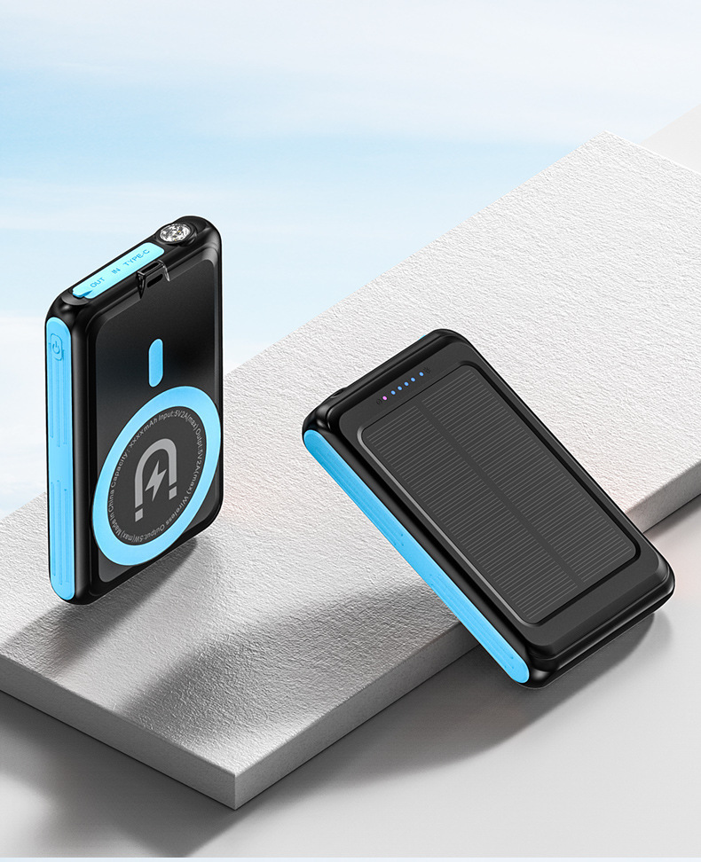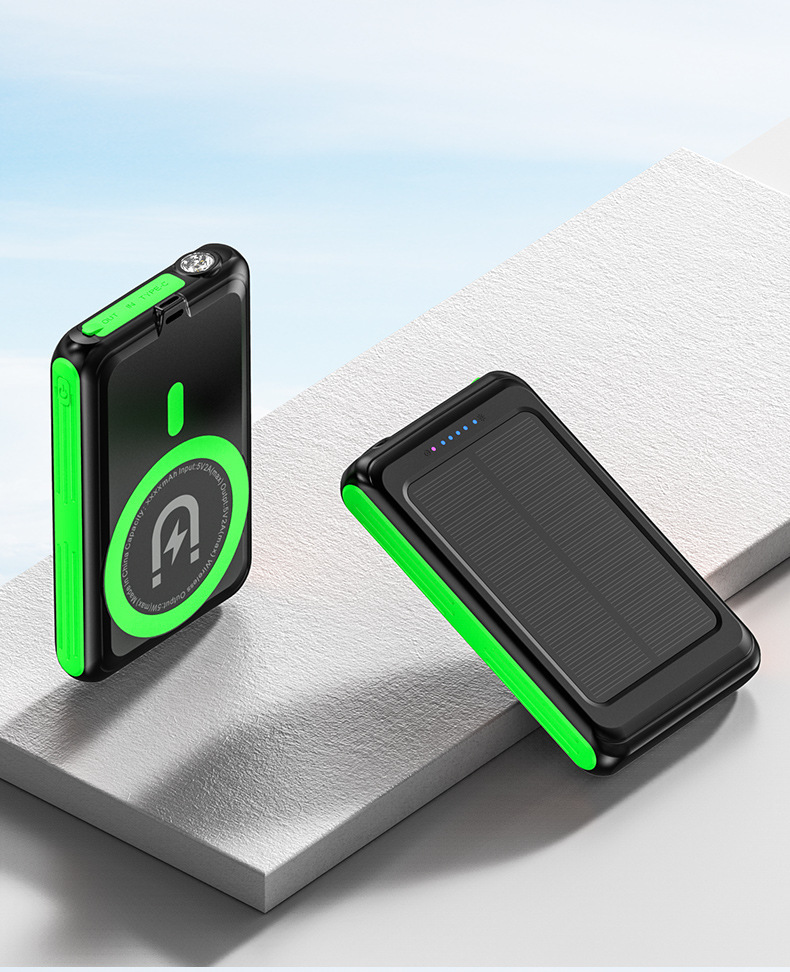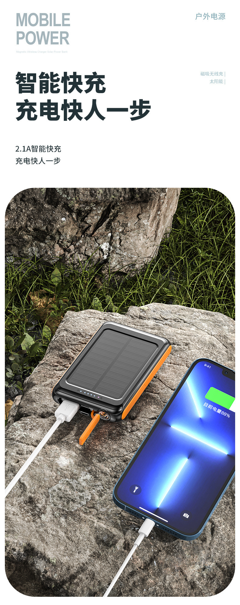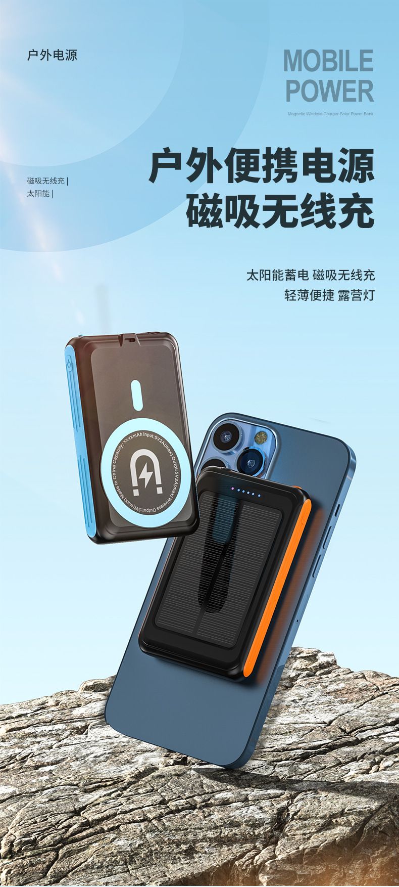 5000毫安磁吸充电宝5w无线快充太阳能移动电源磁吸无线充电宝批发