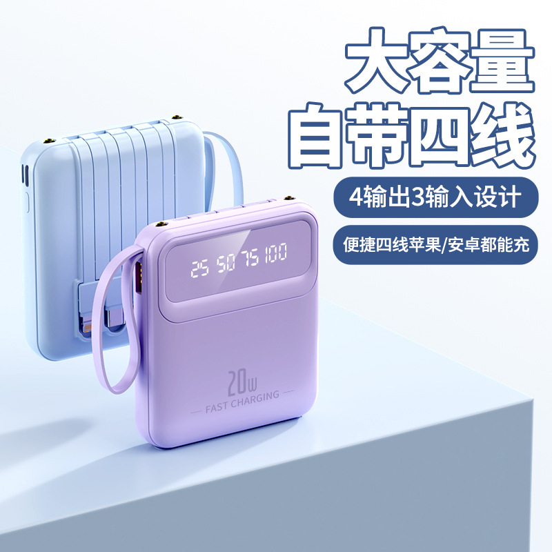 批发迷你自带线充电宝20000毫安 便携小巧大容量移动电源礼品印制
