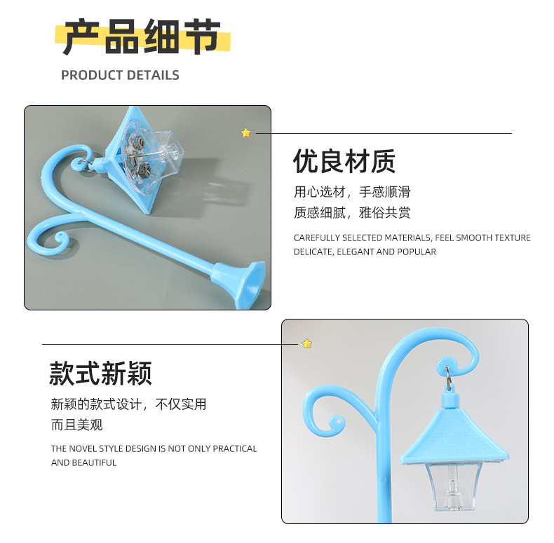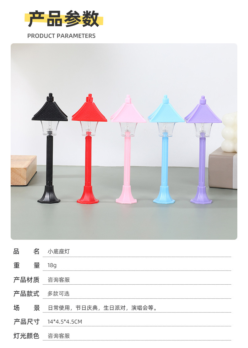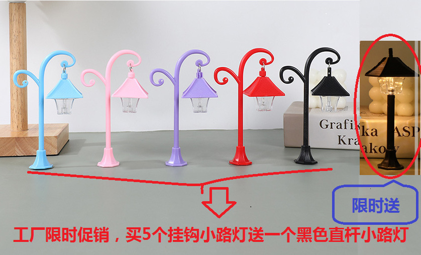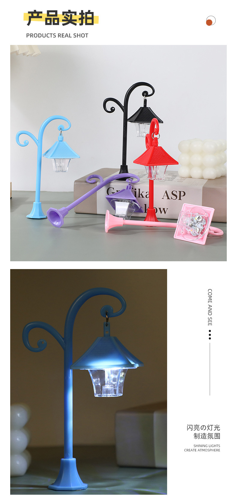 迷你LED小夜灯微景观小底座路灯 仿真路灯模型桌面装饰双色小挂灯