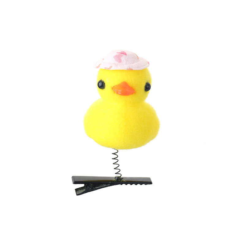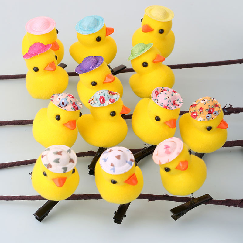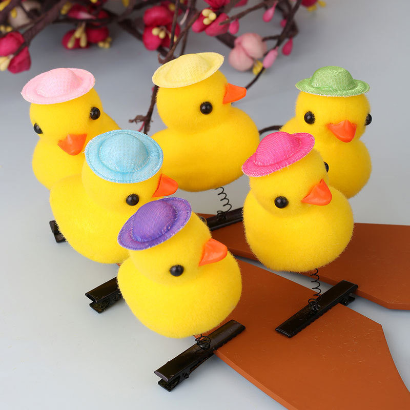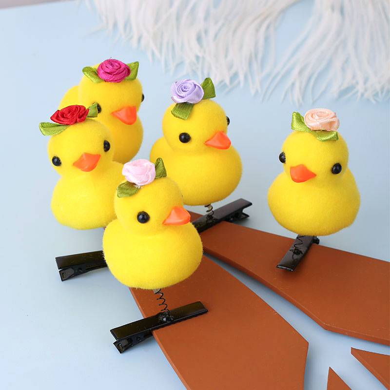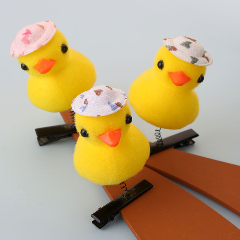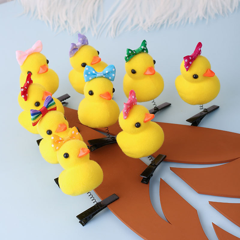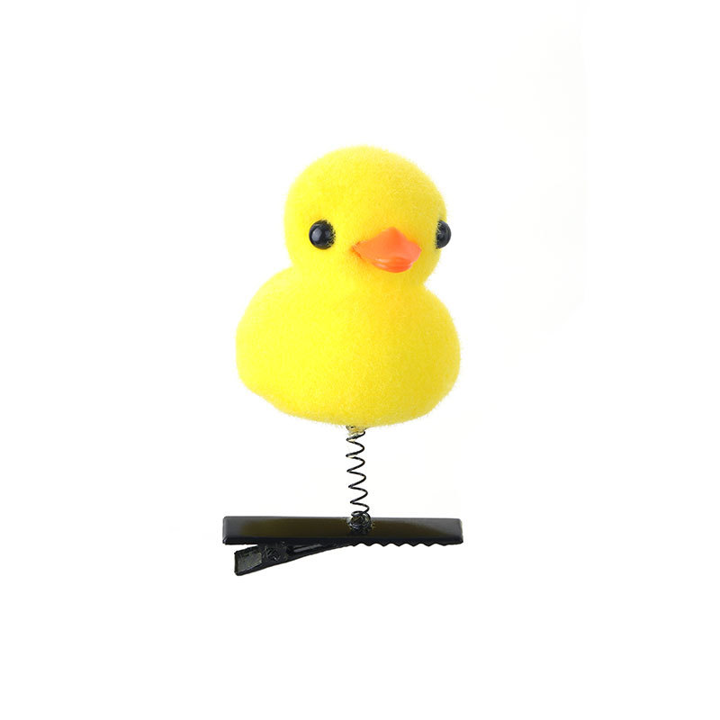 2024网红爆款卖萌神器发夹 小黄鸭毛绒头饰弹簧发夹地推货源批发