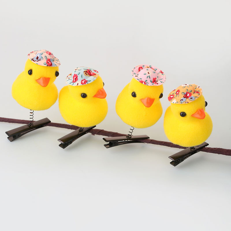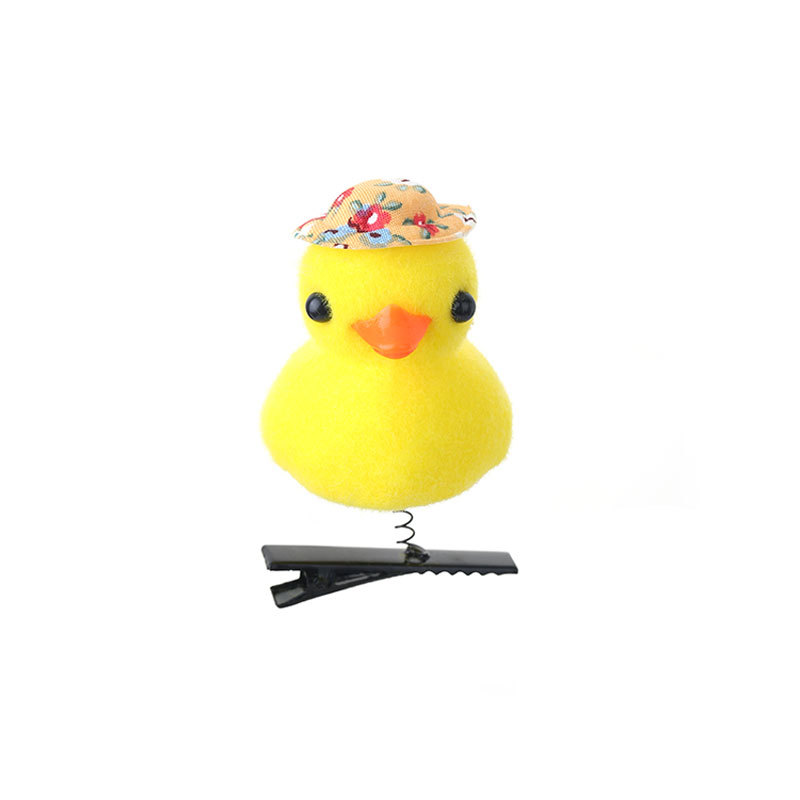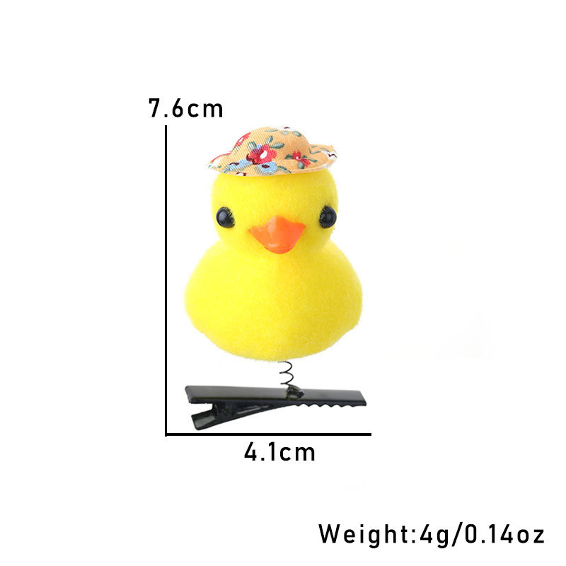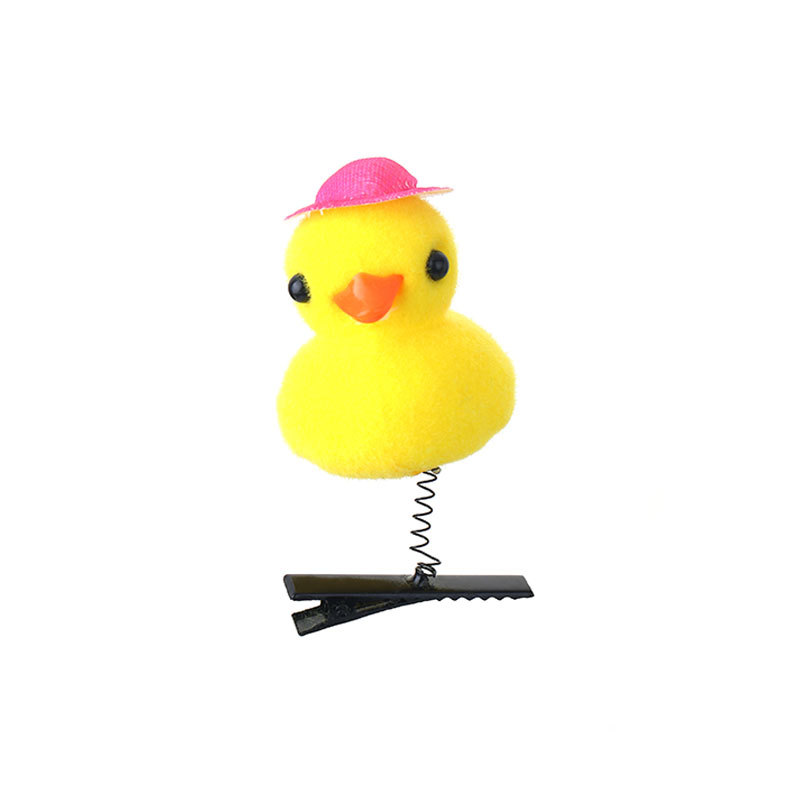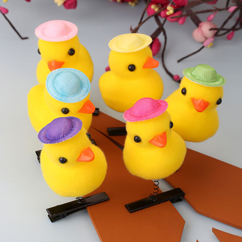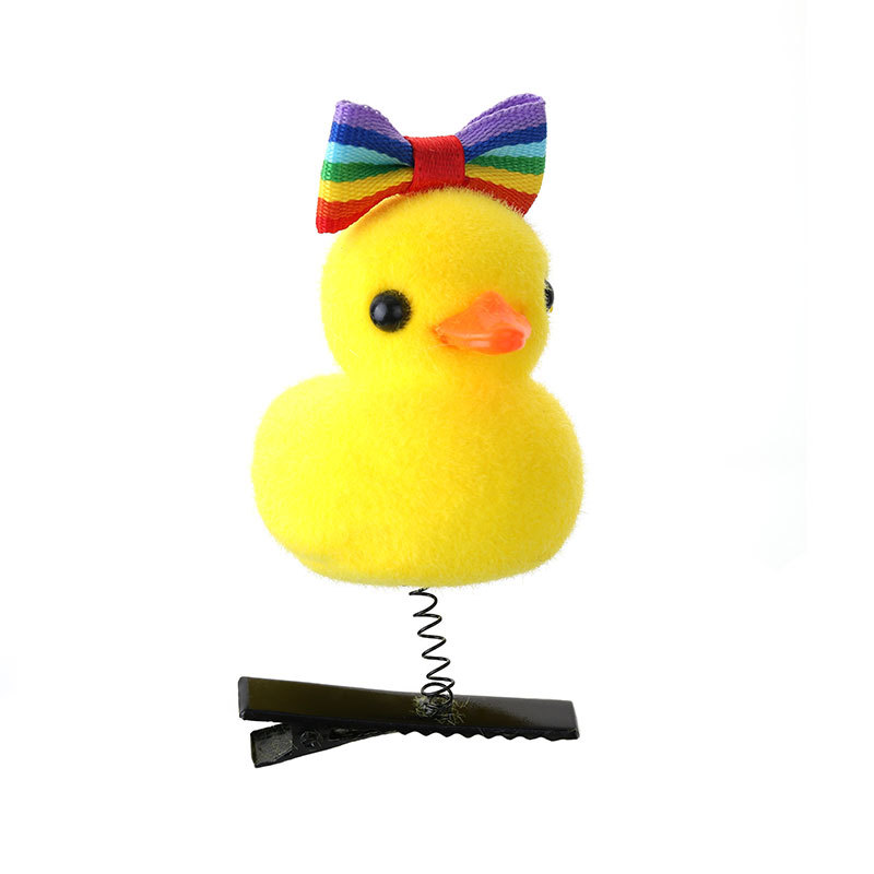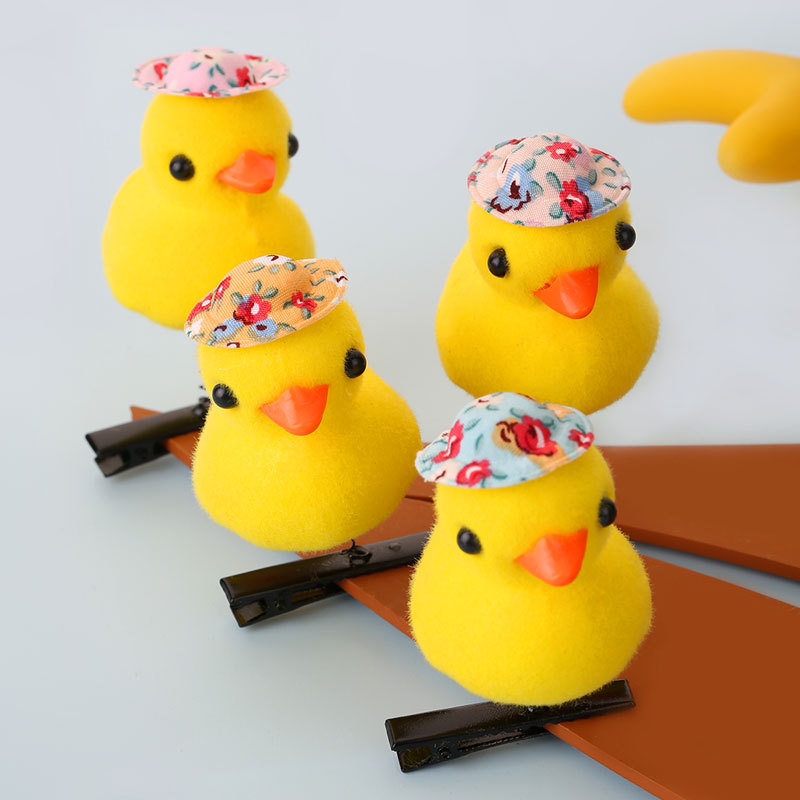 2024网红爆款卖萌神器发夹 小黄鸭毛绒头饰弹簧发夹地推货源批发