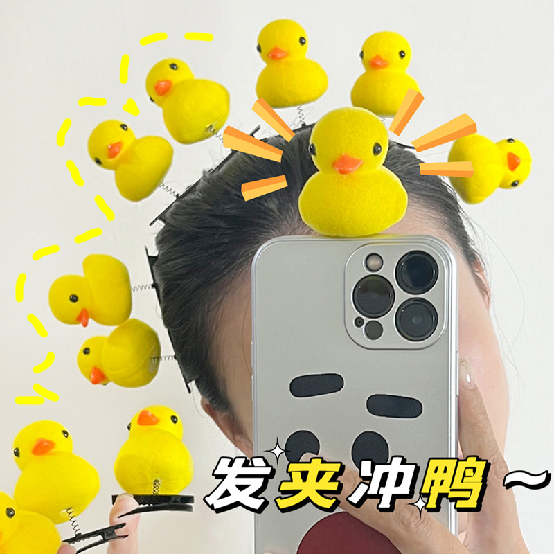 小黄鸭发卡卖萌神器卡通发夹小鸭子发卡地摊小玩具弹簧小黄鸭发夹