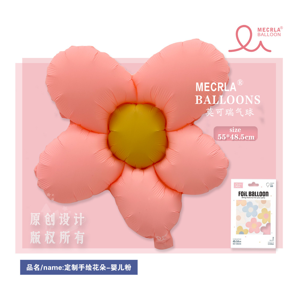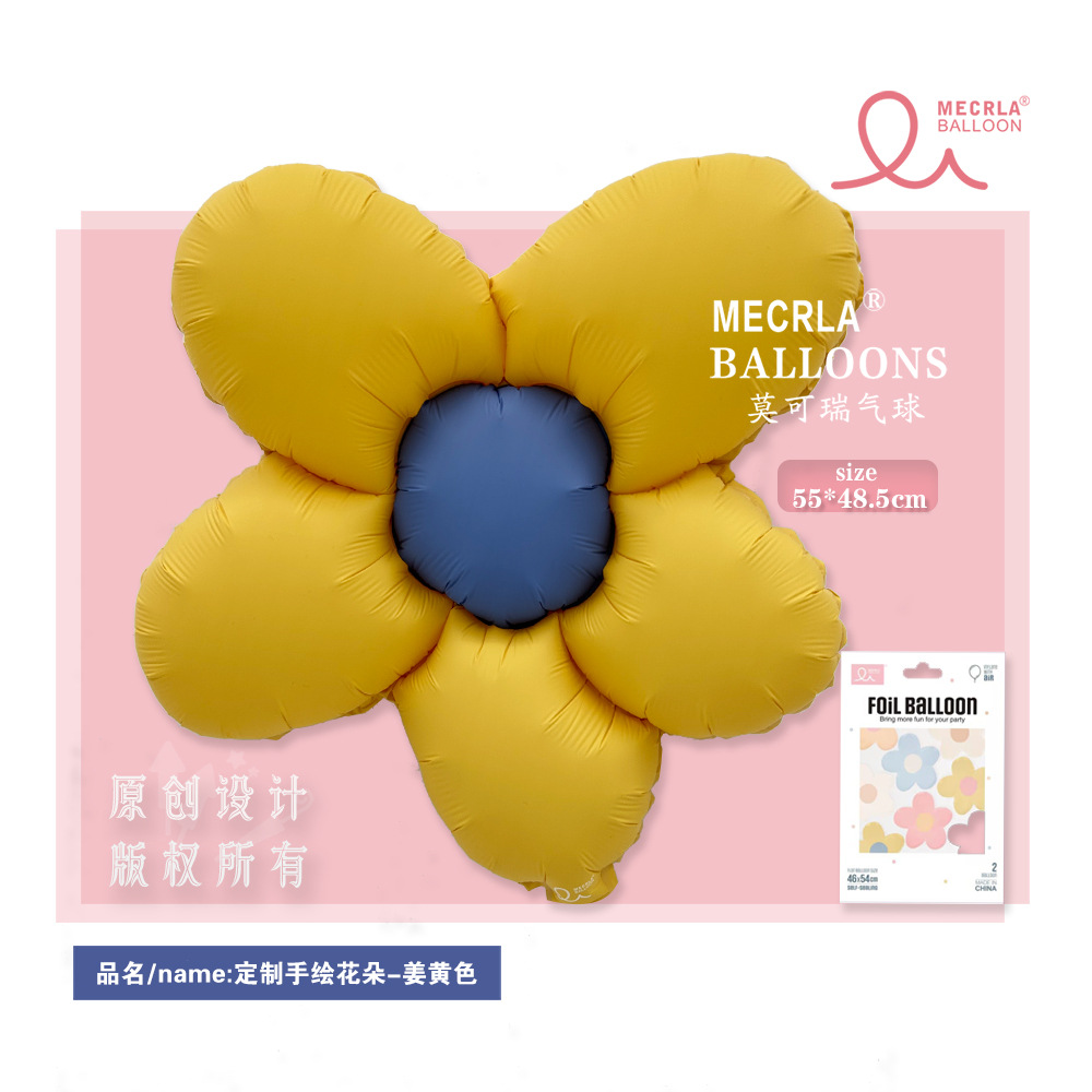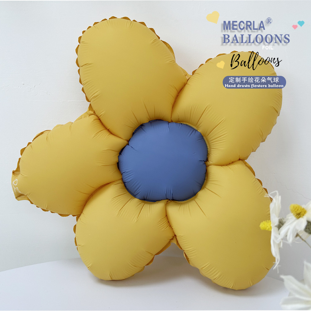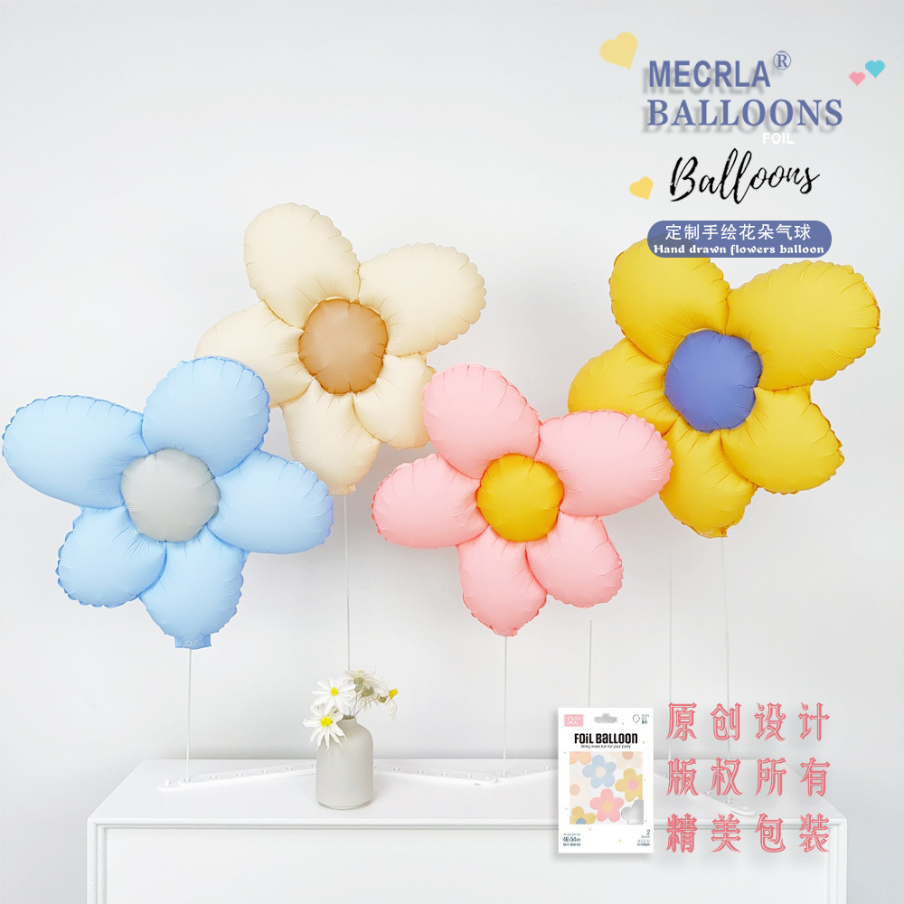 ins新款手绘哑光雏菊花朵生日派对儿童节摄影摆拍道具铝膜气球