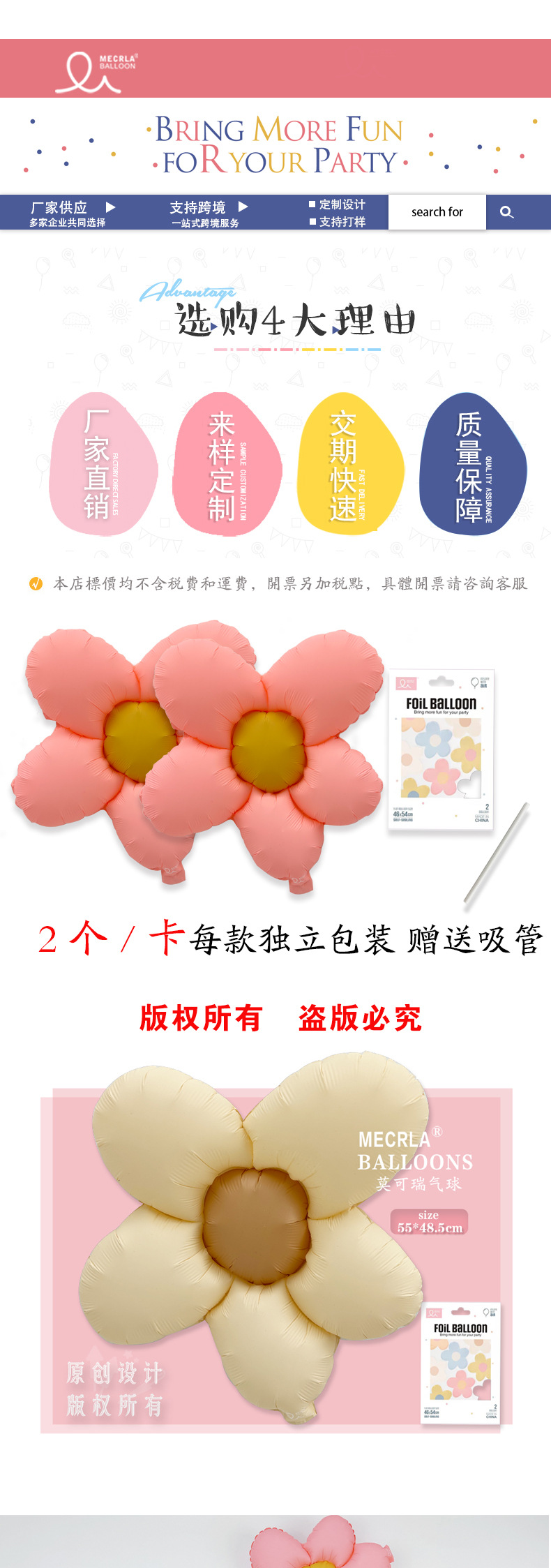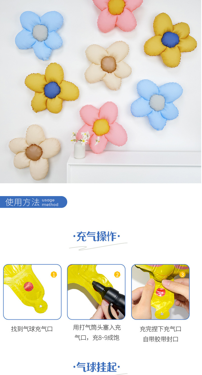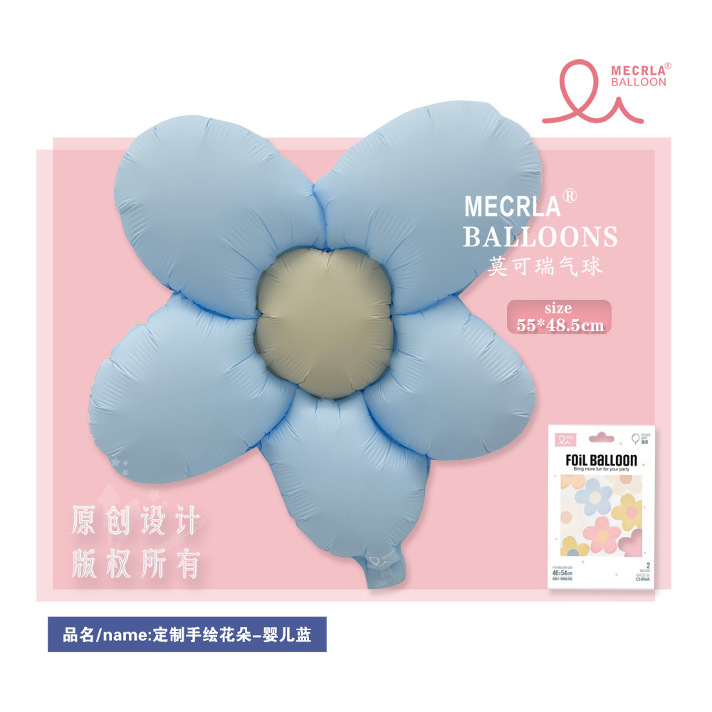 ins新款手绘哑光雏菊花朵生日派对儿童节摄影摆拍道具铝膜气球