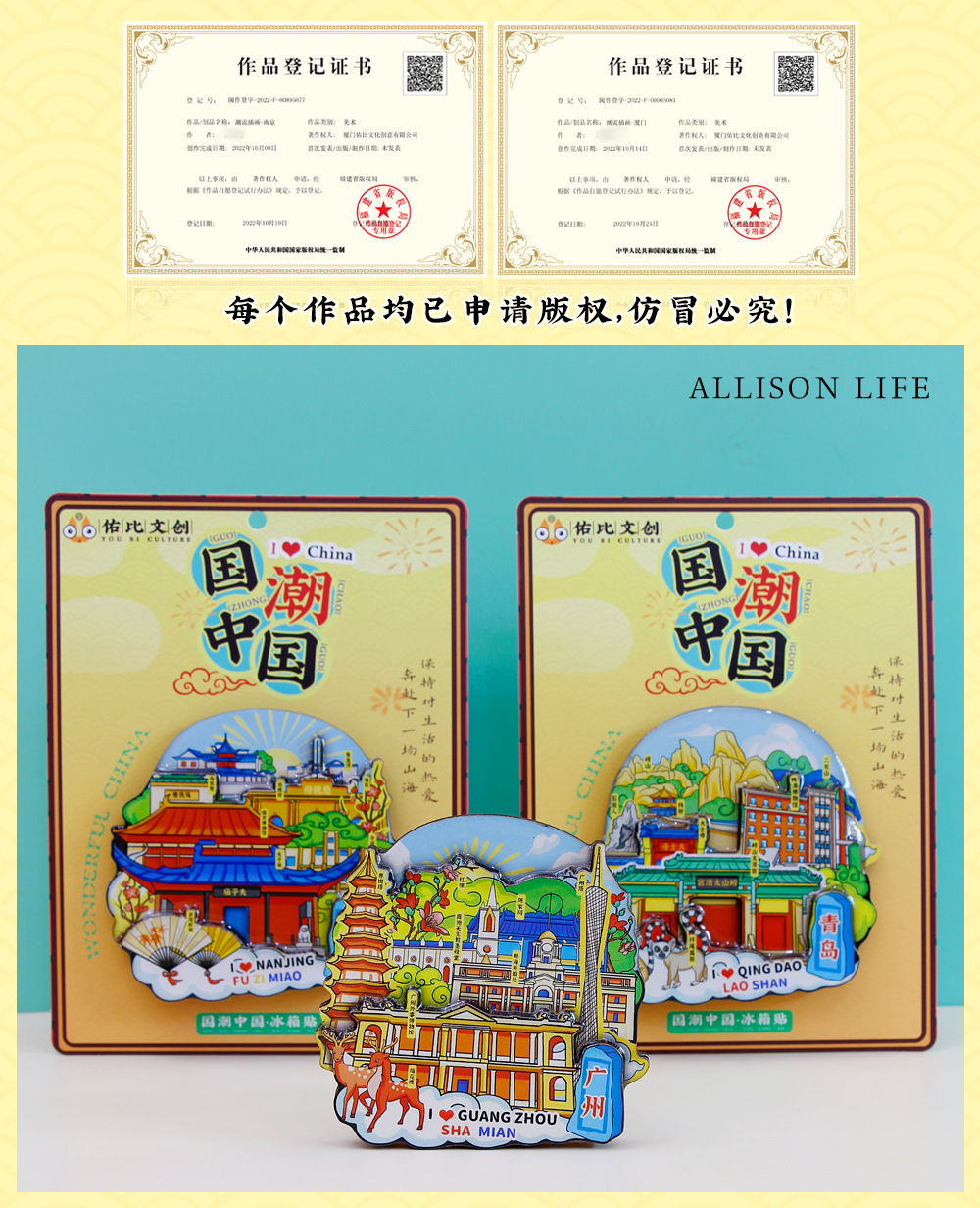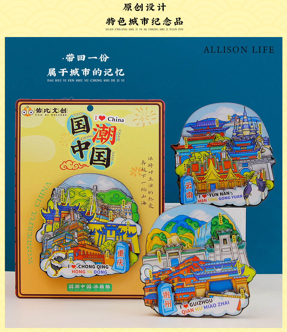 文创意国潮中国城市洛阳成都重庆天津网红打卡旅游景点景区冰箱贴