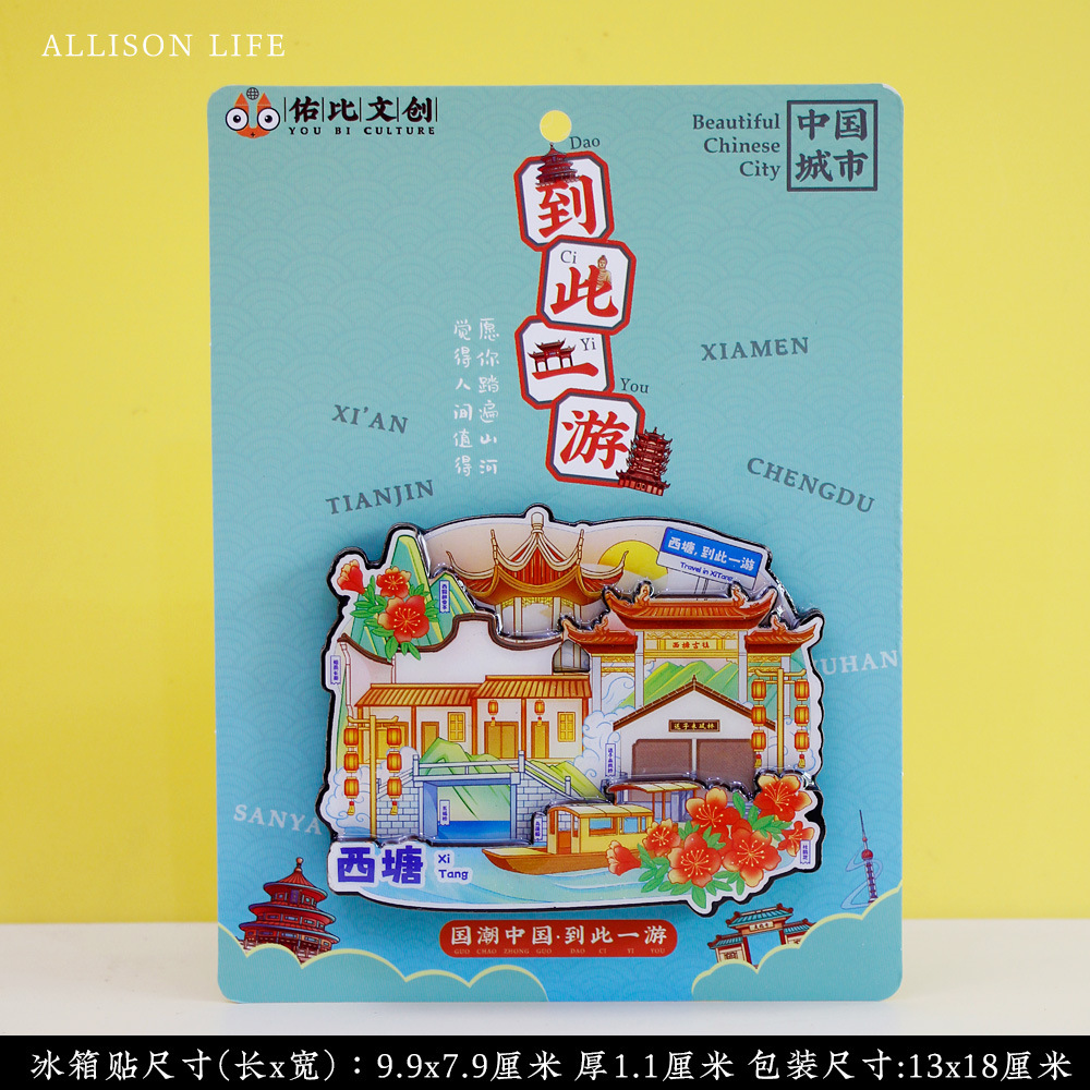 文创杭州西湖灵隐寺乌镇普陀山雁荡山冰箱贴特色旅游景点纪念礼品
