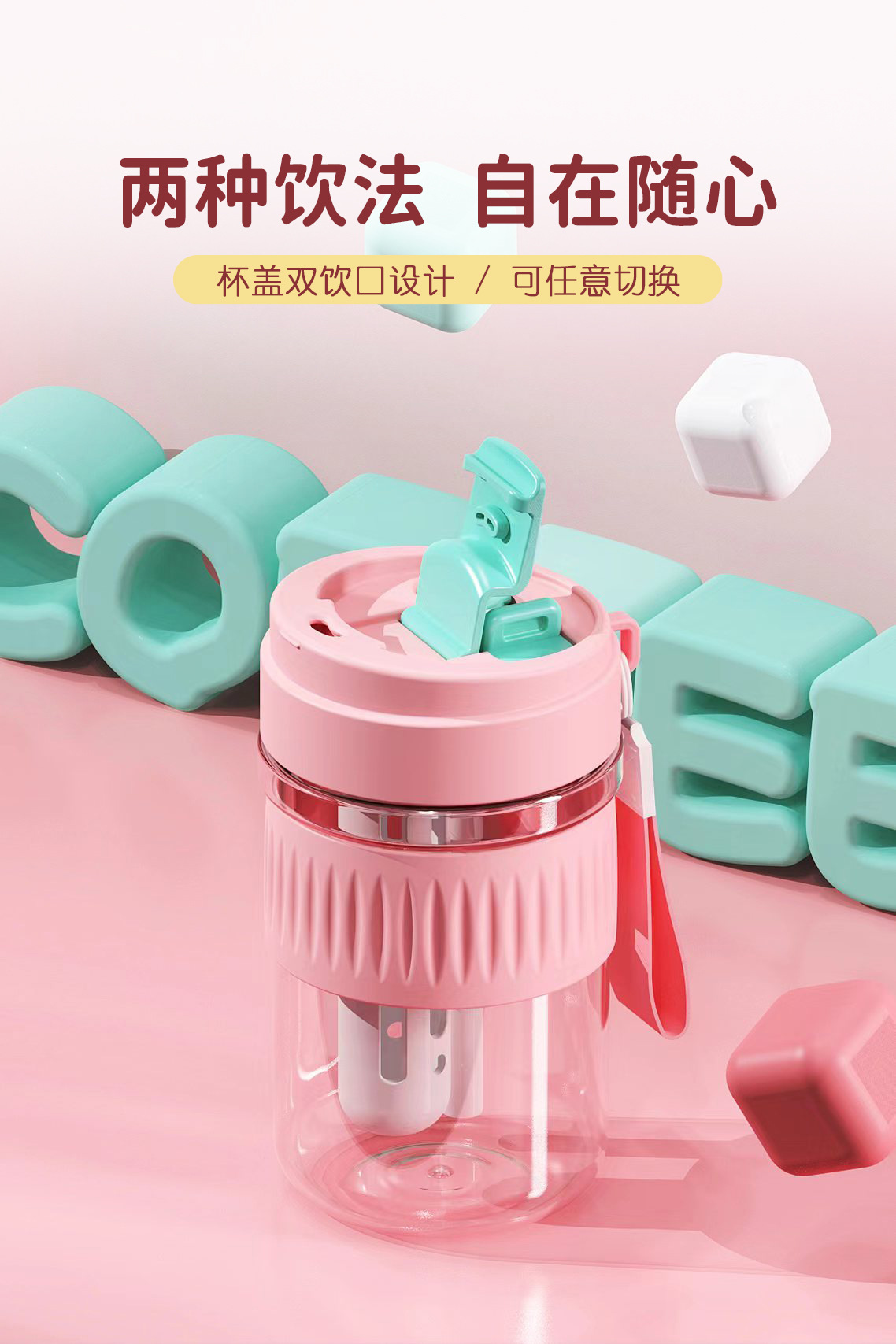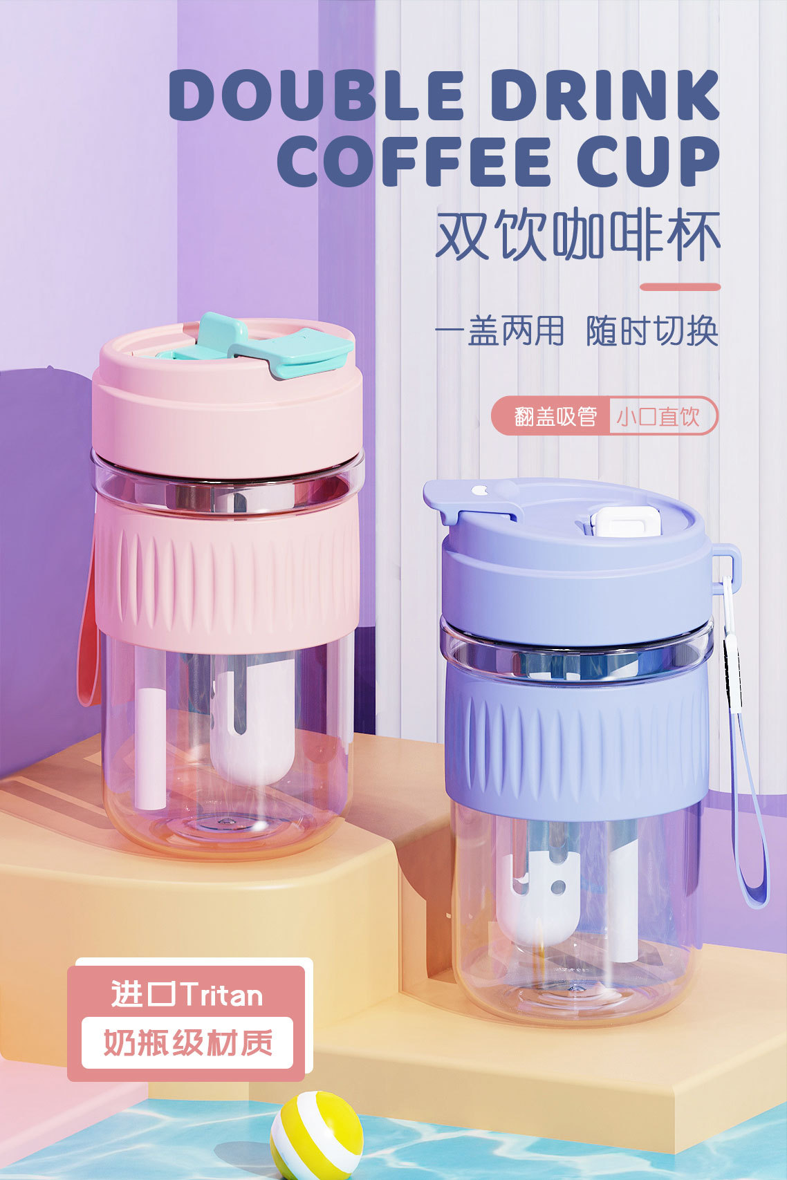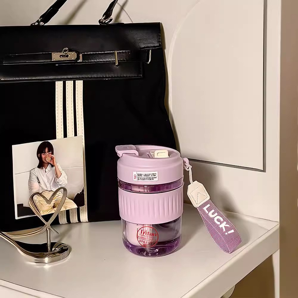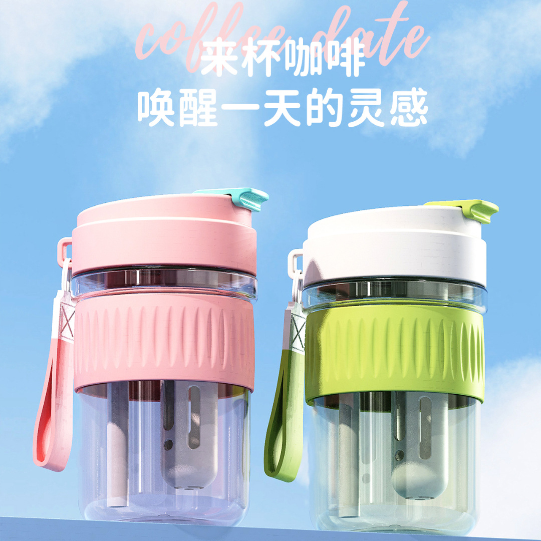 新款Tritan塑料杯学生双饮咖啡杯夏季便携耐高温家用随手杯吸管杯