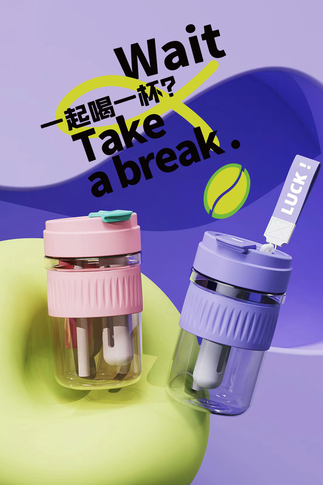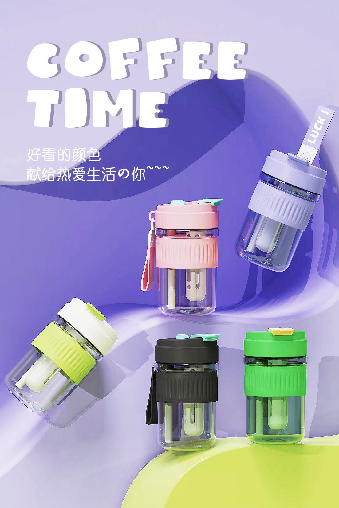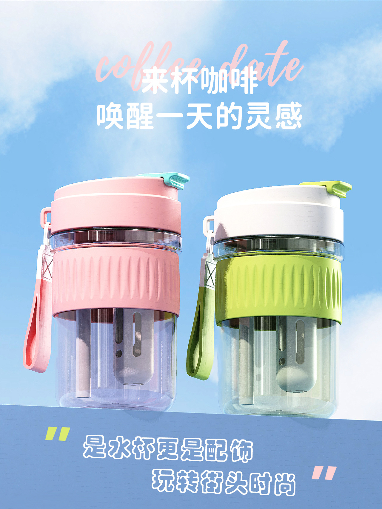 新款Tritan塑料杯学生双饮咖啡杯夏季便携耐高温家用随手杯吸管杯