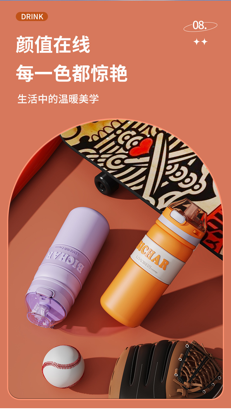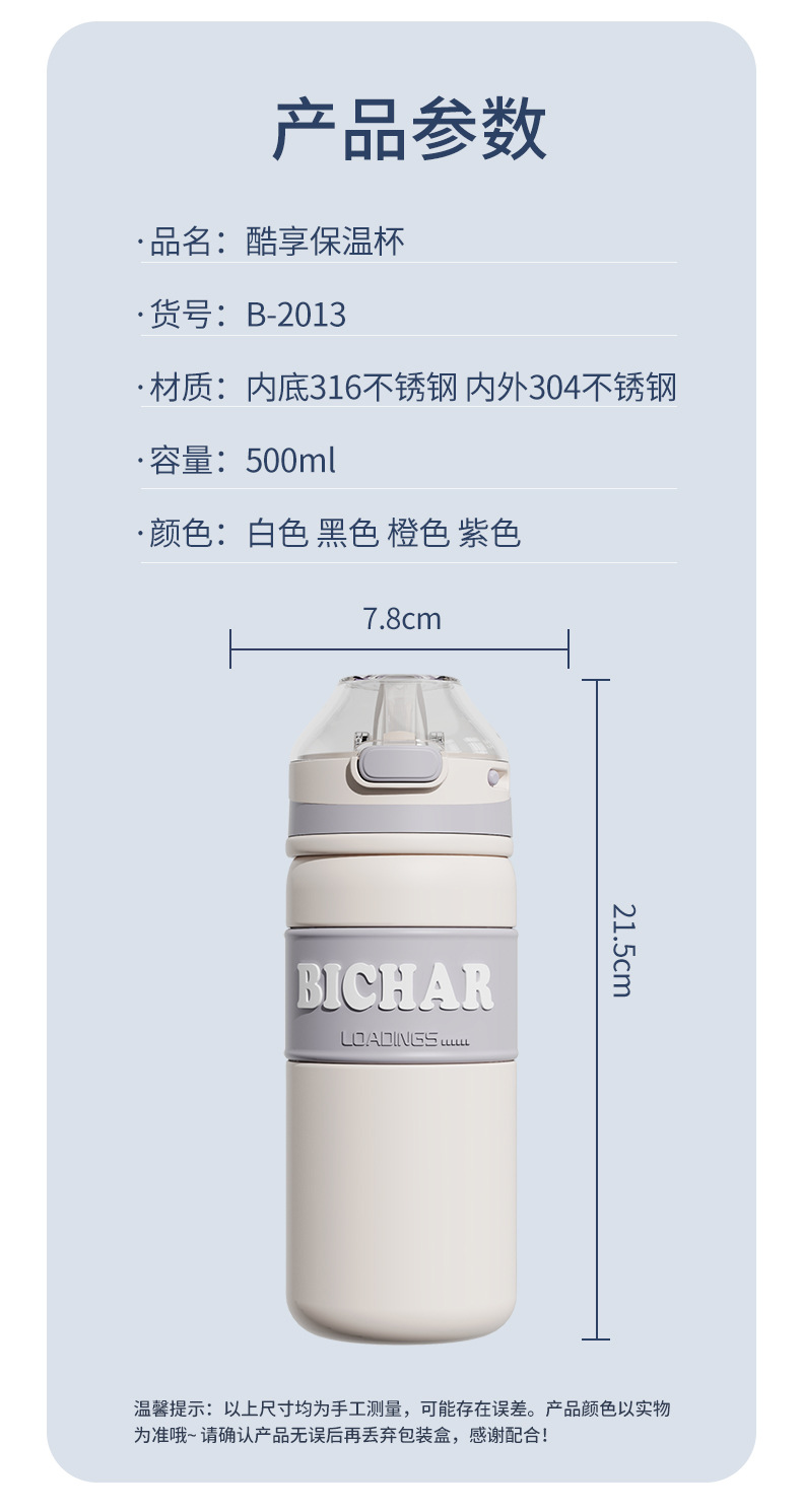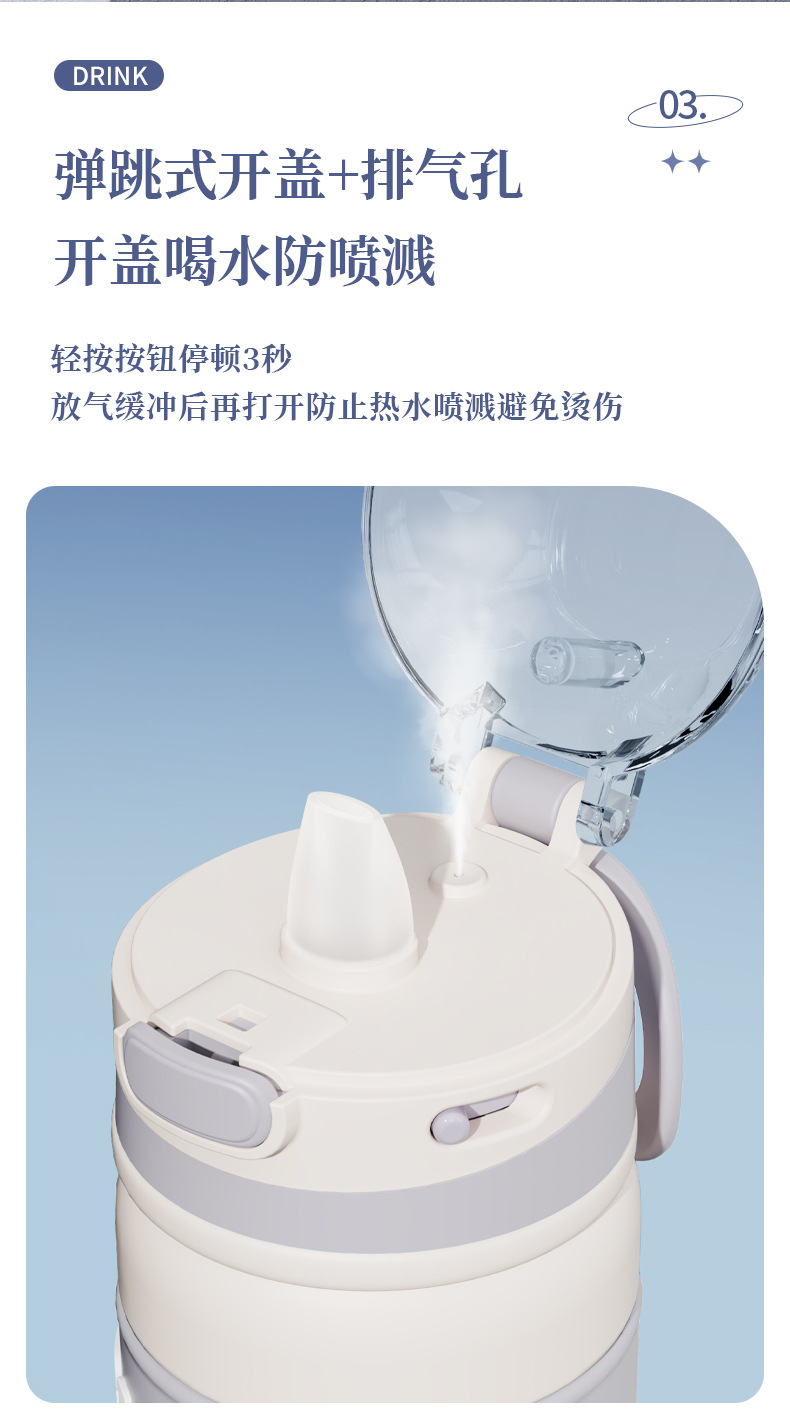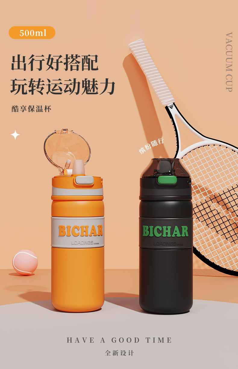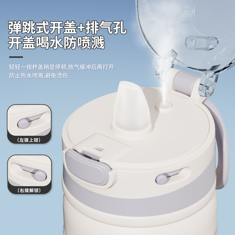 新款加厚不锈钢保温杯便携式提手运动水杯男女生高颜值带吸管杯子