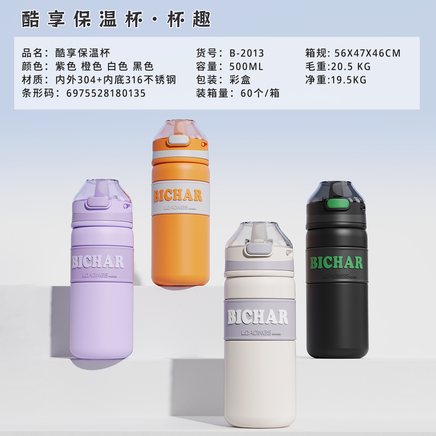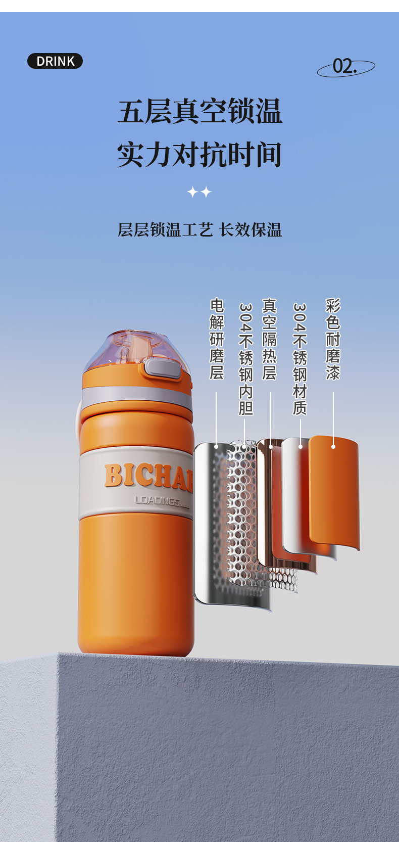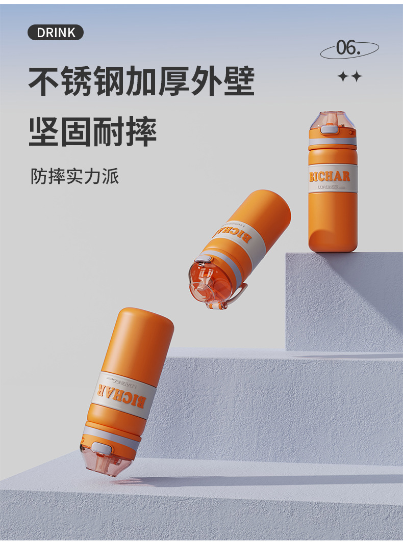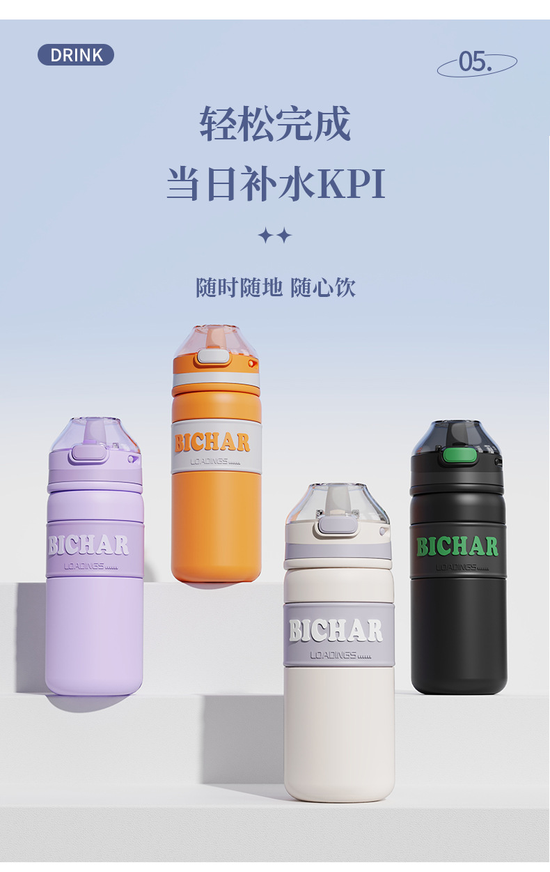 新款加厚不锈钢保温杯便携式提手运动水杯男女生高颜值带吸管杯子