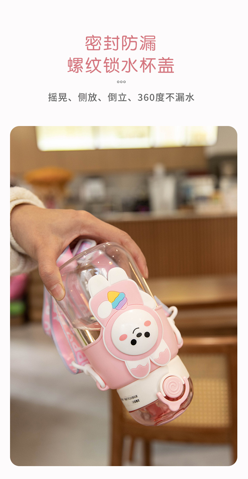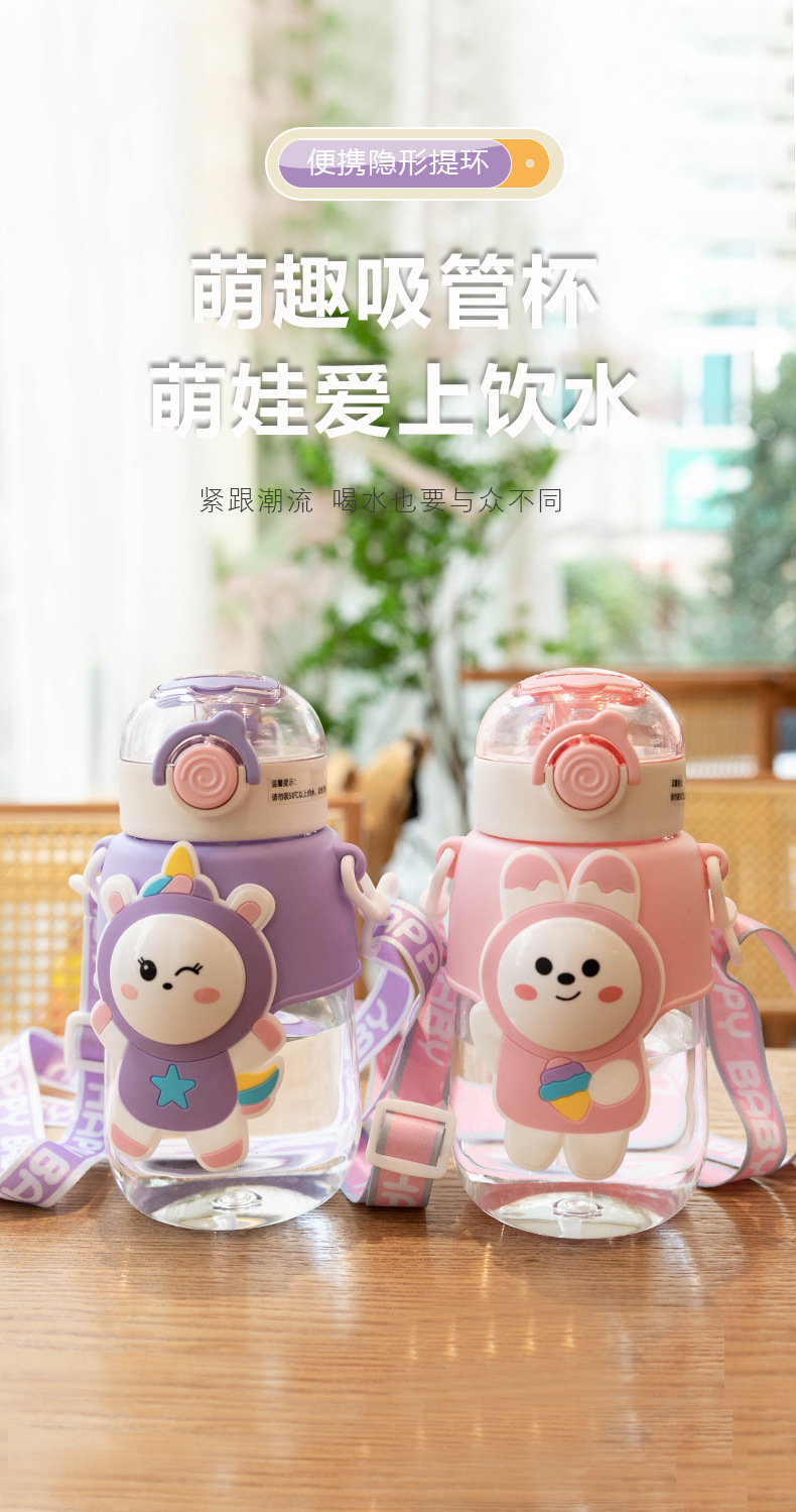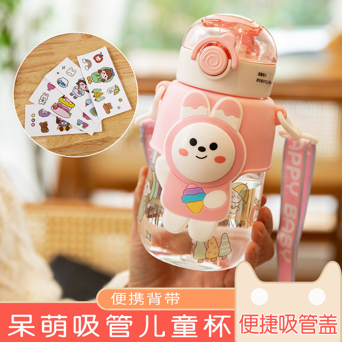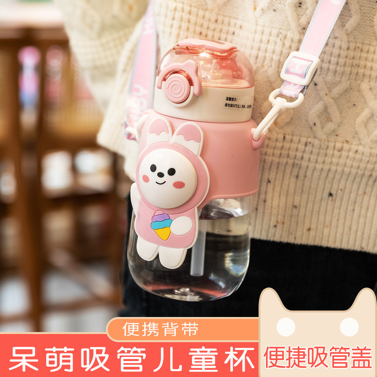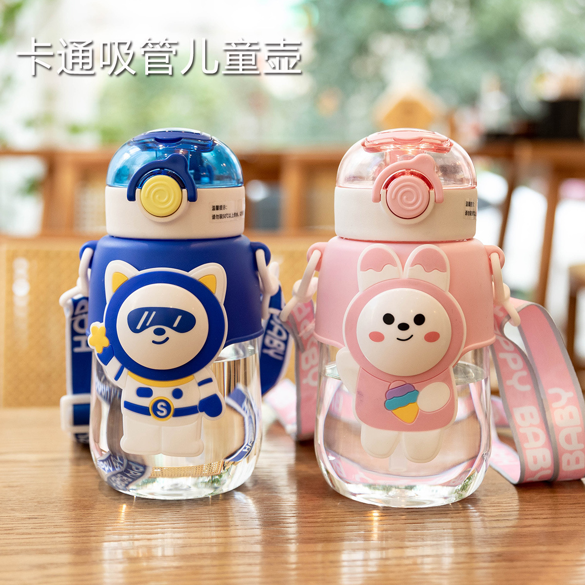 高颜值卡通可爱吸管塑料水杯男女学生儿童上学便携耐高温大肚杯子
