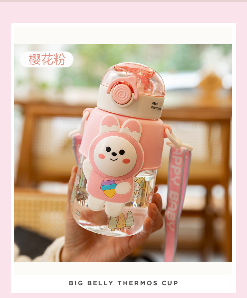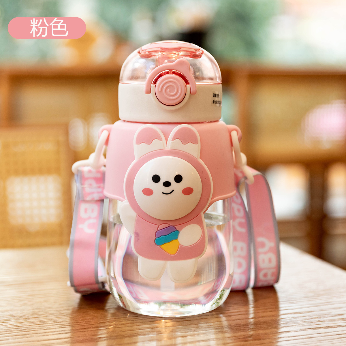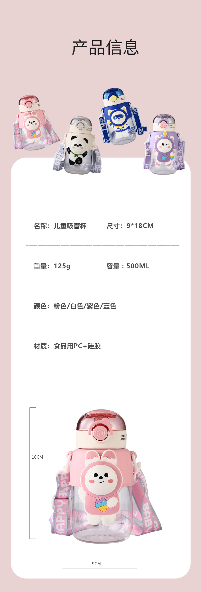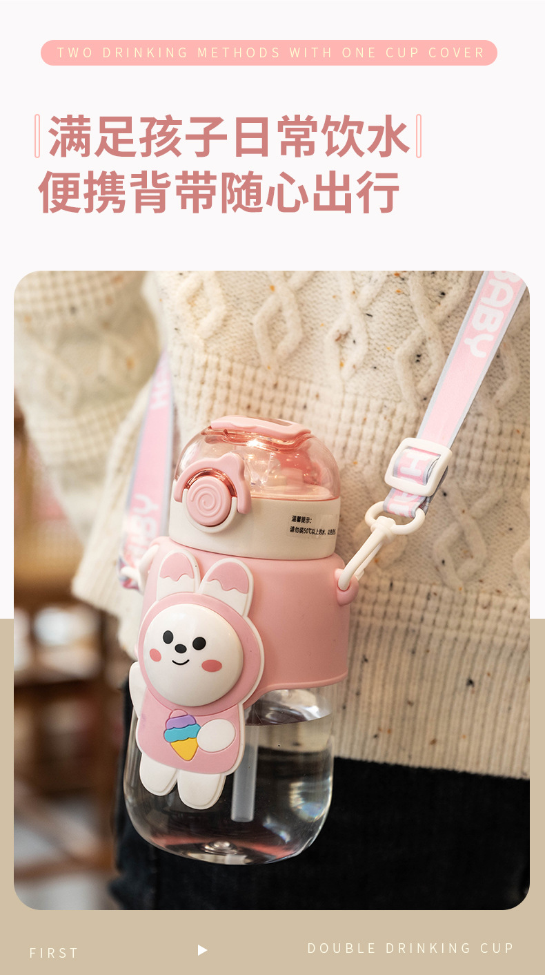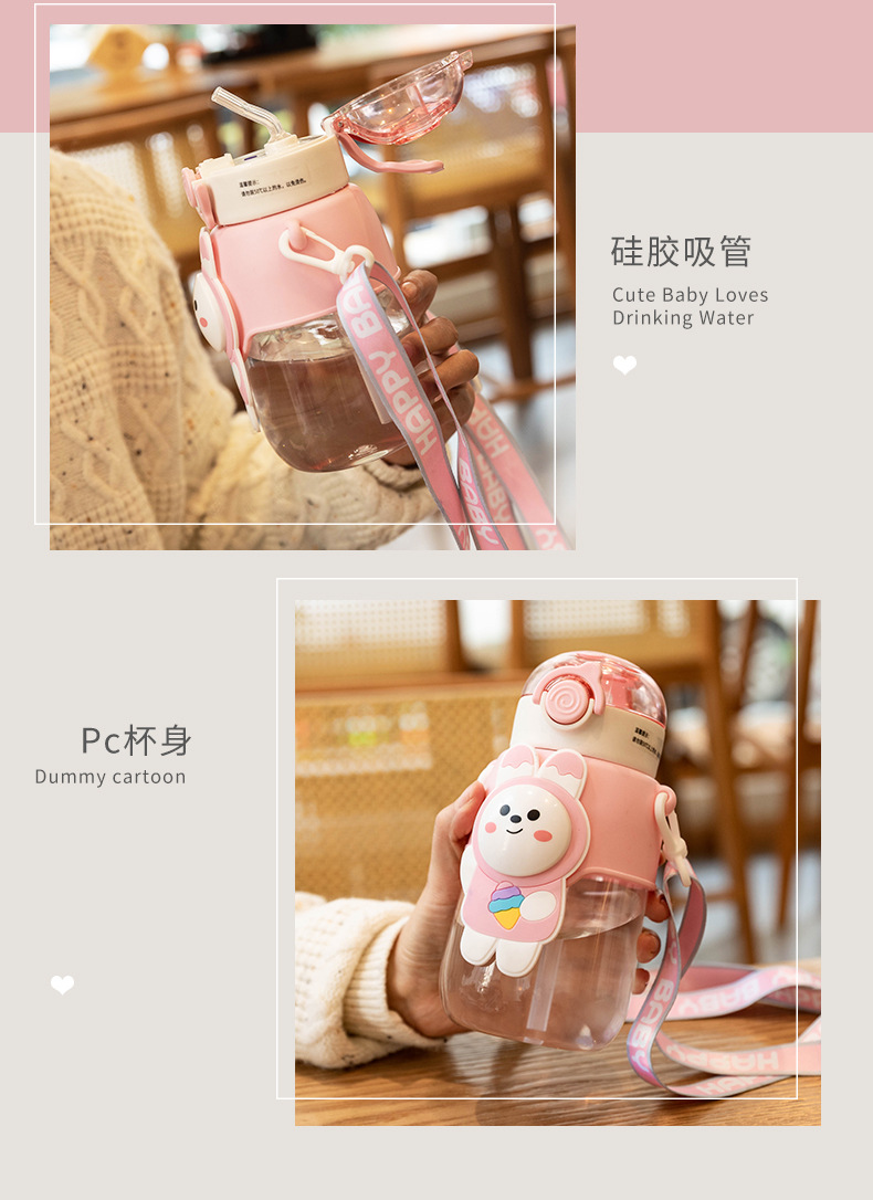 高颜值卡通可爱吸管塑料水杯男女学生儿童上学便携耐高温大肚杯子