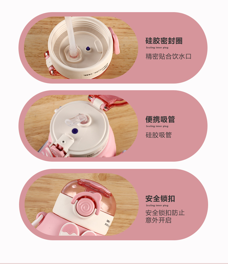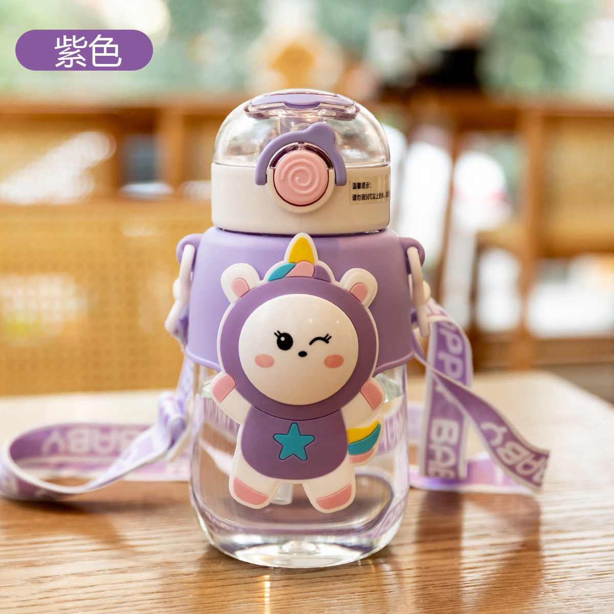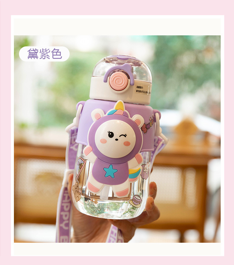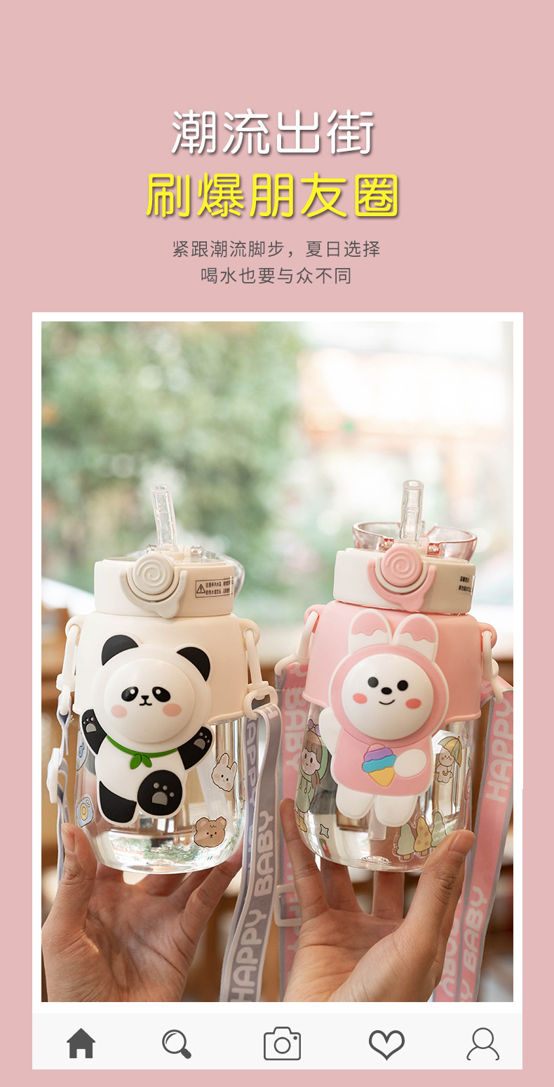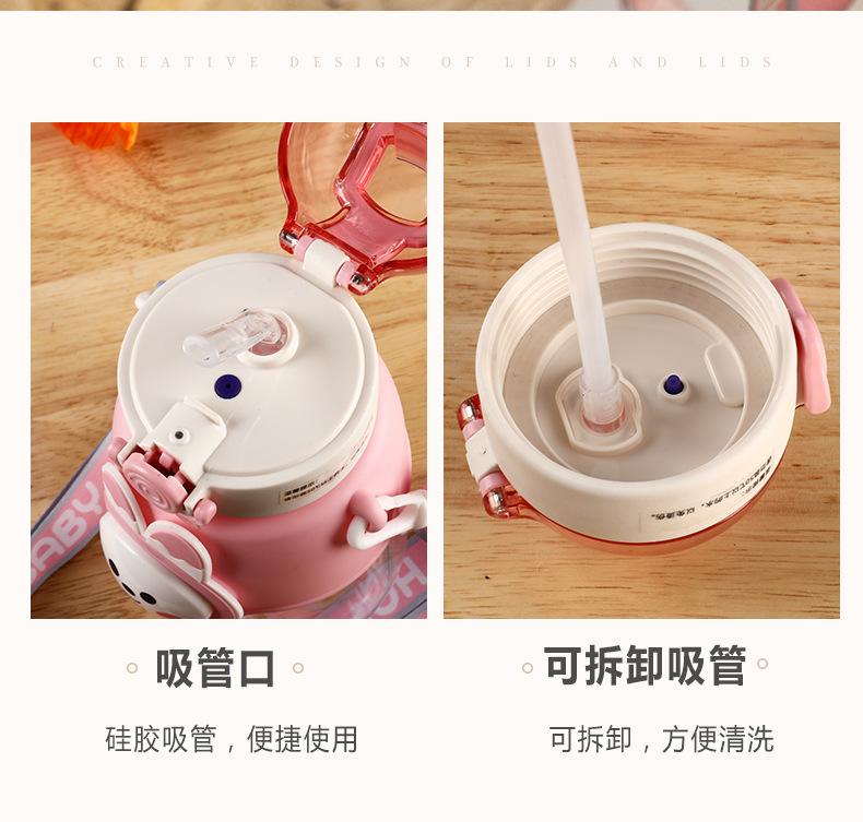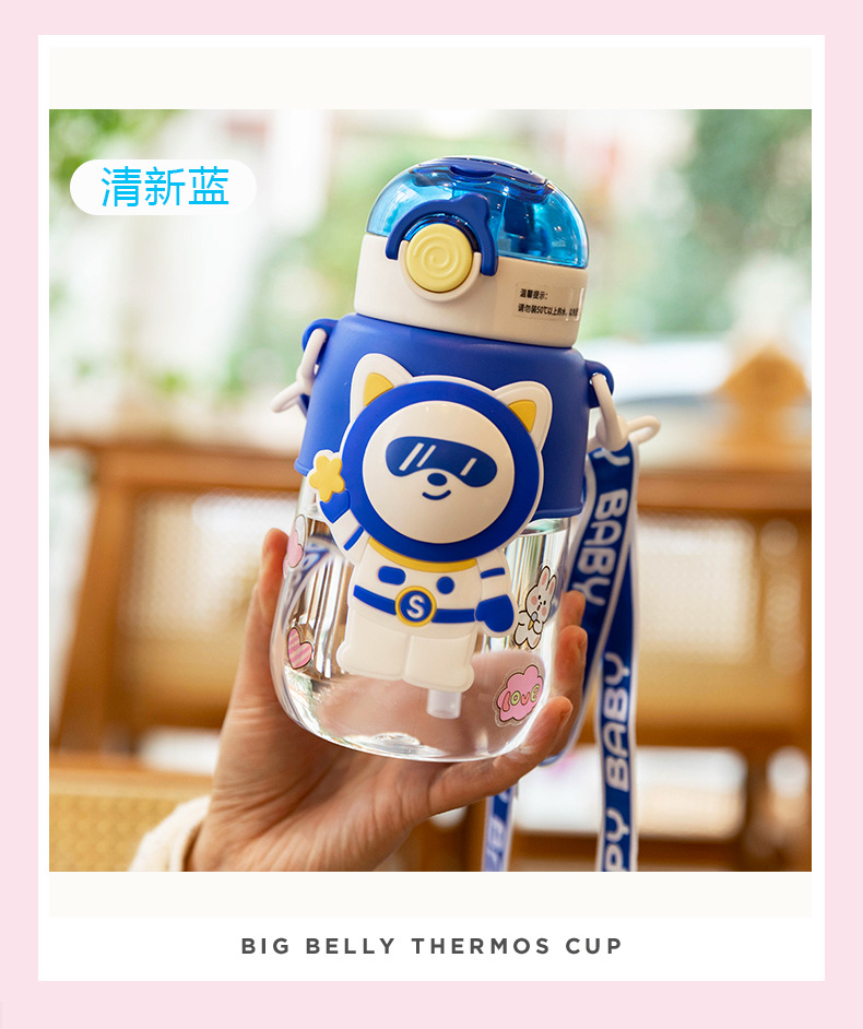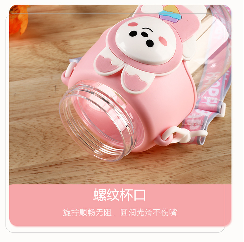 高颜值卡通可爱吸管塑料水杯男女学生儿童上学便携耐高温大肚杯子