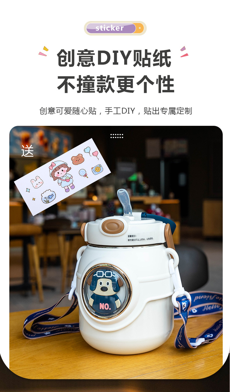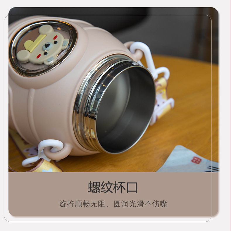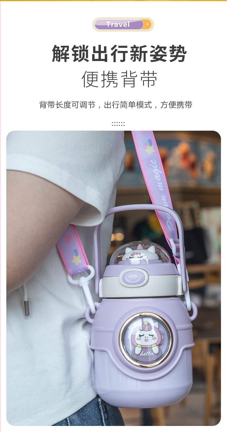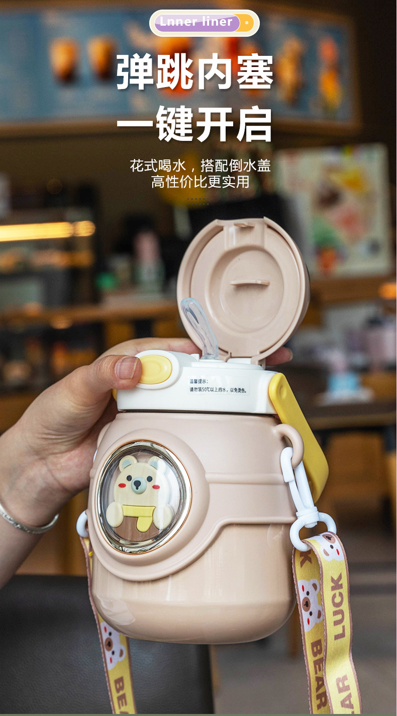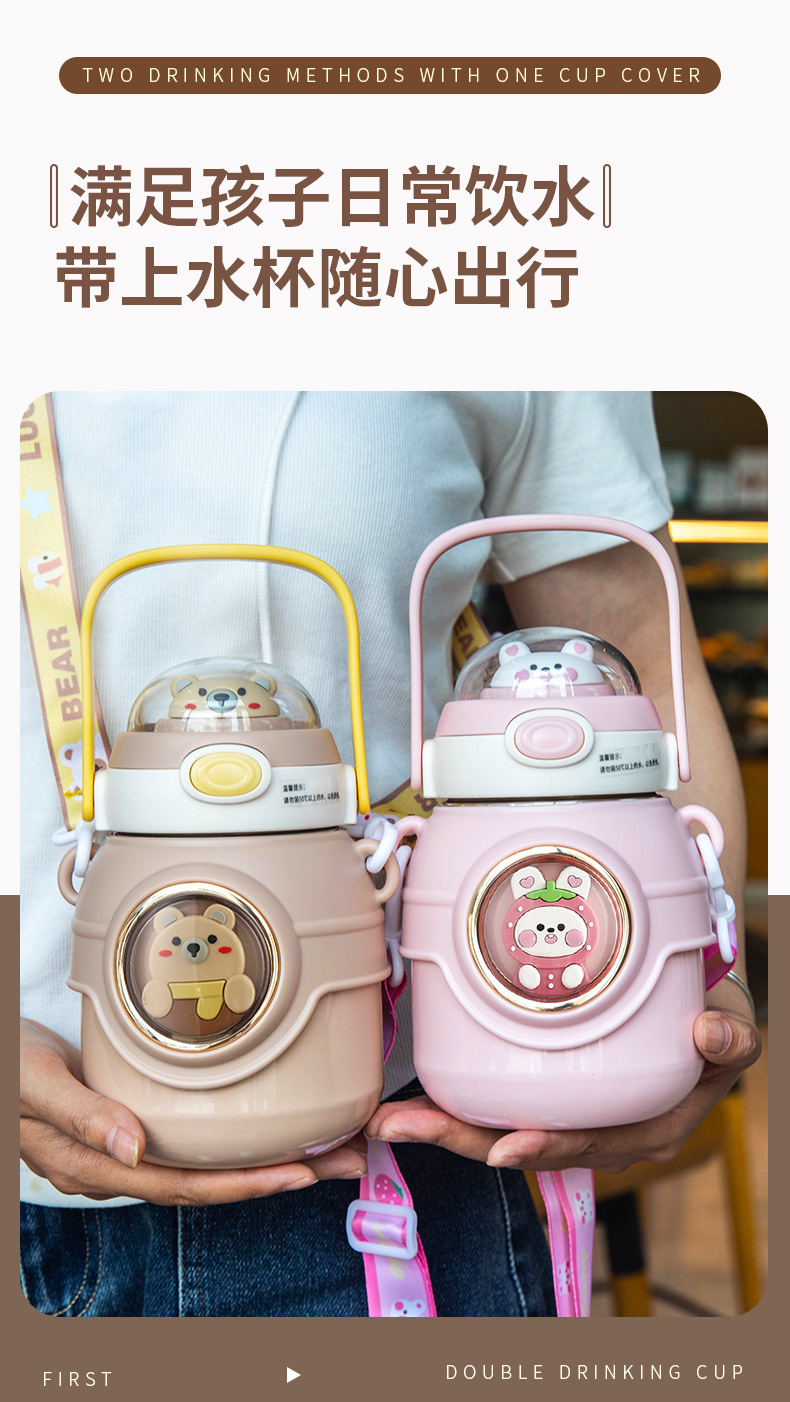 新款秋冬316不锈钢保温杯食品级可爱儿童水杯卡通学生斜跨吸管杯