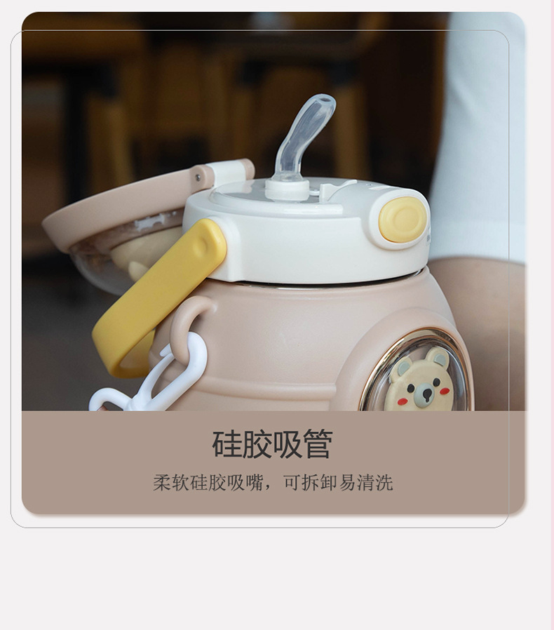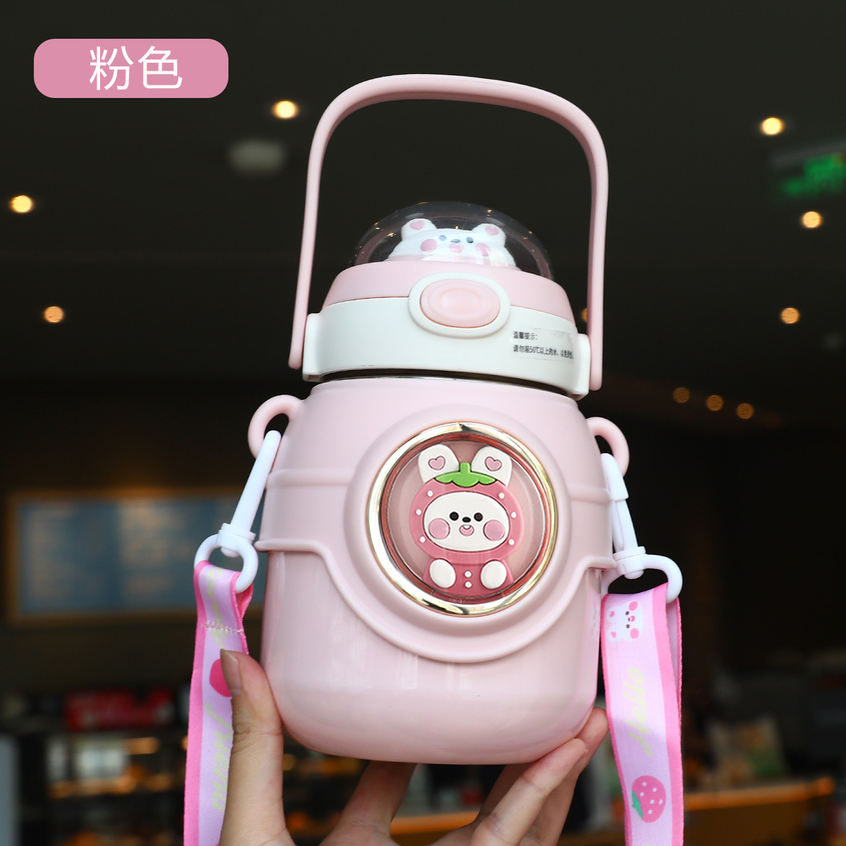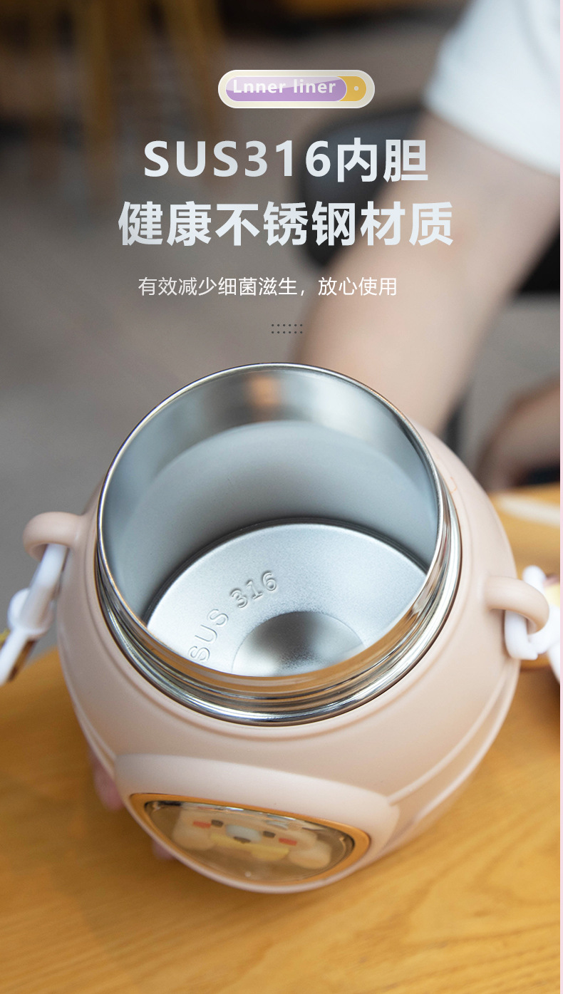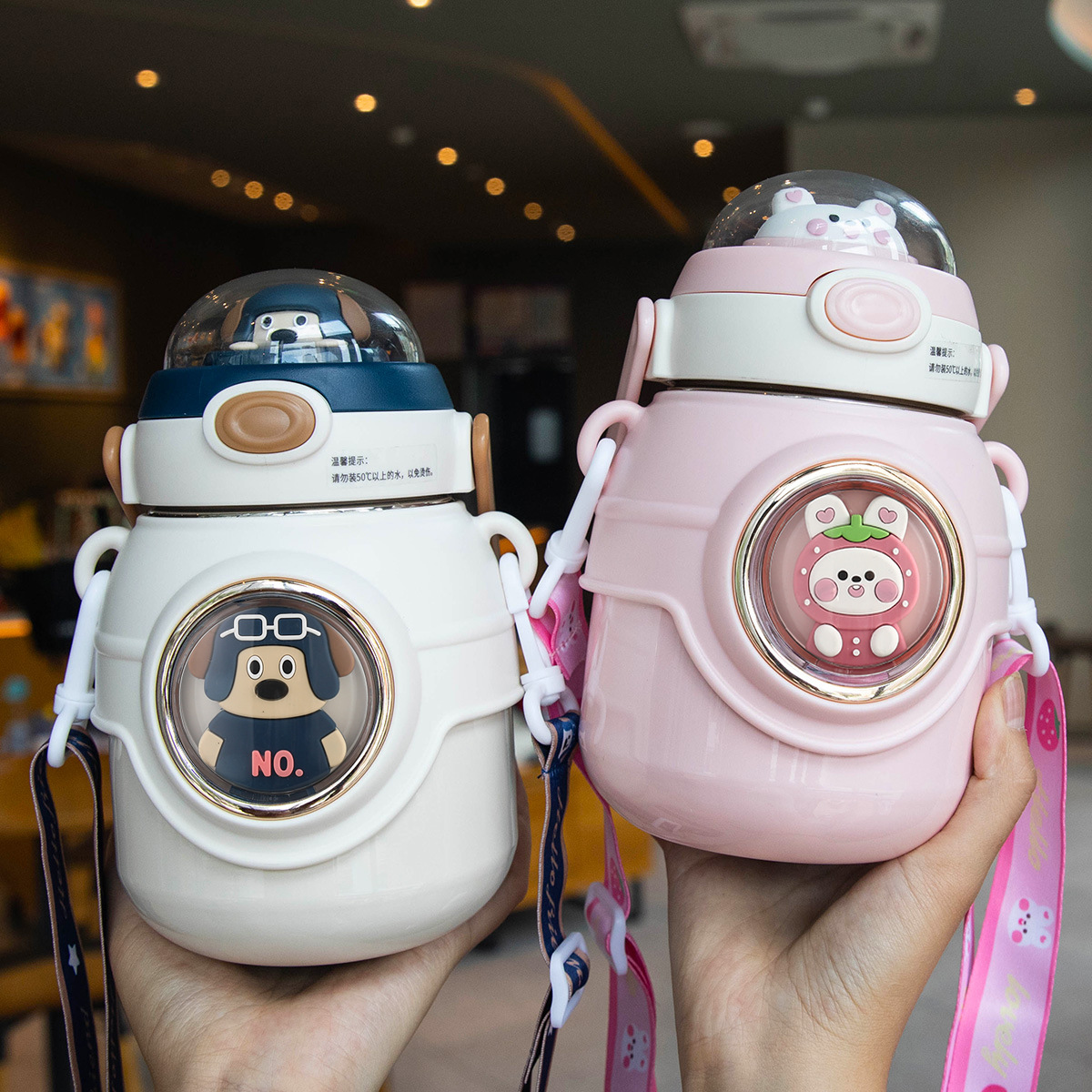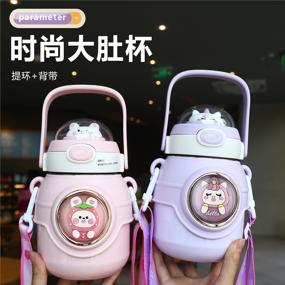 新款秋冬316不锈钢保温杯食品级可爱儿童水杯卡通学生斜跨吸管杯