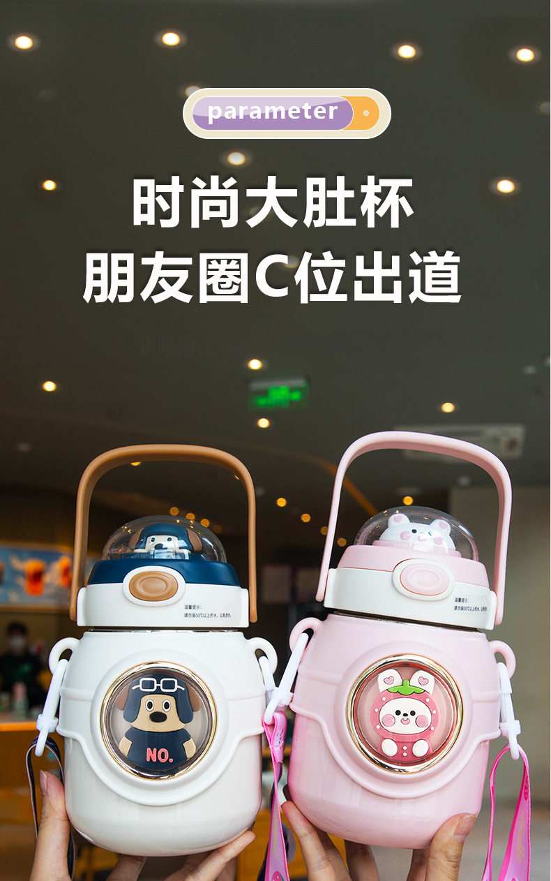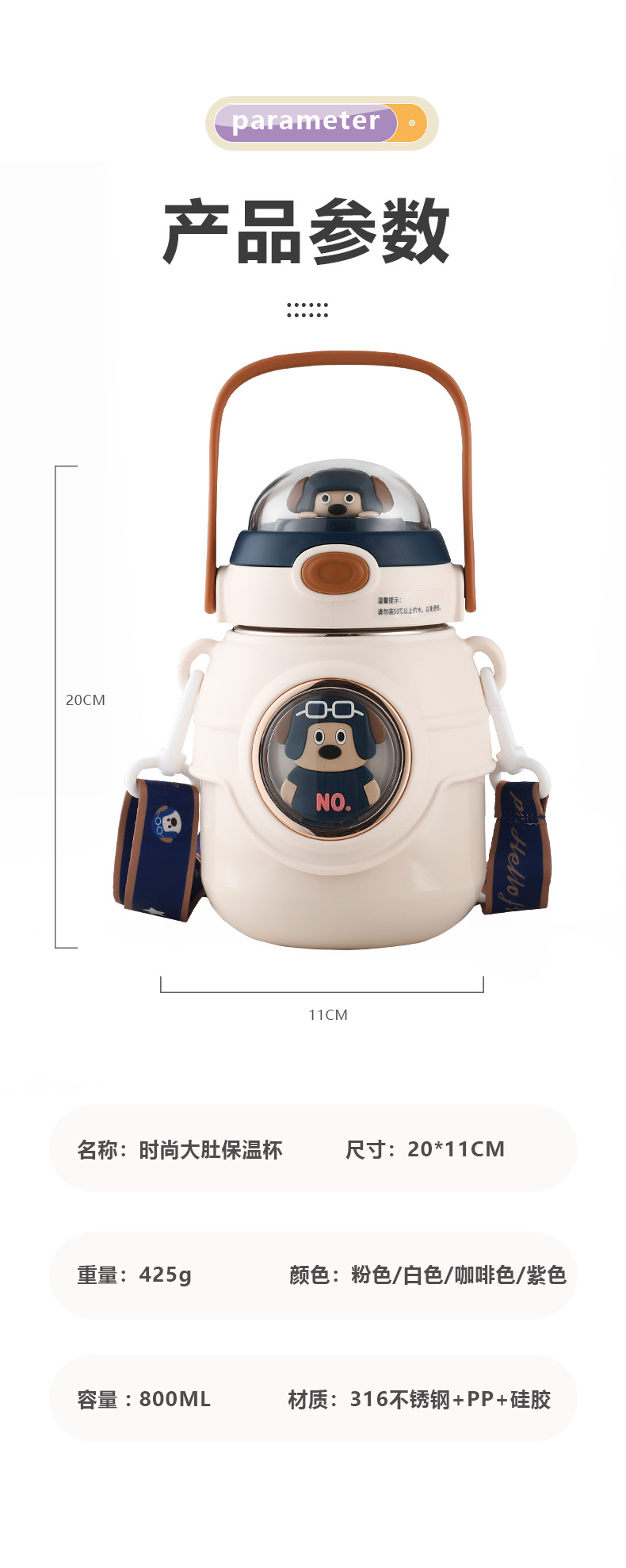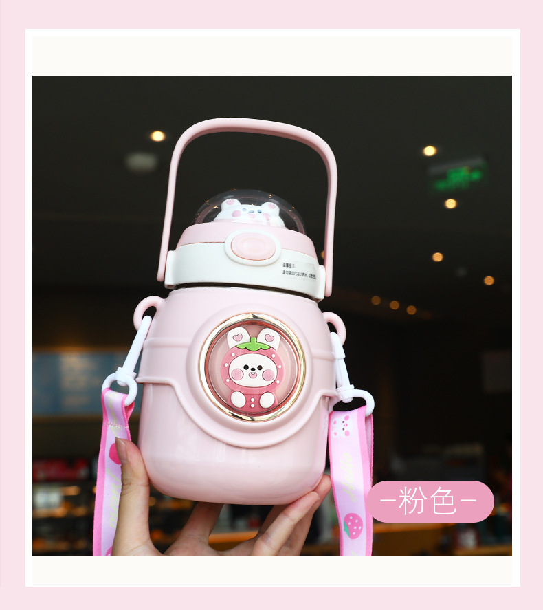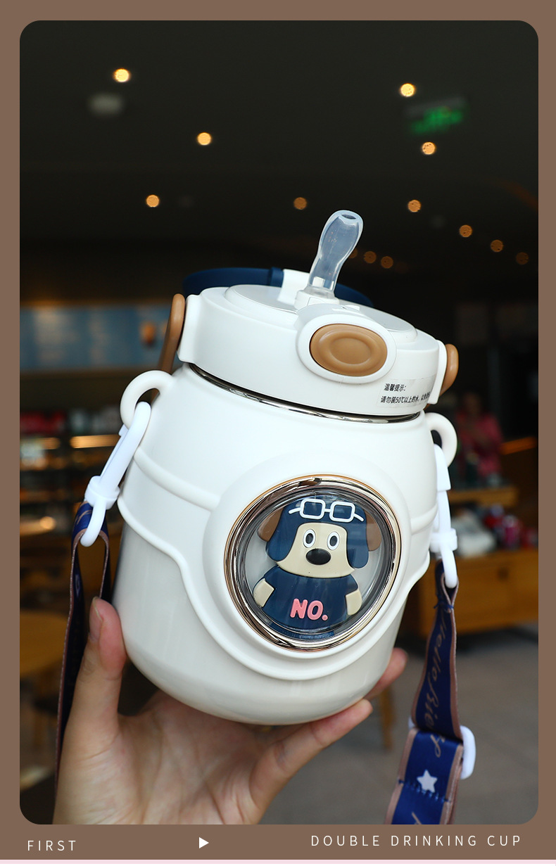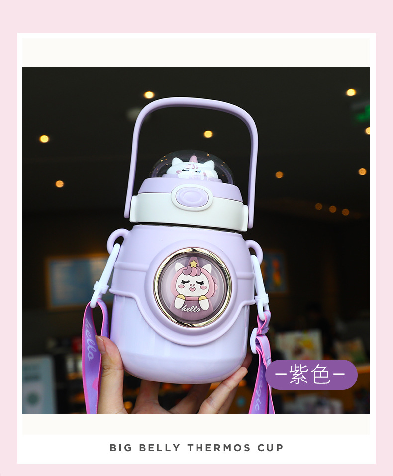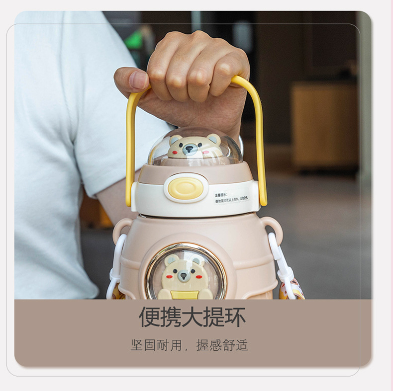 新款秋冬316不锈钢保温杯食品级可爱儿童水杯卡通学生斜跨吸管杯