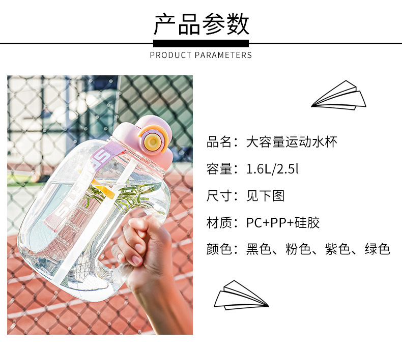 新款户外健身大容量吨吨桶高颜值耐高温塑料杯男女生水杯水壶杯子