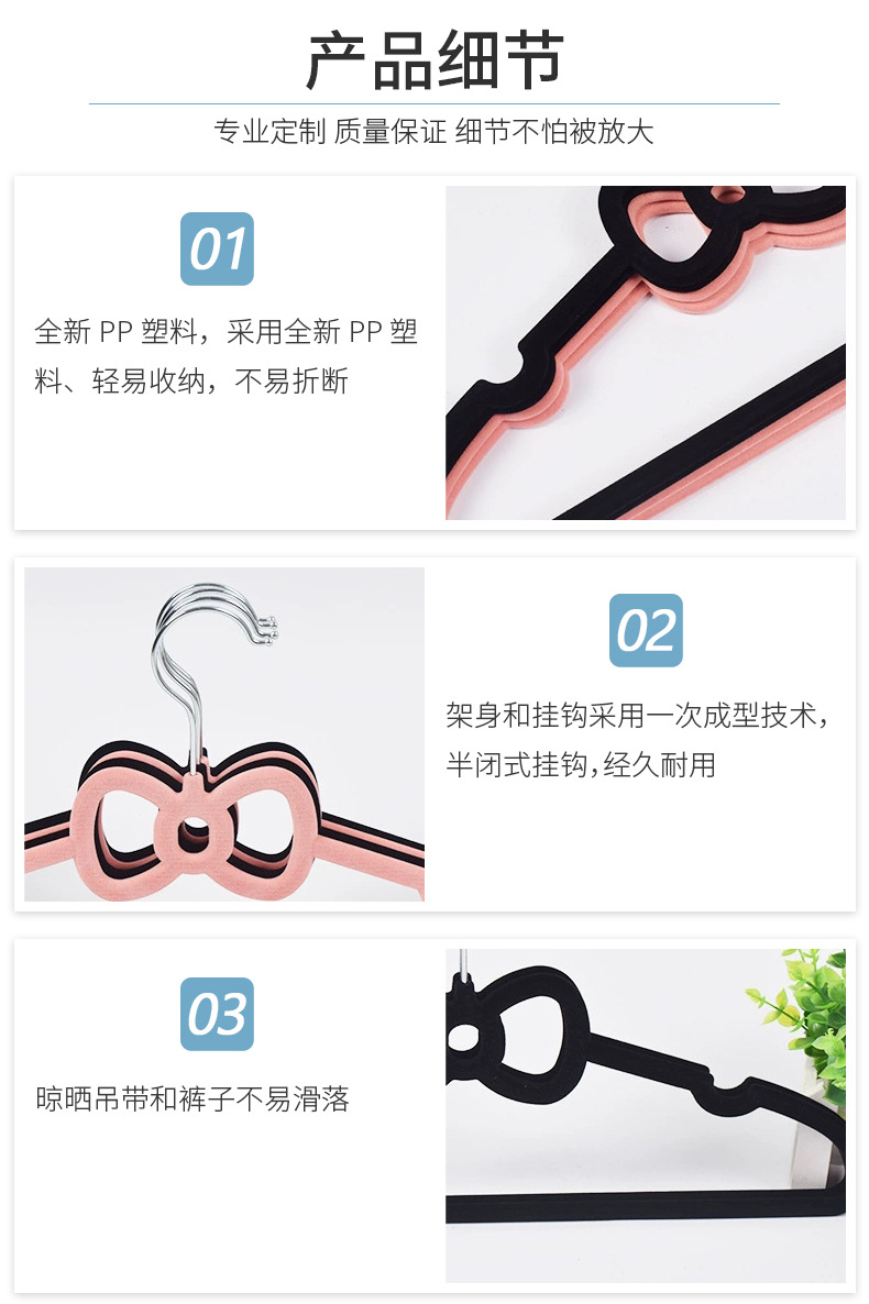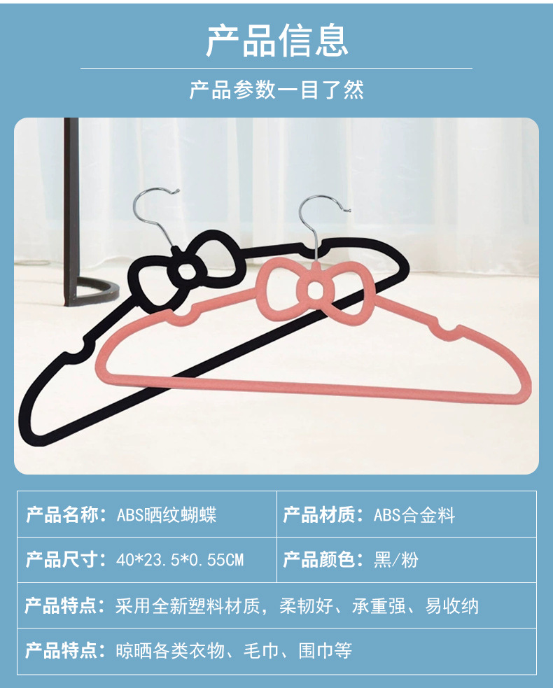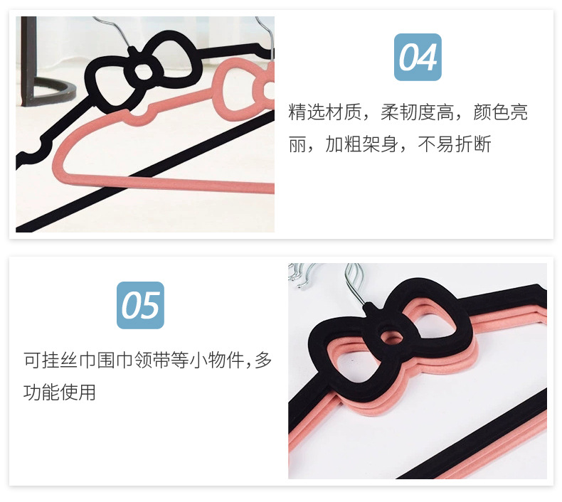 植绒衣架多功能衣架蝴蝶结少女衣架家用防滑无痕衣架植绒衣架