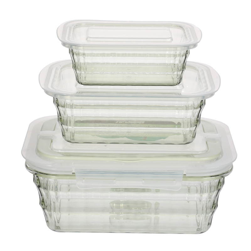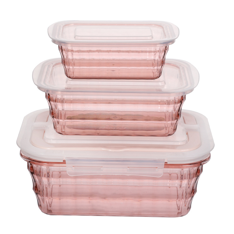 定制款保鲜盒三件套 热卖家用彩色餐具带盖手提储物盒 果蔬沙拉碗