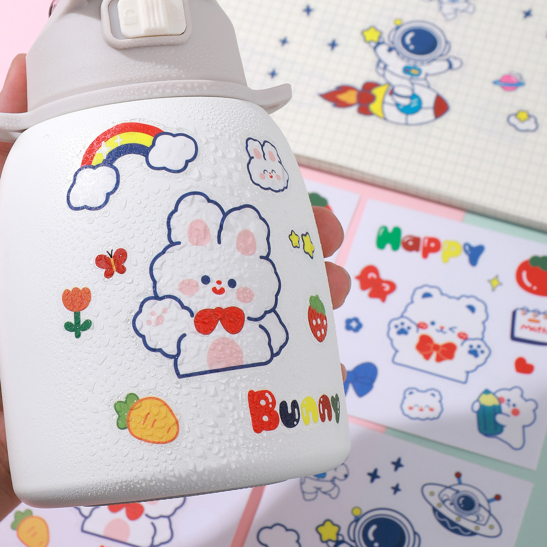可爱贴纸儿童卡通防水杯子手帐贴纸包封口贴账保温杯贴画咕卡帖纸