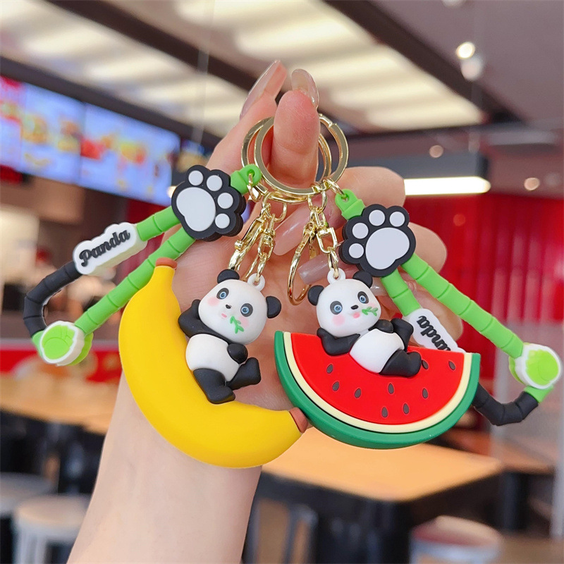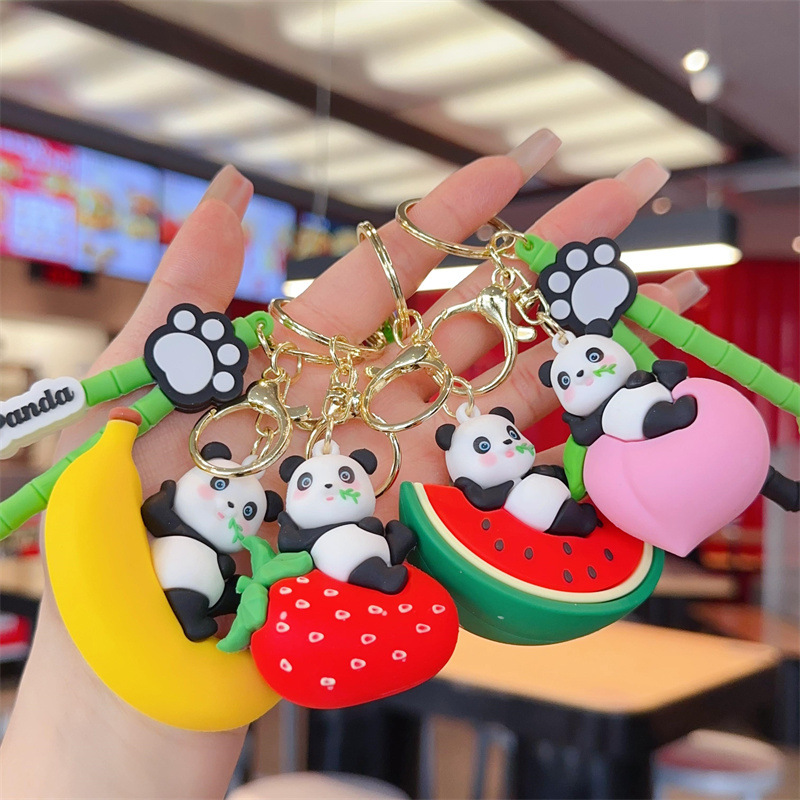 卡通水果水蜜桃香蕉熊猫公仔钥匙扣女可爱闺蜜生日礼物网红钥匙链