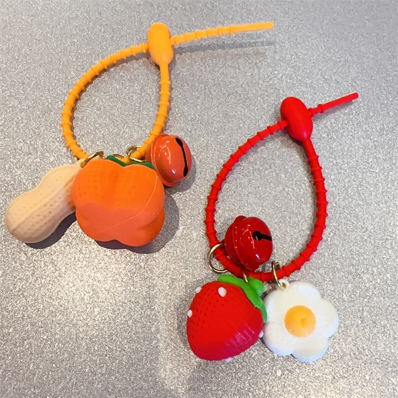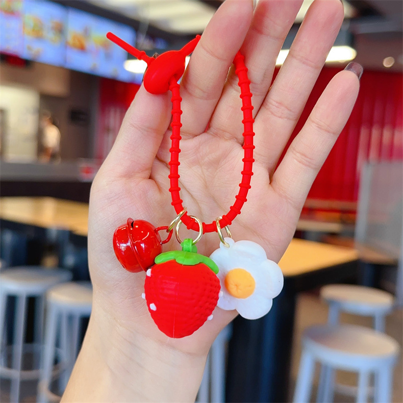 创意滴胶好柿花生钥匙扣女卡通草莓汽车包包钥匙链挂件小礼品批发