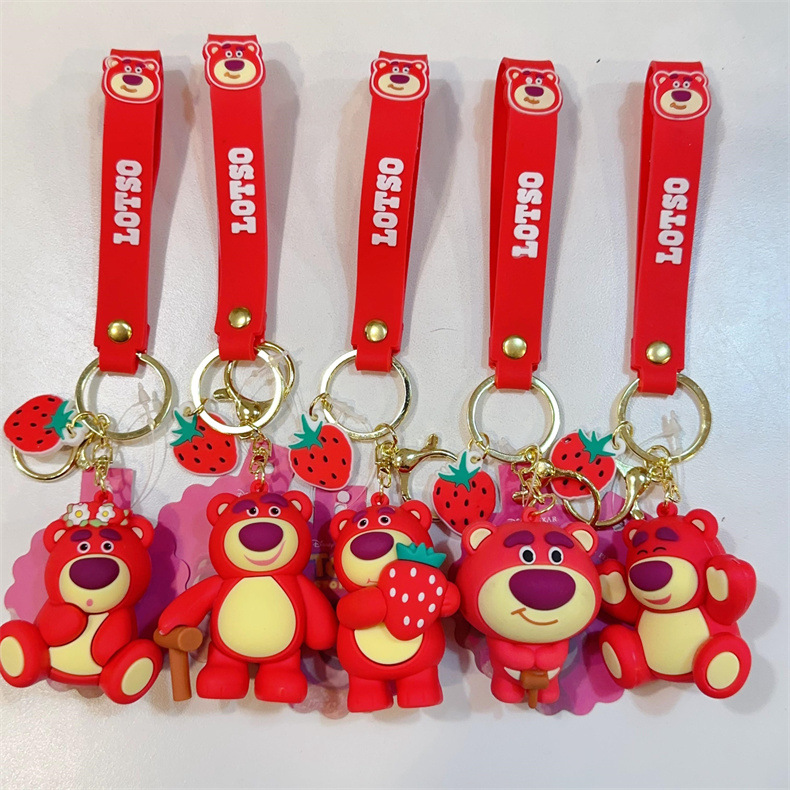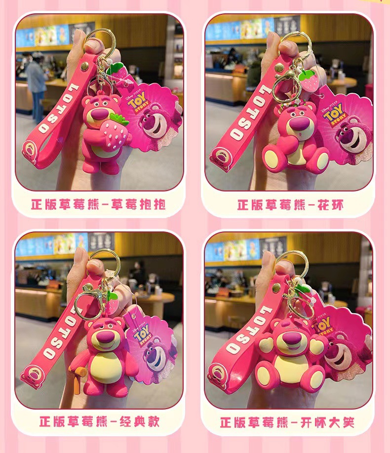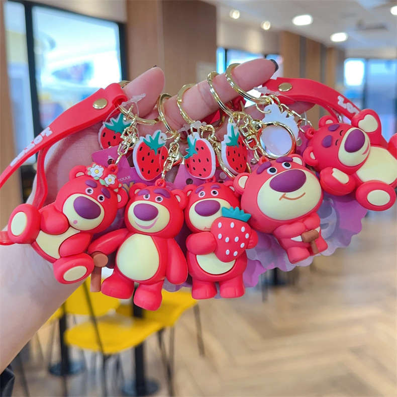 正版卡通草莓熊钥匙扣男女可爱潮流精致汽车钥匙链圈情侣书包挂件
