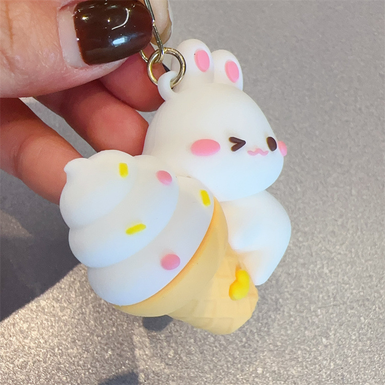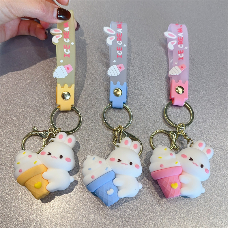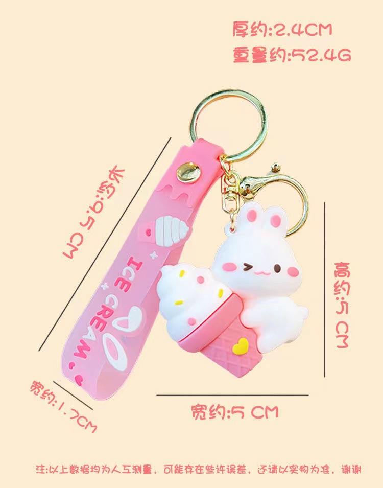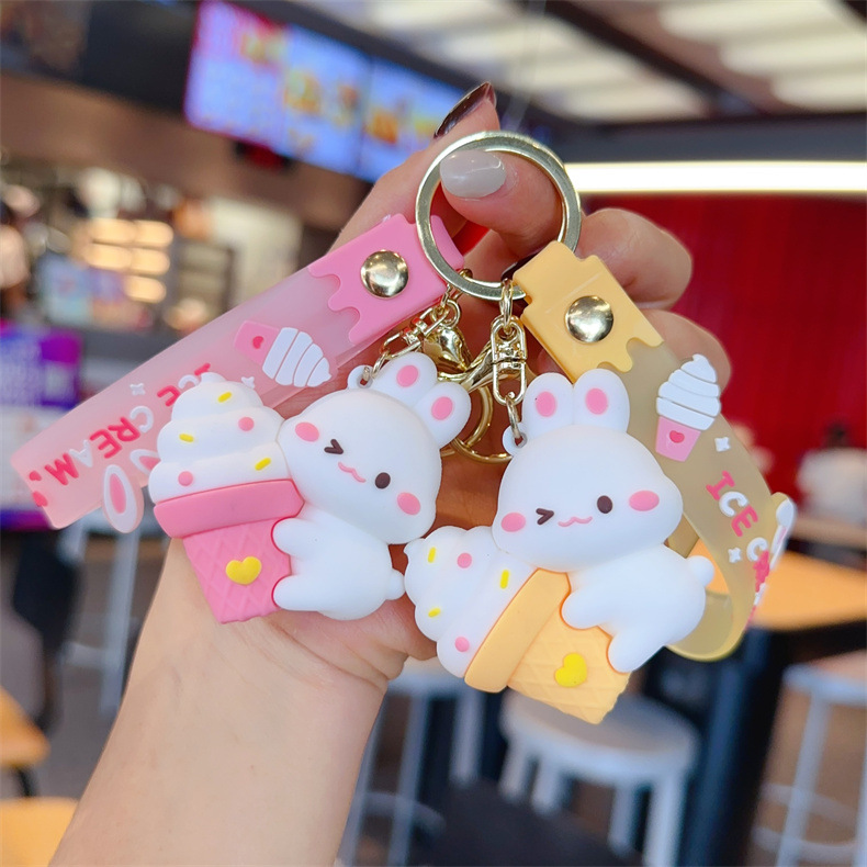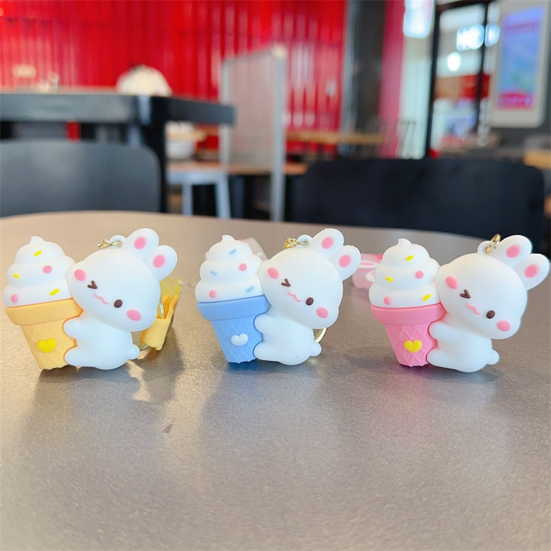 卡通冰淇淋兔兔甜筒钥匙扣创意网红玩偶小礼品汽车挂饰公仔批发