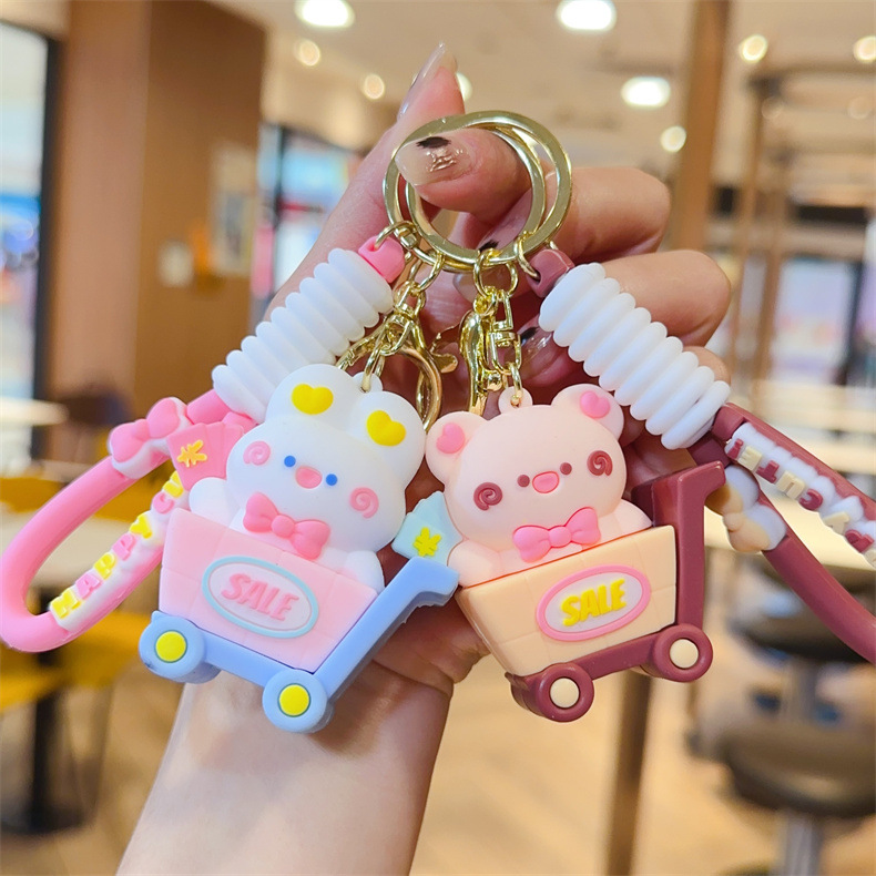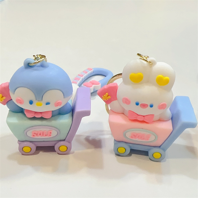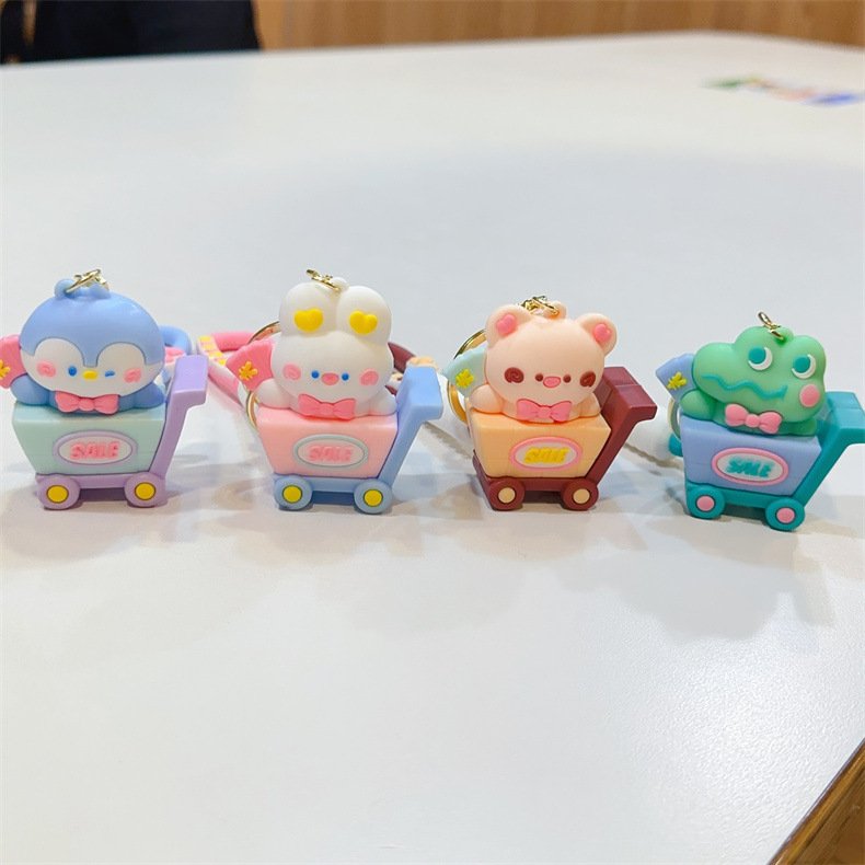 特色卡通小动物购物车钥匙扣可爱购物车青蛙小兔钥匙链男女包挂件